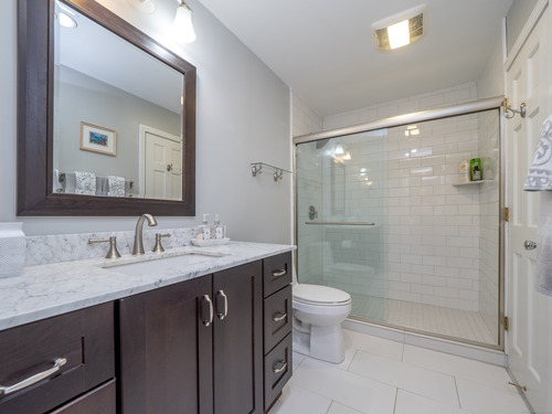 Bedroom Suite, Full Bath, Wall/Wall Carpet, Hardwood Floor, Stall Shower