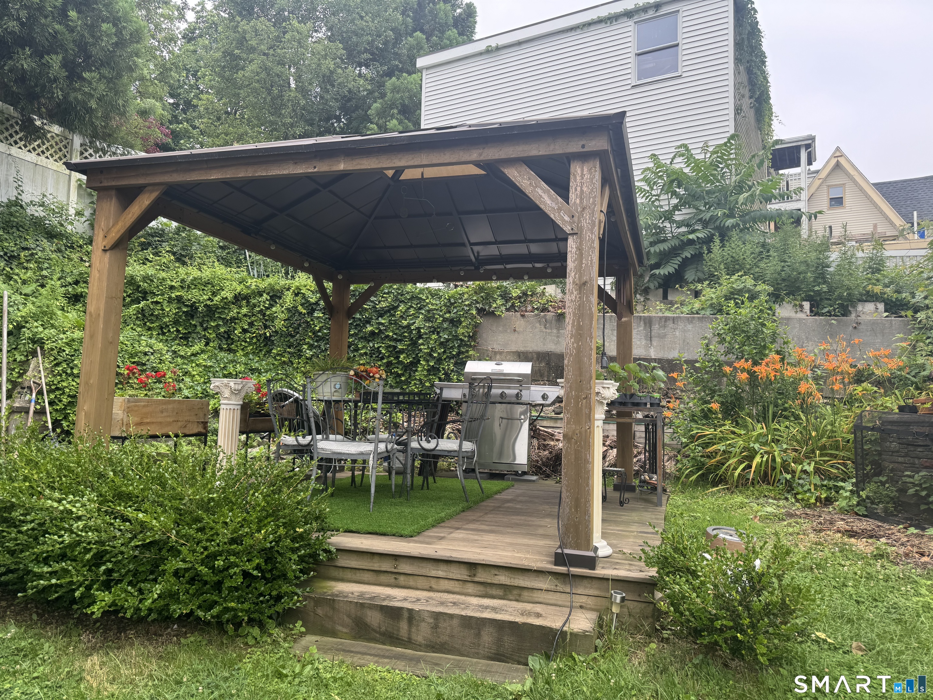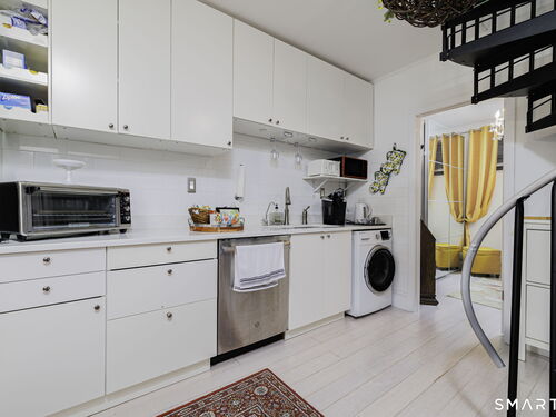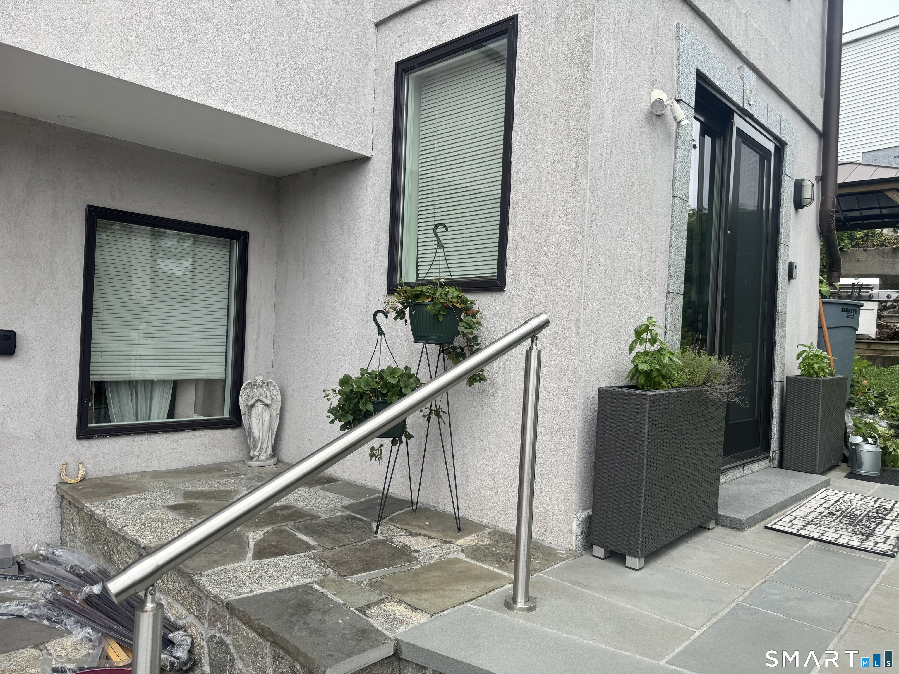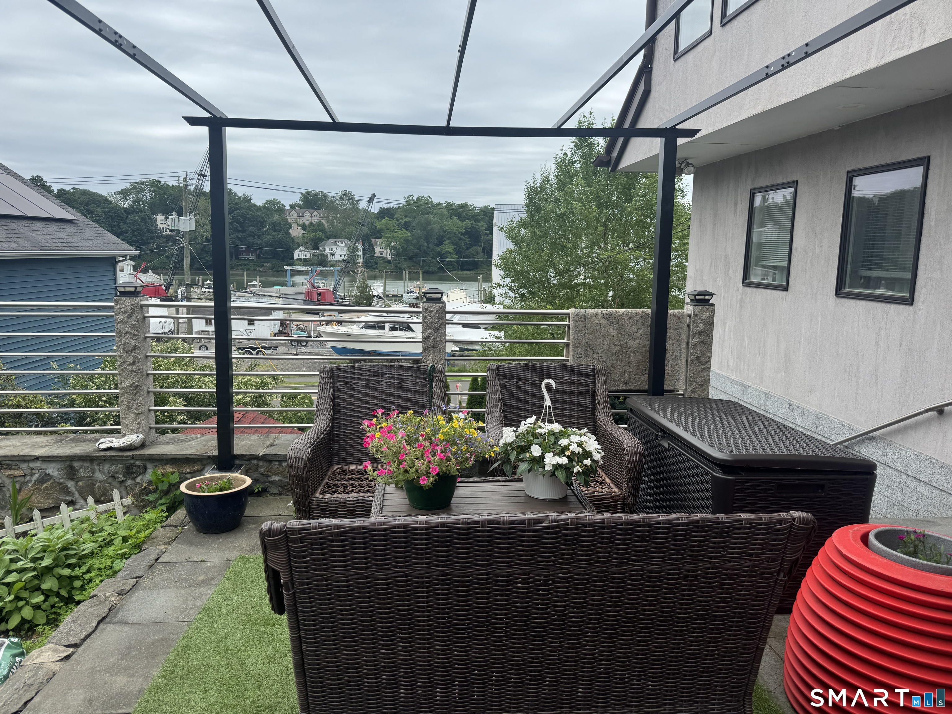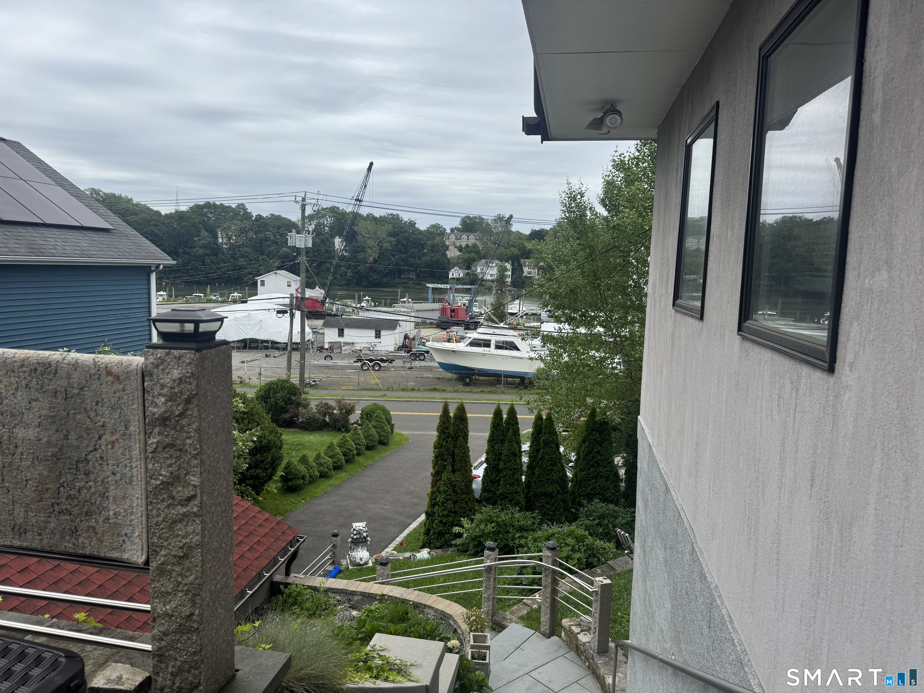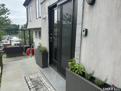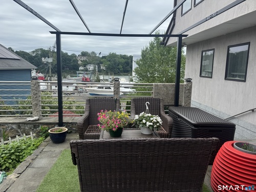 This contemporary European-style stucco residence with water views was constructed as a complete tear-down and rebuild, with construction beginning in 2016 and a Certificate of Occupancy issued in 2018. The home offers modern systems and finishes while preserving the charm of its Cos Cob setting. Architectural plans for the current structure, along with concepts for potential future expansion, are available. A current survey is available, and no flood insurance is required, even with potential expansion. The property features multiple inviting outdoor living areas, including a magnificent gazebo and three additional outdoor spaces, creating a peaceful and private setting for relaxation or entertaining. The detached garage is currently used as a workspace and additional office space, while the home's second bedroom is presently configured with a separate entrance, offering flexibility for a guest suite, studio, or private workspace. A unique opportunity to enjoy a thoughtfully rebuilt home that blends indoor comfort, outdoor living, and creative flexibility in one of Cos Cob's most charming riverside settings.