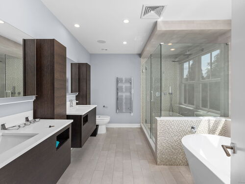 Timeless Elegance Meets Modern Luxury in Ridgefield, CT. Nestled on a beautifully landscaped 0.86-acre lot in southern Ridgefield, just minutes from the heart of the village, this masterfully restored 3-bedroom, 5.5-bath residence blends the warmth of 19th-century charm with the sophistication of contemporary living. Originally built in 1900, the home has been thoughtfully updated to showcase enduring craftsmanship alongside high-end modern finishes. At the heart of the home is a stunning transitional-style gourmet kitchen, complete with a spacious center island, custom cabinetry, a walk-in pantry, and a casual dining area, ideal for everyday living and entertaining. A formal dining room provides an elegant setting for gatherings, while the inviting living/family room is complemented by a convenient powder room. A main-level laundry room enhances the home's seamless and functional layout. Upstairs, the luxurious primary suite offers a peaceful retreat, featuring a generous walk-in closet with custom built-ins and a spa-inspired bath with a soaking tub and oversized shower. Two additional en-suite bedrooms each include their own walk-in closets, providing comfort and privacy. The third floor expands the home's versatility with a flexible layout, including a dedicated office or study nook and a bonus room perfect for crafts, hobbies, or an additional workspace, complete with built-ins. Step outside to experience year-round beauty in the professionally designed gardens...