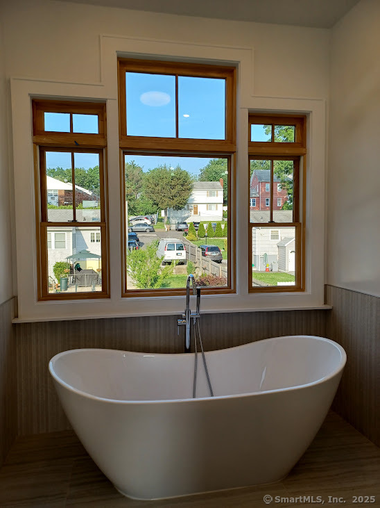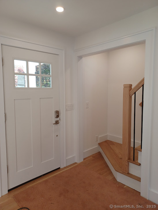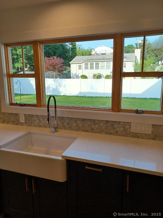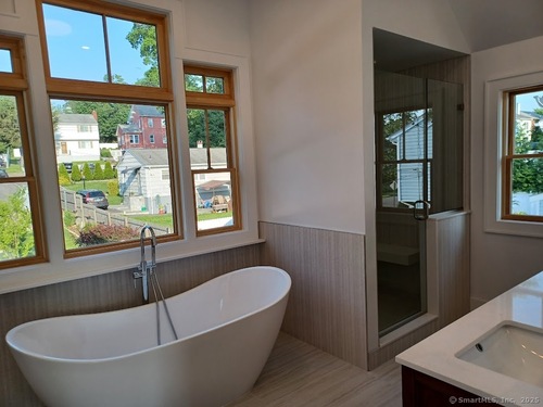 Single family home in The Cove. Walk to Beach, walk to public transportation, moments to I-95 at Exit 9. Can launch your boat at the Cove Harbor Marina/ramp with permit. Cove Park also offers Basketball, Tennis Courts, Ice Rink (indoor), and many acres of natural beauty (Stamford charges to access by the day). RARE OPPORTUNITY to live in a brand new home while keeping the home to a size that keeps it affordable. Inviting lemonade porch welcomes you into the home. Open concept with a chef's kitchen, breakfast bar, and family room outfitted for game day and movie night with hook up for a large screen tv. All of this overlooks the large grassy back yard. An office or guest room on the main level benefit from the 3/4 bath (shower) rather than just a powder room. Upstairs, fall in love with the Primary Suite with vaulted ceiling, two large closets, abundant oversized windows and a very generous bath. Outfitted with a soaking tub and oversized shower (several body spray heads) the double sinks in this well appointed Primary Bath Suite are a given. Two additional bedrooms on the upper level share the hall bath - also outfitted with double sinks. Tub/shower combination. Laundry here. Pull-down stairs for attic access.