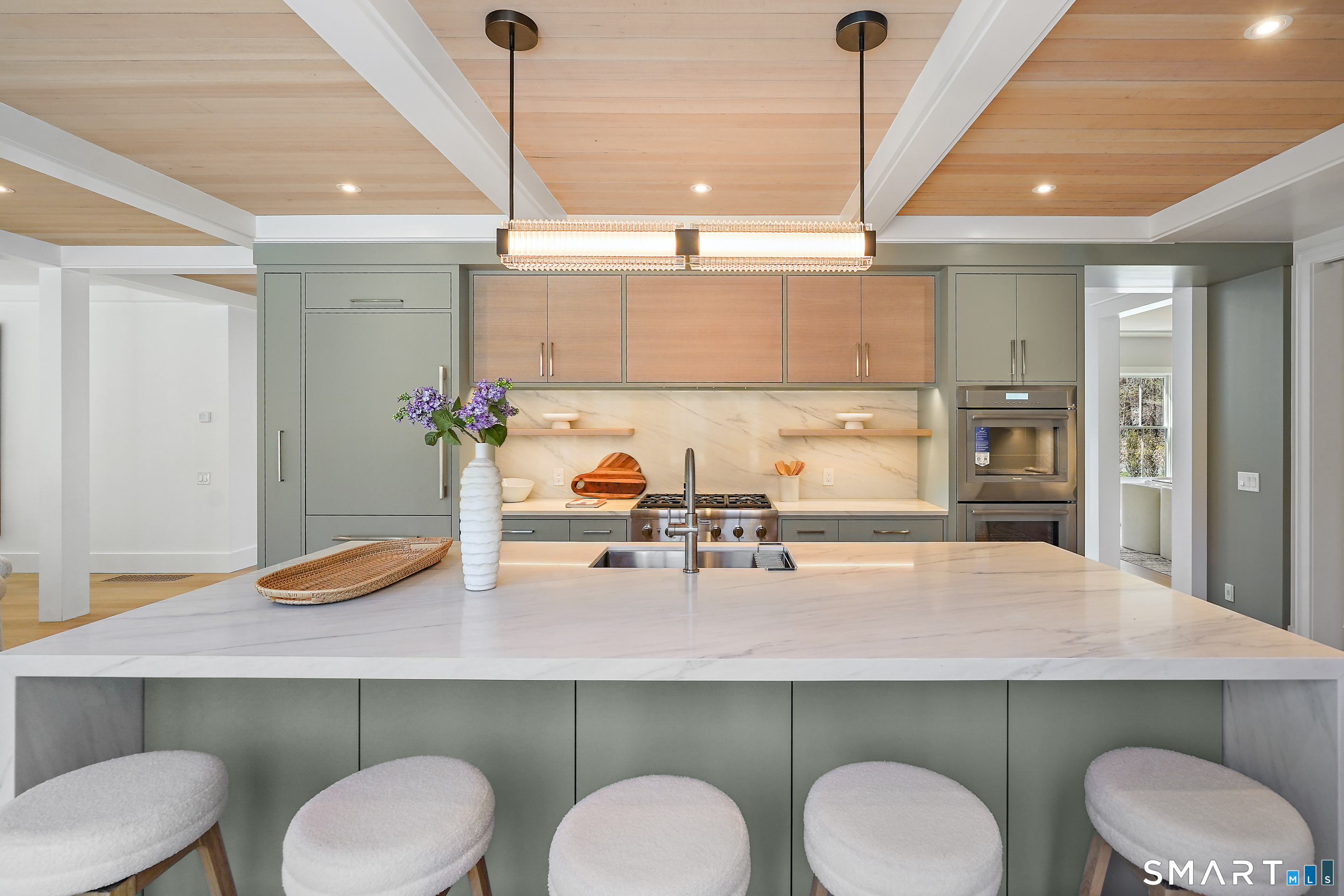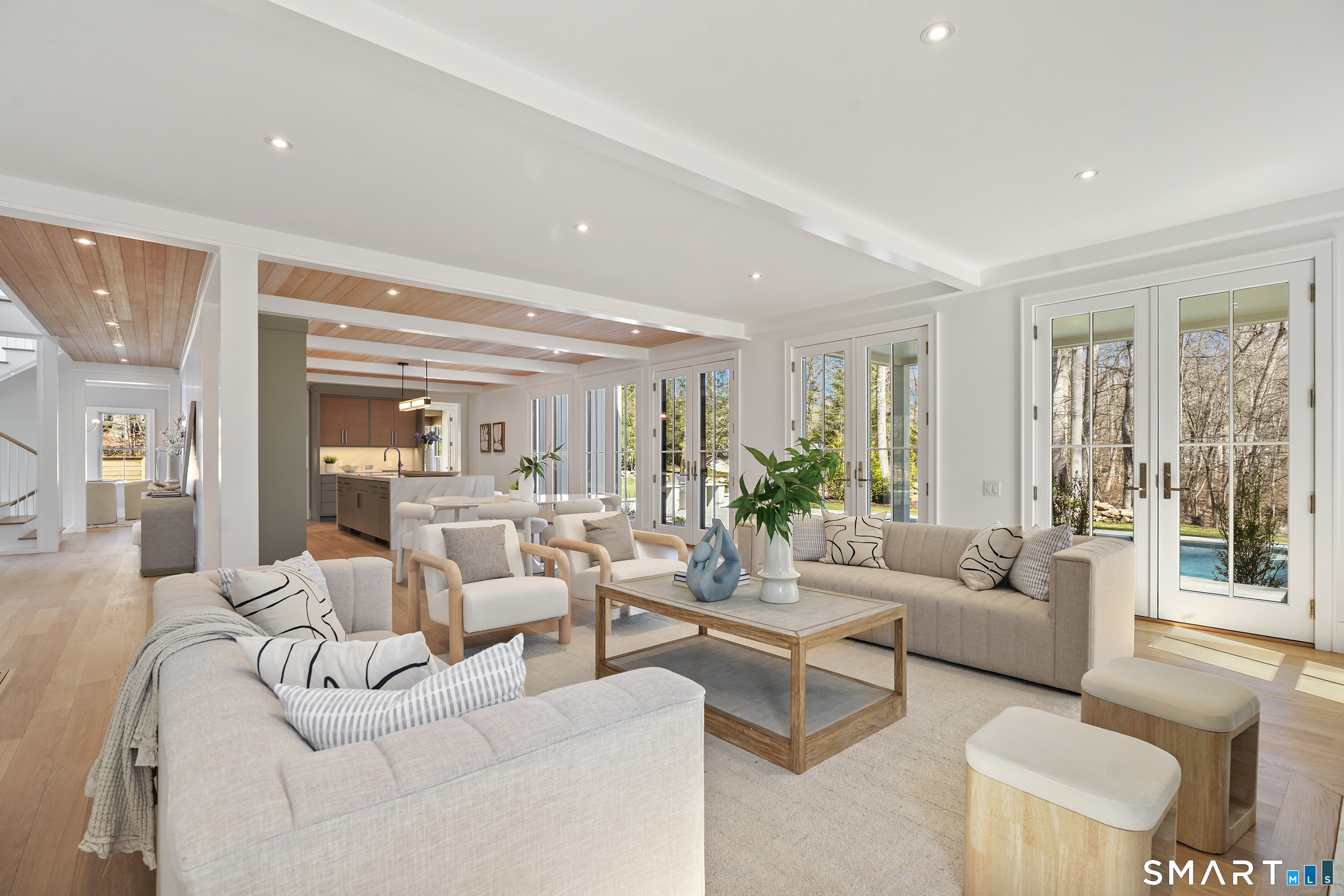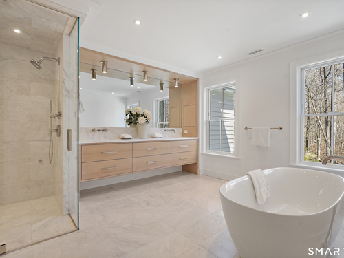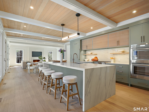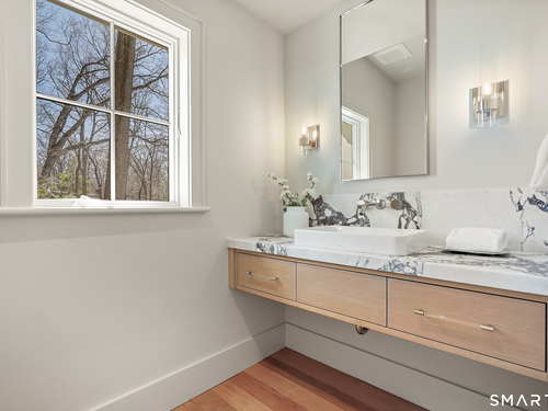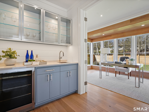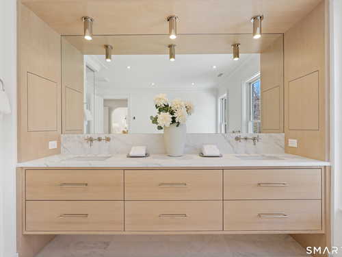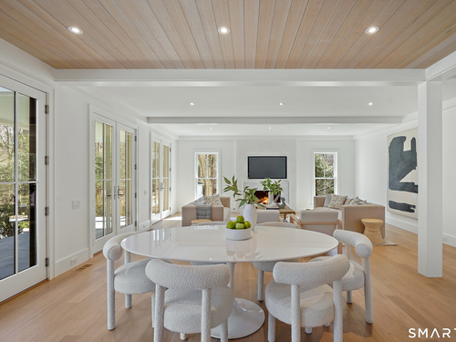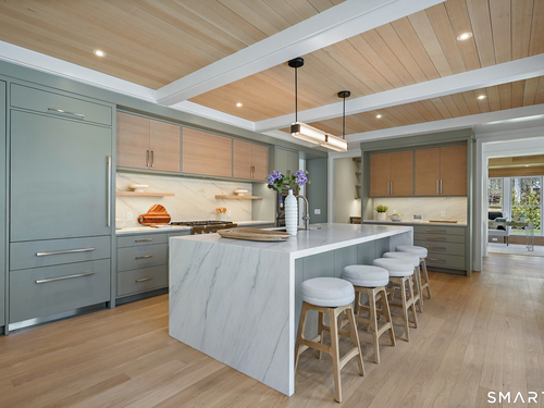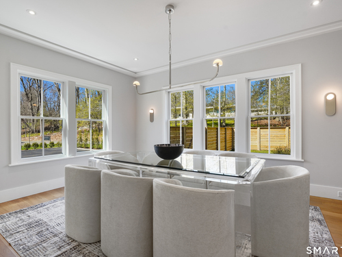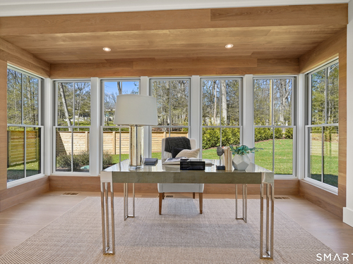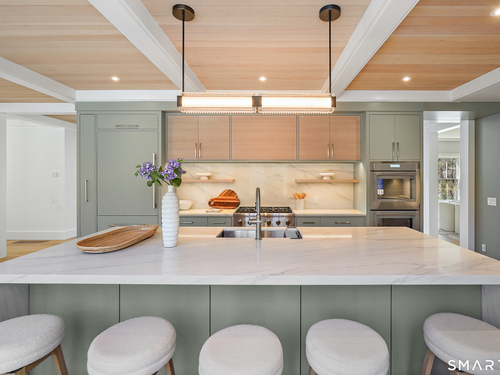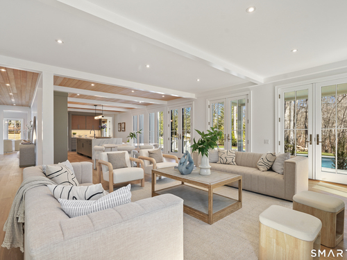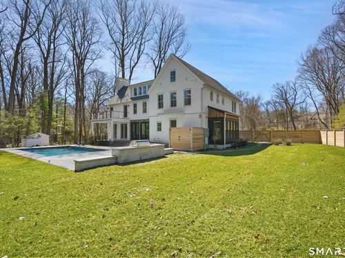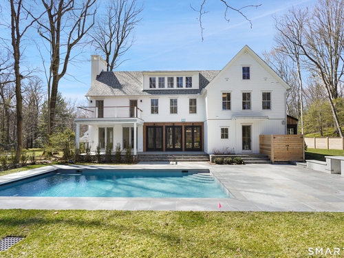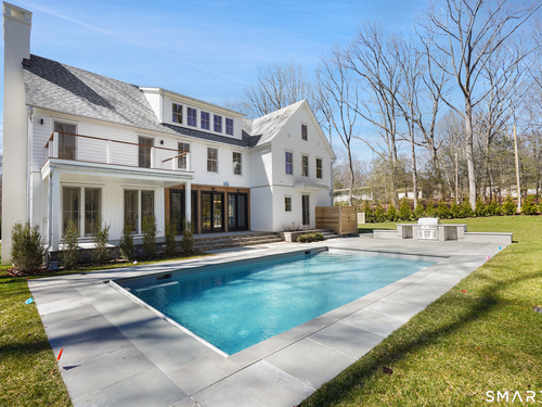 Imagine a residence where every element has been considered for gracious living in stylish surroundings. This newly completed home by awardwinning Able Construction is set on a peaceful Coleytown estatearea street, framed by scenic land that enhances its sense of calm. A dramatic foyer with a woodaccented ceiling and millwork feature wall introduces interiors defined by creative decor, walls of glass, and exquisite lighting. The great room, anchored by a marble fireplace and French doors to the pool and patio, flows into the designer kitchen with a striking island, stone counters, custom cabinetry, Thermador appliances, and a beautiful and functional pantry. The dining room is a jewel, offering an elegant setting with illuminated shelving and views of the grounds. A quiet office and superb mudroom add daily convenience. A glasslined stair tower leads to sunfilled bedroom suites, beginning with the sublime primary suite set beyond double doors. An arched entry reveals a kingsized bedroom with balcony, two custom walkin closets, and a spalike bath with glass shower and distinctive vanity. The upper level also offers a laundry room with double washer and dryers and access to the finished thirdfloor bonus space. The lower level includes a fifth bedroom suite, recreation room, gym and media areas, and generous storage. Outside, the pool becomes the centerpiece for entertaining and relaxing at this designcentric showplace of style.