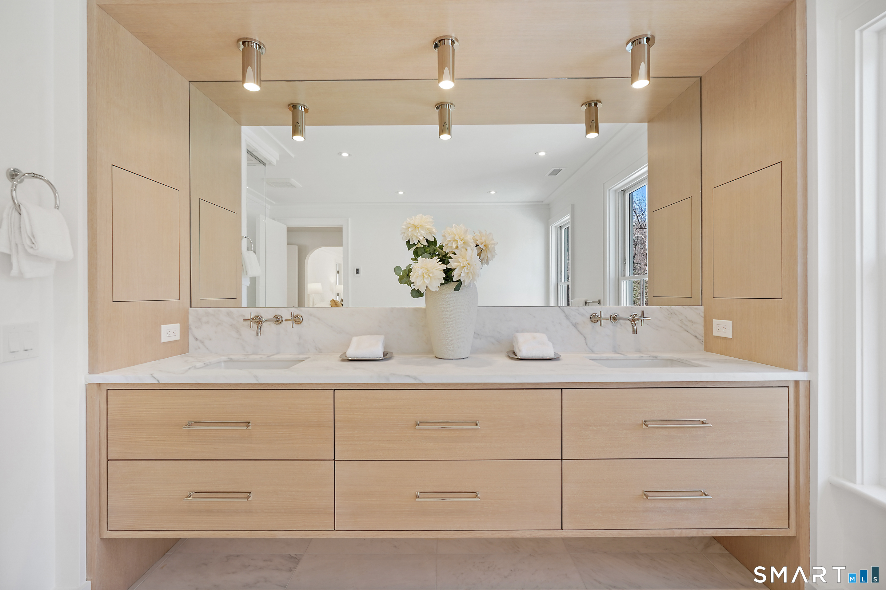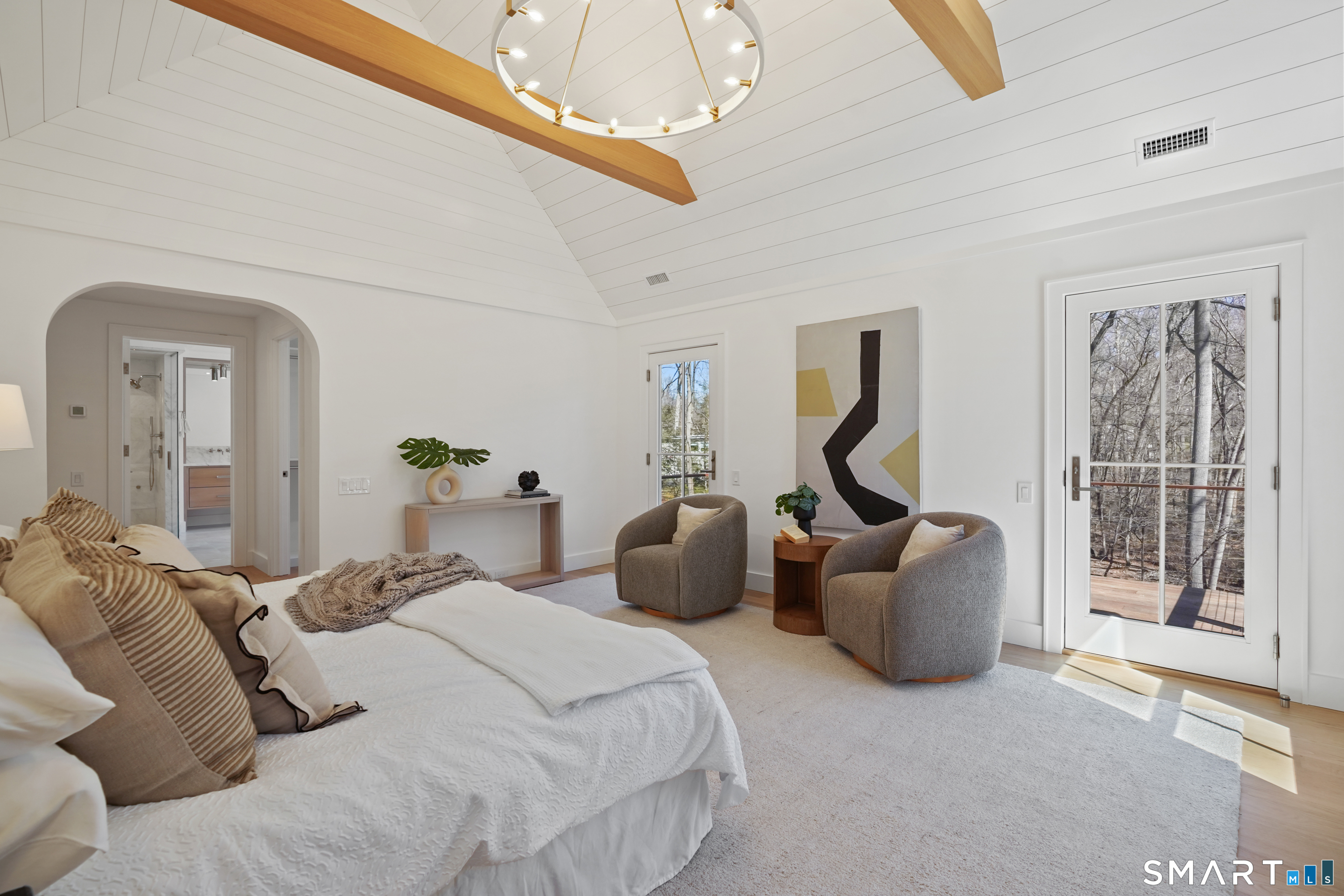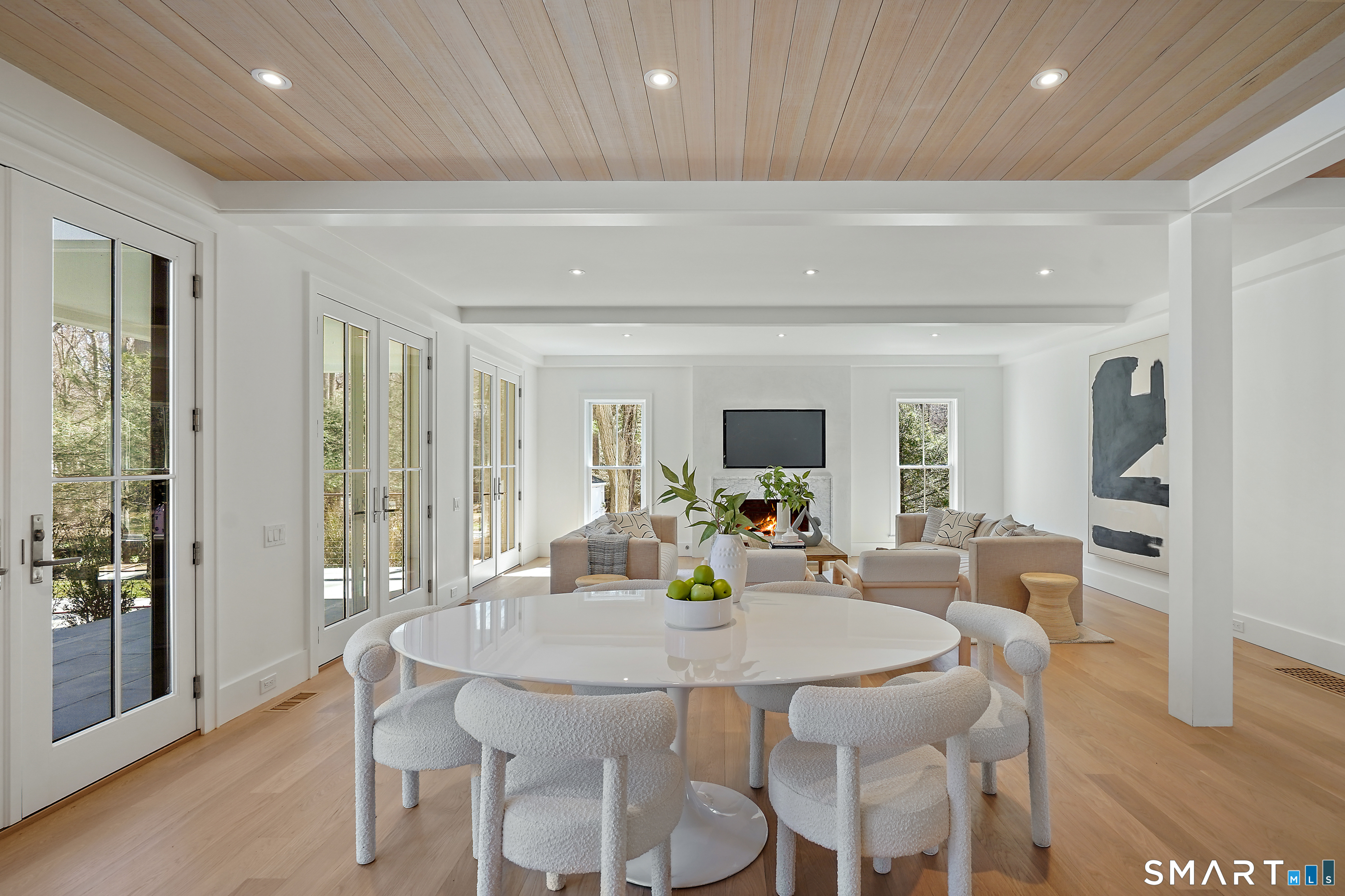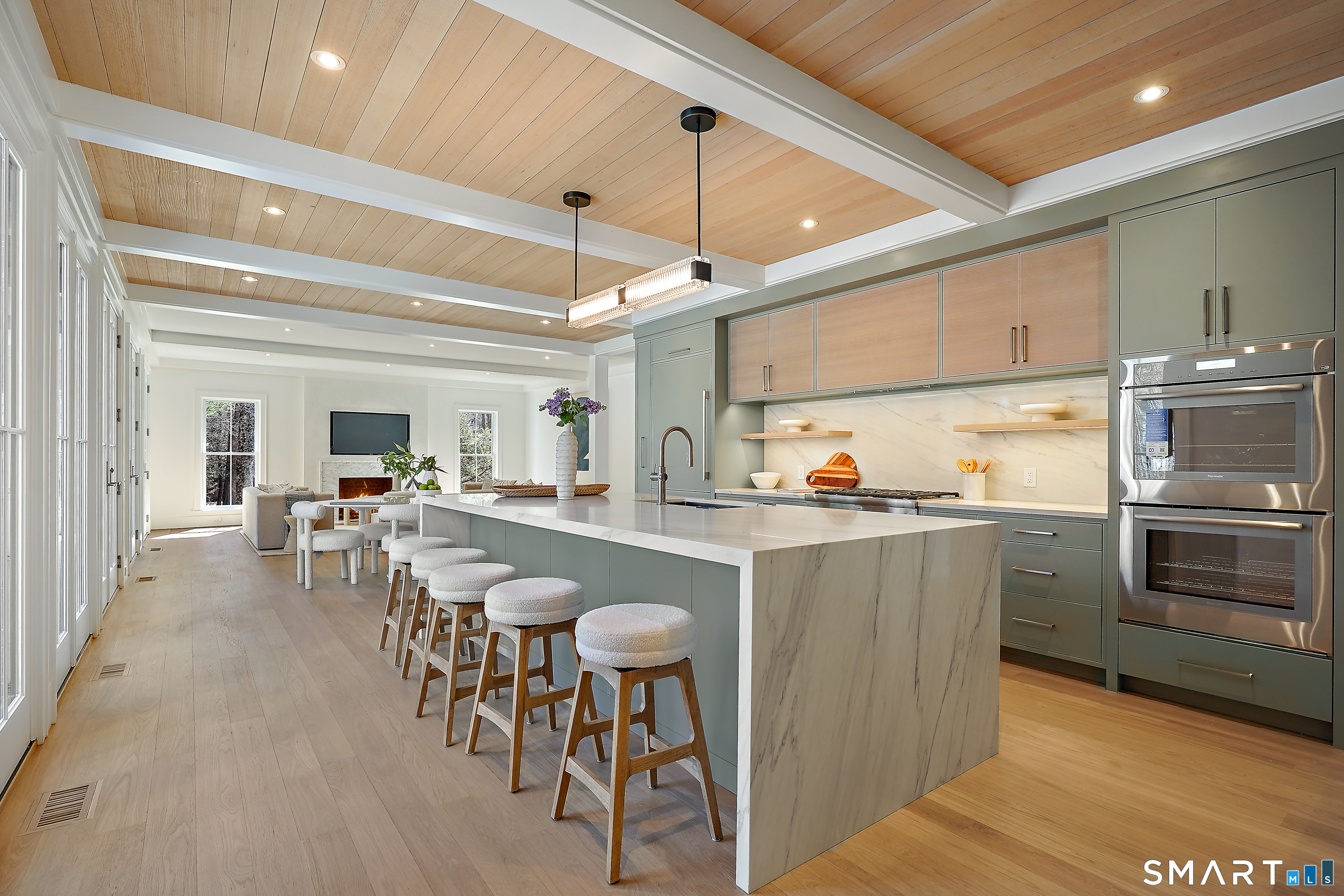 Imagine a residence where every element has been considered for gracious living in stylish surroundings. This newly completed home by awardwinning Able Construction is set on a peaceful Coleytown estatearea street, framed by scenic land that enhances its sense of calm. A dramatic foyer with a woodaccented ceiling and millwork feature wall introduces interiors defined by creative decor, walls of glass, and exquisite lighting. The great room, anchored by a marble fireplace and French doors to the pool and patio, flows into the designer kitchen with a striking island, stone counters, custom cabinetry, Thermador appliances, and a beautiful and functional pantry. The dining room is a jewel, offering an elegant setting with illuminated shelving and views of the grounds. A quiet office and superb mudroom add daily convenience. A glasslined stair tower leads to sunfilled bedroom suites, beginning with the sublime primary suite set beyond double doors. An arched entry reveals a kingsized bedroom with balcony, two custom walkin closets, and a spalike bath with glass shower and distinctive vanity. The upper level also offers a laundry room with double washer and dryers and access to the finished thirdfloor bonus space. The lower level includes a fifth bedroom suite, recreation room, gym and media areas, and generous storage. Outside, the pool becomes the centerpiece for entertaining and relaxing at this designcentric showplace of style.