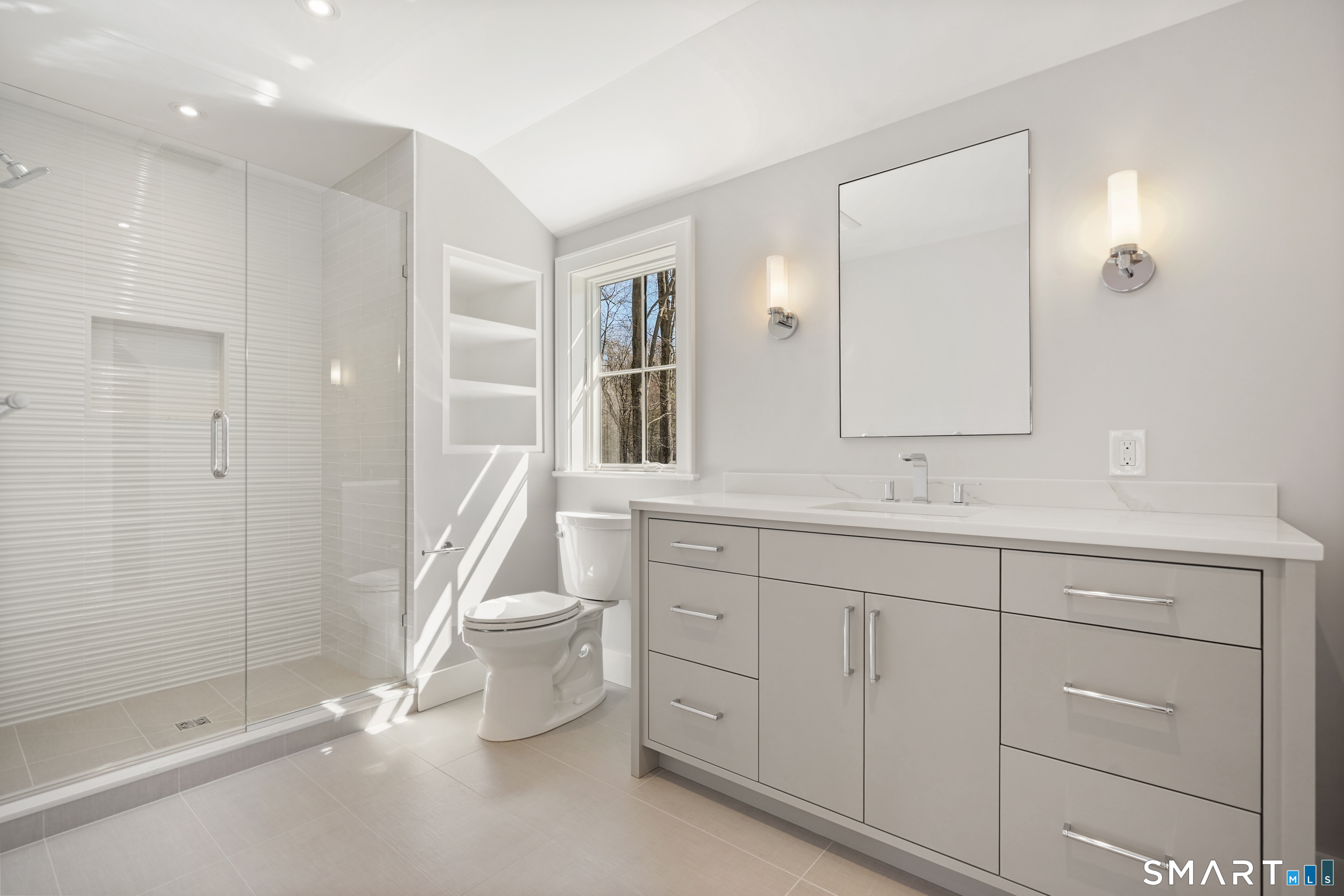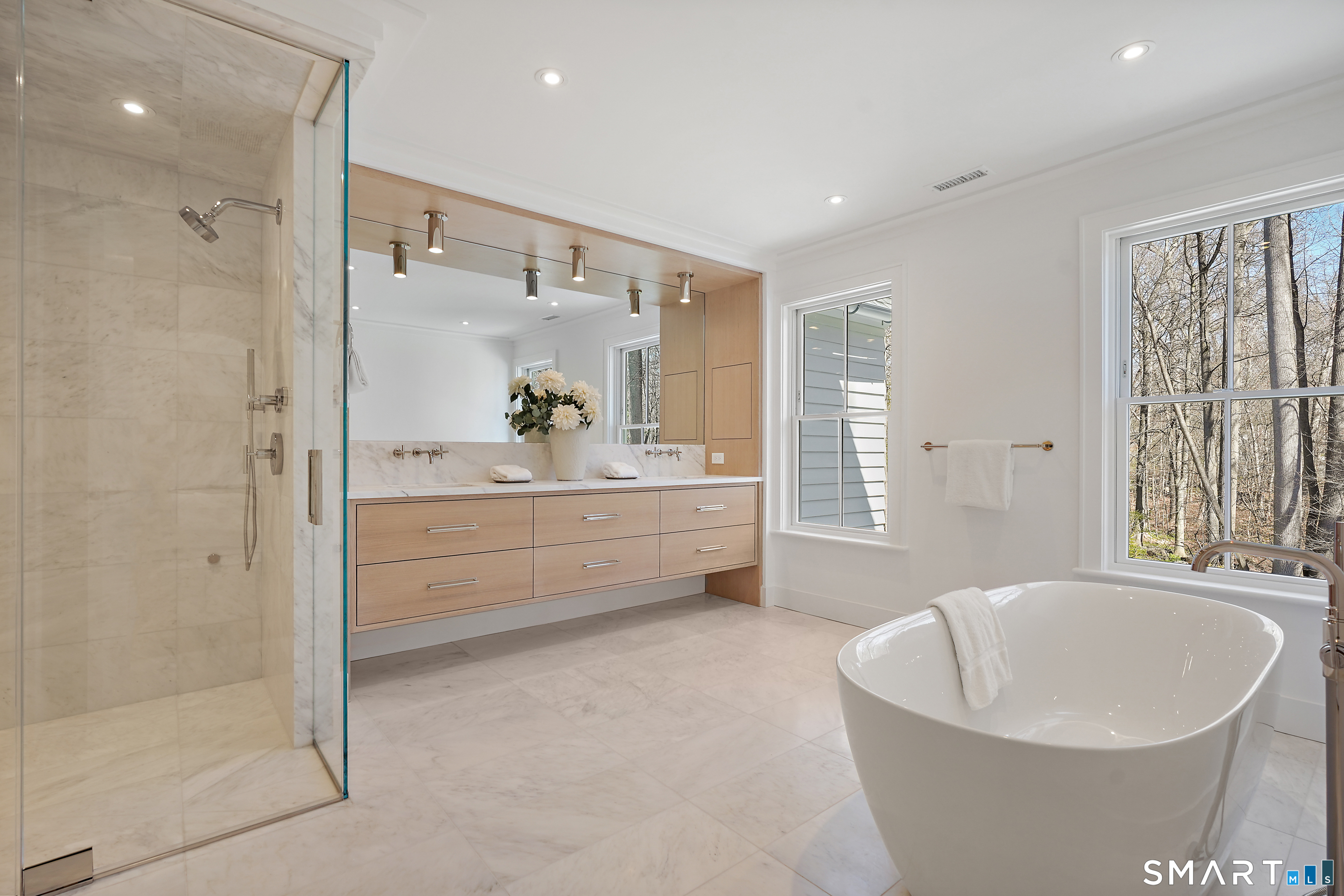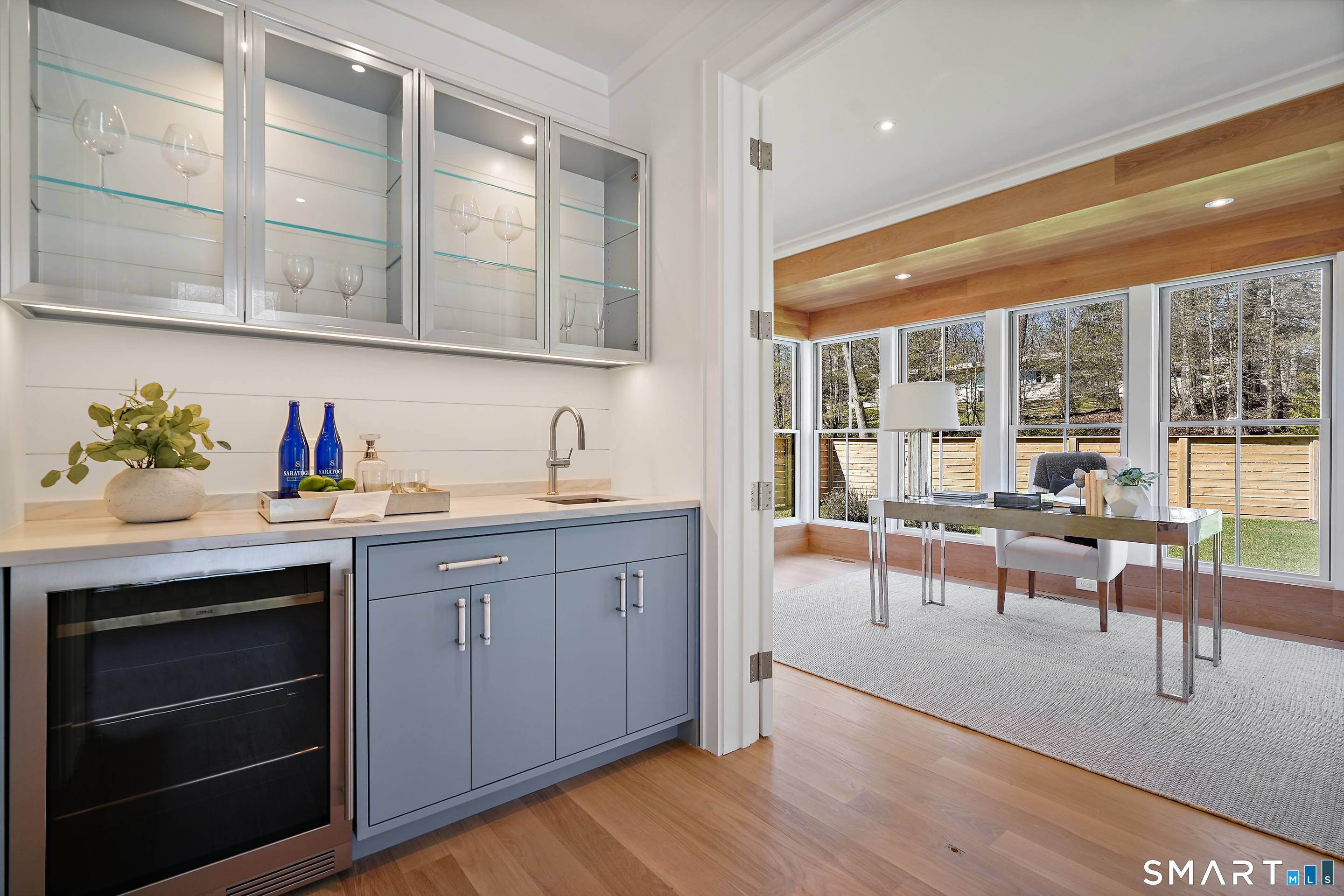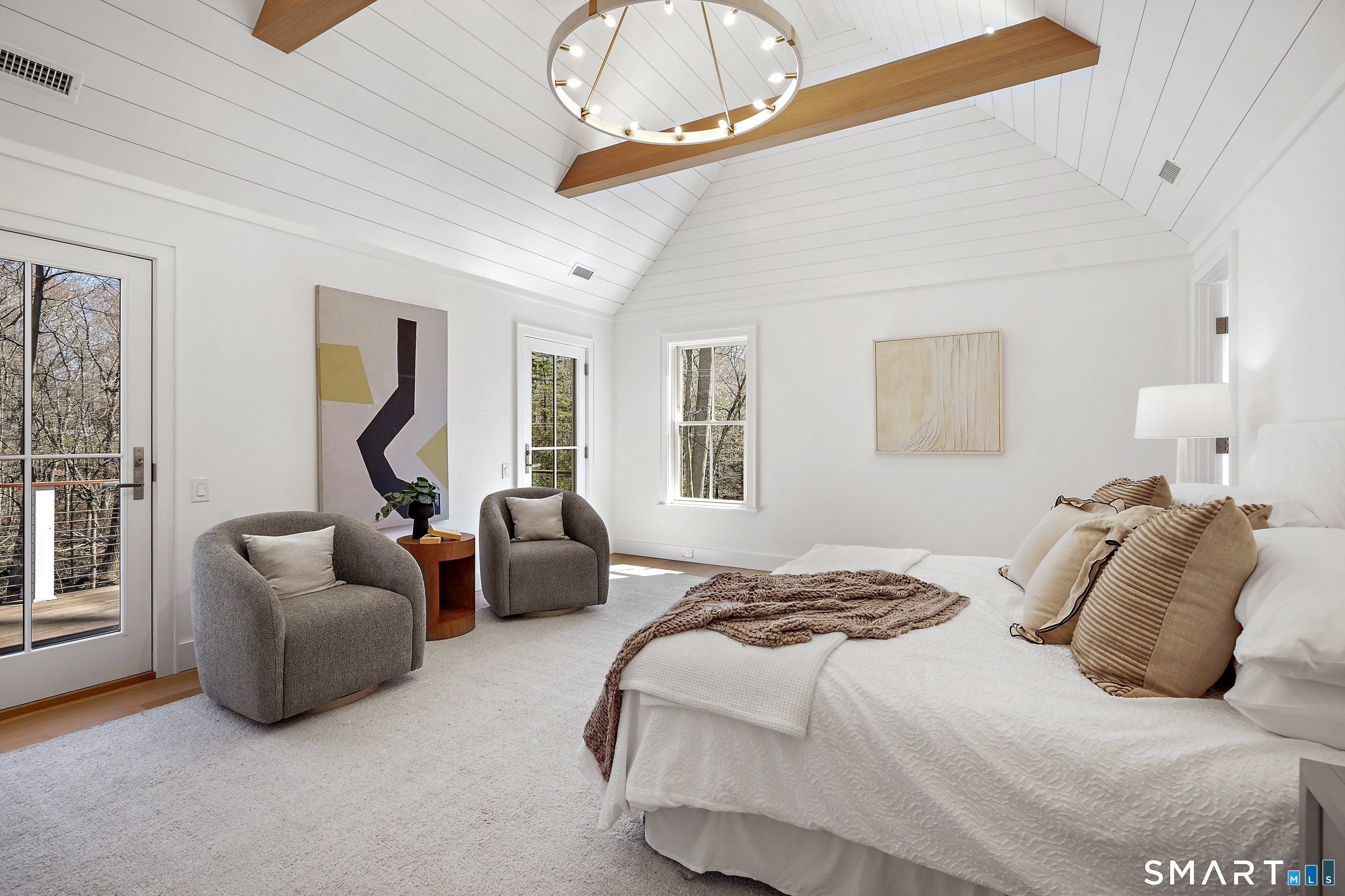 Imagine a residence where every element has been considered for gracious living in stylish surroundings. This newly completed home by awardwinning Able Construction is set on a peaceful Coleytown estatearea street, framed by scenic land that enhances its sense of calm. A dramatic foyer with a woodaccented ceiling and millwork feature wall introduces interiors defined by creative decor, walls of glass, and exquisite lighting. The great room, anchored by a marble fireplace and French doors to the pool and patio, flows into the designer kitchen with a striking island, stone counters, custom cabinetry, Thermador appliances, and a beautiful and functional pantry. The dining room is a jewel, offering an elegant setting with illuminated shelving and views of the grounds. A quiet office and superb mudroom add daily convenience. A glasslined stair tower leads to sunfilled bedroom suites, beginning with the sublime primary suite set beyond double doors. An arched entry reveals a kingsized bedroom with balcony, two custom walkin closets, and a spalike bath with glass shower and distinctive vanity. The upper level also offers a laundry room with double washer and dryers and access to the finished thirdfloor bonus space. The lower level includes a fifth bedroom suite, recreation room, gym and media areas, and generous storage. Outside, the pool becomes the centerpiece for entertaining and relaxing at this designcentric showplace of style.