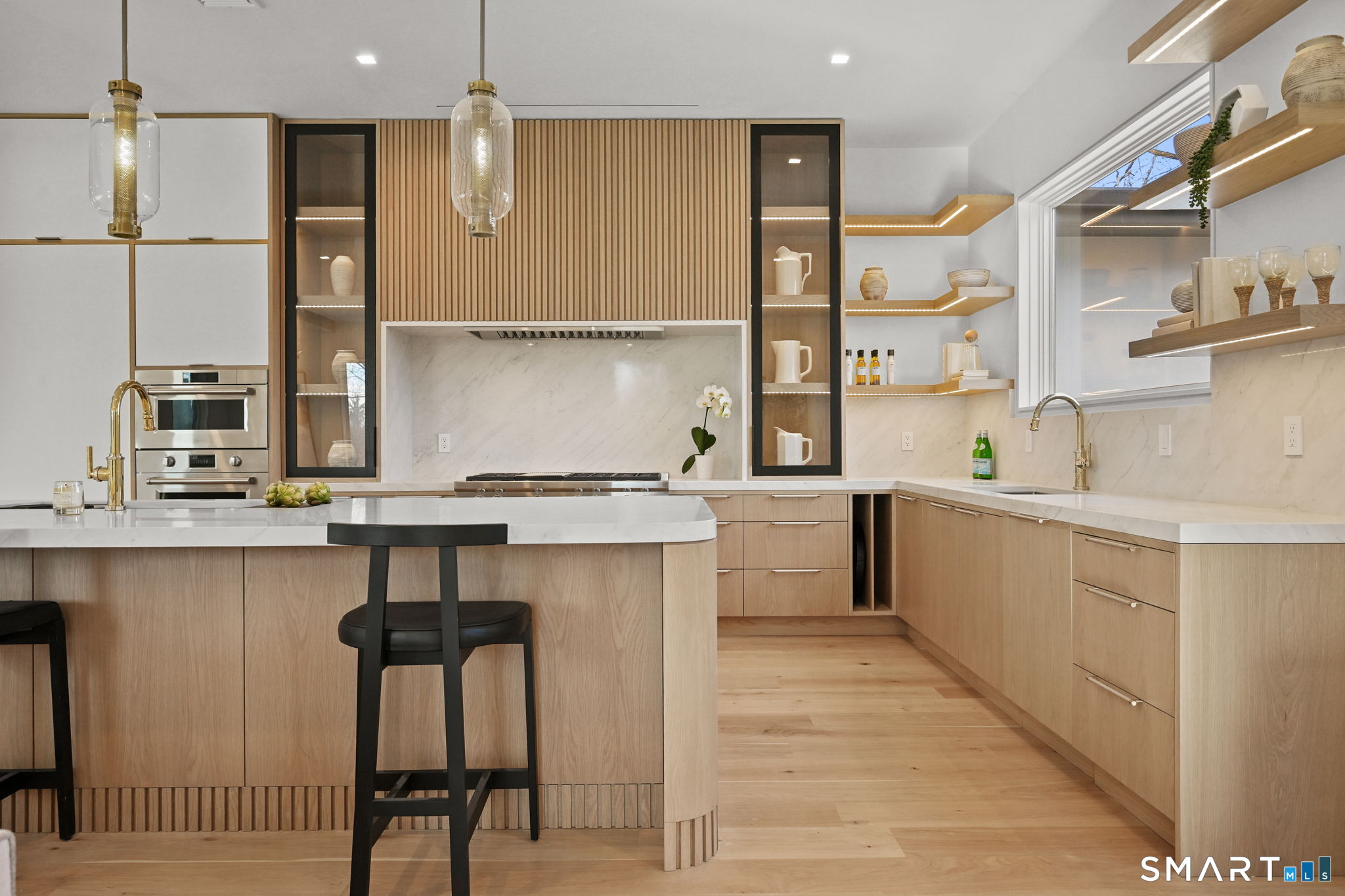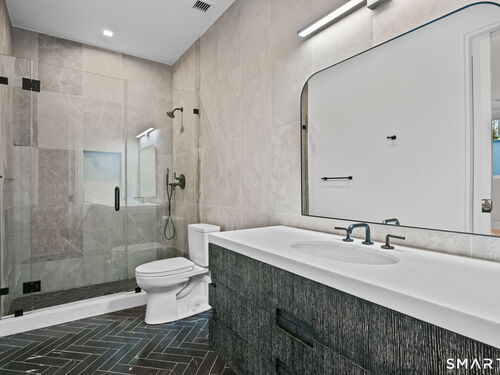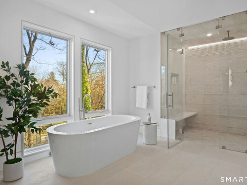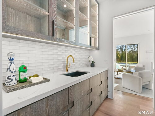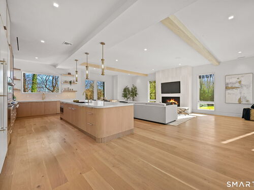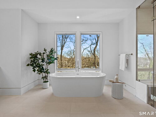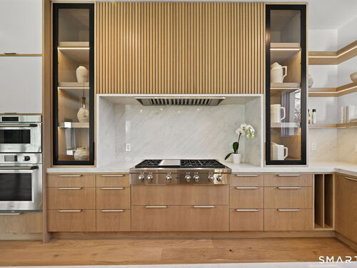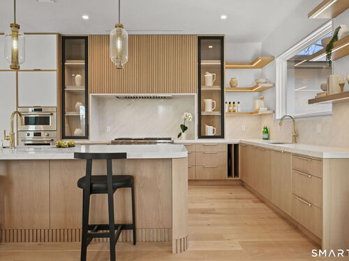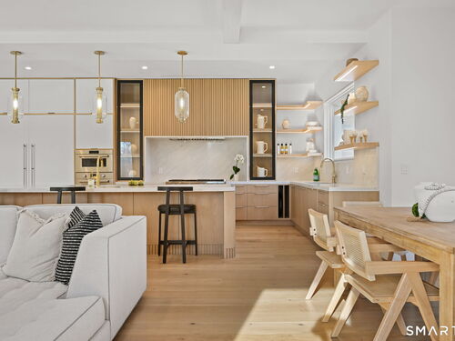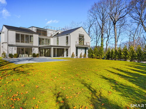 2025 New Consruction residence sits on 0.78 acres combines privacy, elegance, and timeless design just moments Greenwich Ave. Built by Hobi Award winner, RA Land Development, interiors by the acclaimed Laura Michael Design. This home features soaring ceilings, light filled rooms, and seamless indoor-outdoor living. Highlights include a rooftop deck with Long Island Sound views that crowns the residence, a 3-car garage (+900 sq. Ft.) with 14-ft ceilings, and top-of-the-line finishes throughout. The Chef's kitchen features top-tier appliances, such as Sub-Zero, Wolf, Julien sinks. A grand center island, Custom cabinetry, and thoughtful storage, providing effortless daily living and elevated entertaining. The primary suite offers a double-sided fireplace, creating a warm ambiance enjoyed from both the bedroom and the spa-like bath. A private balcony extends the retreat, while the spa-inspired bathroom features a steam shower and radiant heated floors. 4 additional light filled en-suite bedrooms, share the same level, alongside a full laundry suite equipped with custom built-ins including steam/Iron drawer, a dry rack drawer, and stacked double washers and dryers. A 4-stop hydraulic elevator serves every level-from the versatile finished attic to a finished expansive lower level, you'll find a dedicated room for a gym, guest/au pair en-suite, and pre-wired theater/Golf simulator, ample space for a wine cellar, storage, and protected living space.
