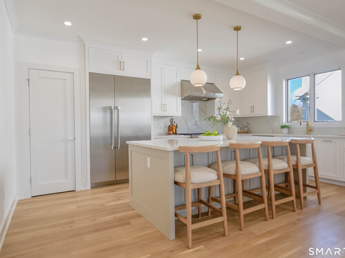 Approximately 4,000 square feet townhouse feels like a single family home with thoughtfully designed living space and featuring four bedrooms, four en-suite bathrooms, and two half baths, and private elevator. This residence offers ample room to accommodate a variety of household needs. The primary suite boasts a luxurious en-suite bathroom with a dual vanity, walk-in shower, soaking tub, and generous walk-in closet. Additional bedrooms provide both privacy and flexibility, each with access to a full bathroom. An open-concept floor plan seamlessly integrates the living, dining, and kitchen areas, creating a cohesive and functional living environment. The modern kitchen is outfitted with professional-grade appliances, while antique brass fixtures and white oak flooring lend a refined, timeless aesthetic throughout. A versatile multi-purpose room offers endless possibilities, whether used as a home office, fitness area, golf simulator or additional living space. Residents enjoy the convenience of a private elevator and the outdoor retreat of a private patio-perfect for relaxing or entertaining. Situated in a highly walkable neighborhood, this home is just moments from the beach and downtown, offering easy access to restaurants, shops, and recreational opportunities. The HOA maintains common areas as well as home insurance ensuring a low-maintenance lifestyle. This exceptional townhouse presents the perfect blend of modern design, convenience, and location