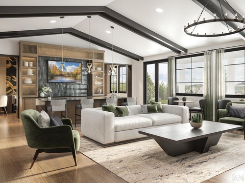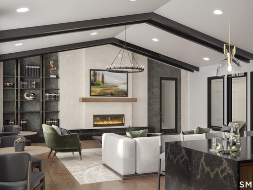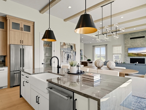 The Alstead blends sophistication with everyday comfort in a thoughtfully planned 55+ community-the only opportunity to own a single-family home with resort-style amenities and primary living on the first floor. A welcoming foyer with a tray ceiling leads past a versatile flex room into the open main living area, where an elegant dining room flows into a spacious great room featuring a cozy fireplace as its focal point. Just beyond, a casual dining area opens to the rear yard and connects to the well-appointed kitchen, complete with wraparound countertops, a center island with breakfast bar, and a generous pantry. The serene primary suite offers a spacious walk-in closet and a relaxing, spa-inspired bath with a dual-sink vanity, luxe shower with seat, and private water closet. A secondary bedroom at the front of the home is conveniently located near a full hall bath-ideal for guests or a home office. Additional highlights include an everyday entry, centrally located laundry, and ample storage throughout, all designed to support a comfortable, low-maintenance lifestyle.