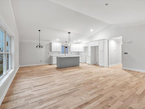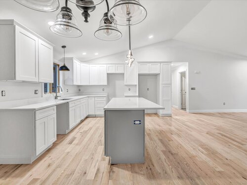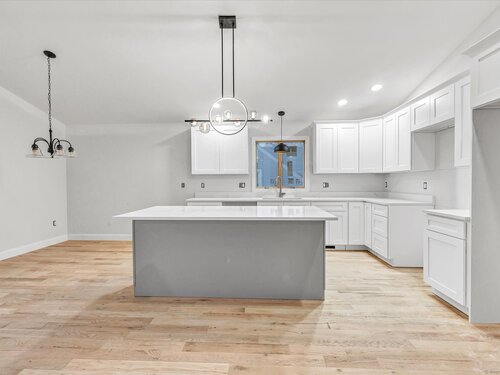 New Construction - Contemporary Custom Home with In-Law Potential Welcome to this stunning new construction contemporary home that has everything you're looking for-whether you're expanding your family or seeking the perfect in-law setup, this is the one! This custom-designed home features two full levels of living space. The main floor boasts an open-concept layout with vaulted ceilings throughout the living room with fireplace, dining area, and kitchen, creating a bright and spacious atmosphere. The chef's kitchen includes a center island, quartz countertops, and custom cabinets, making it the heart of the home. Also on the main level is the primary bedroom suite with vaulted ceilings, two additional bedrooms, a full bath, and a convenient laundry area. The above-grade lower level offers a large great room, full bathroom, and an additional bedroom-ideal for an in-law arrangement or extended living space. There's even the potential to add a second kitchen to complete the setup. Additional features include economical natural gas heat, central air conditioning, custom finishes, hardwood floors, and more. Located in the highly desirable Paradise Green neighborhood, you're just minutes from schools, parks, shopping, restaurants, and all major highways. Now is the time to customize your dream home! Meet the on-site representative today and make it yours. This opportunity won't last-schedule your visit now!