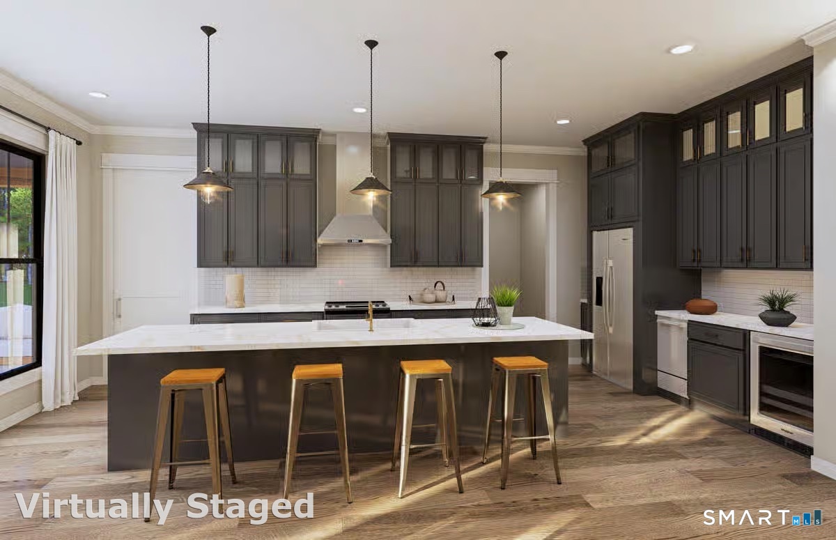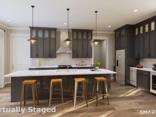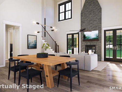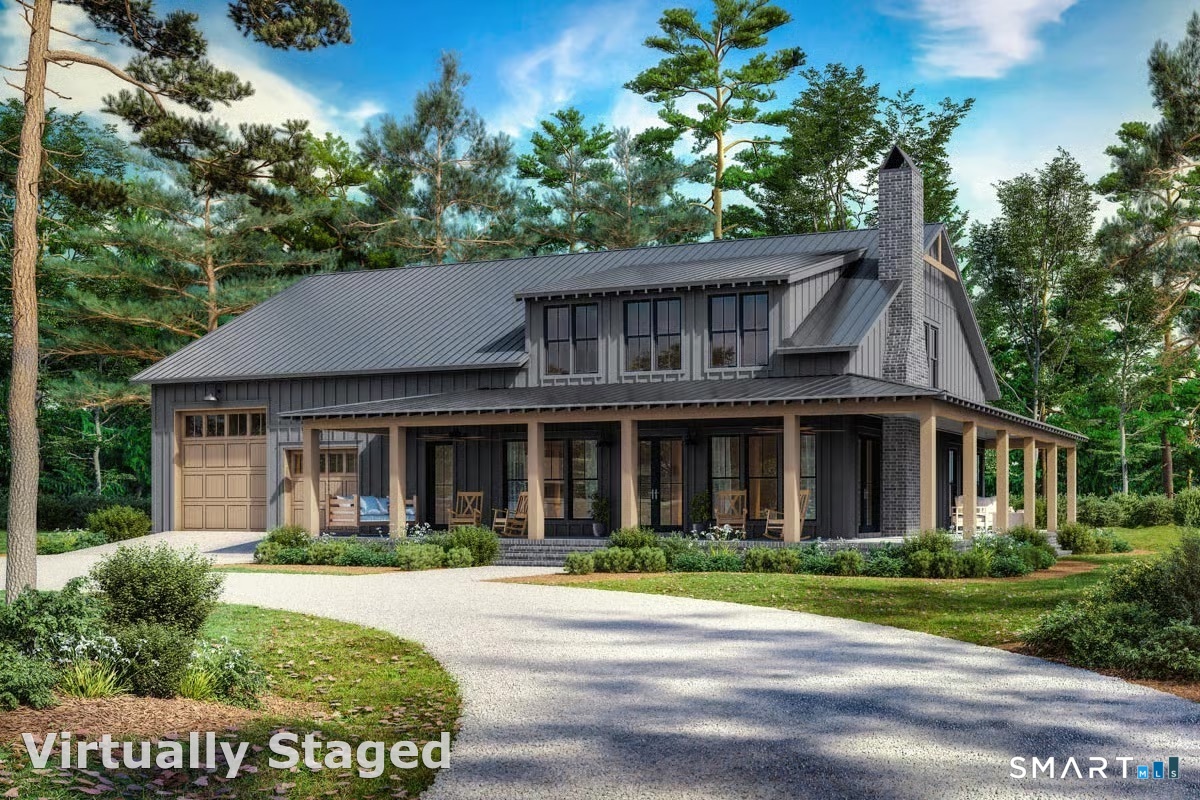 A rare opportunity to create a custom modern retreat in one of North Stamford's most serene settings. Located in a prestigious enclave of fine residences on a quiet cul-de-sac, this stunning to-be-built modern home offers a rare combination of luxury, privacy, and natural beauty. Featuring 4 bedrooms plus loft, 3 baths, and 3,782 sq ft of thoughtfully designed living space, the home is sited on 2 scenic acres with peaceful seasonal reservoir views-ideal as a full-time residence or weekend escape. A charming covered front porch leads to a dramatic two-story foyer and expansive Great Room with fireplace, soaring ceilings, and walls of windows overlooking the landscape. The open chef's kitchen boasts an oversized island, exquisite cabinetry, high-end appliances, and walk-in pantry, connecting seamlessly to a wraparound covered porch designed for great outdoor living. The main-level primary suite offers a spa-like bath, dual walk-in closets, and French doors opening to the porch. A 2nd first-floor bedroom with adjacent full bath provides ideal guest or home office space. Mudroom and laundry room complete the 1st level. Upstairs includes 2 bedrooms, full bath, and bright open loft. Optional finished walkout lower level adds up to 2,260 sf, at add'l cost. Conveniently located near fine dining, shopping, theaters, parks, golf, hiking, beaches, and everything the vibrant City of Stamford offers, easy access to train, airport and Hwys! One hour to NYC! Renderings are representational.