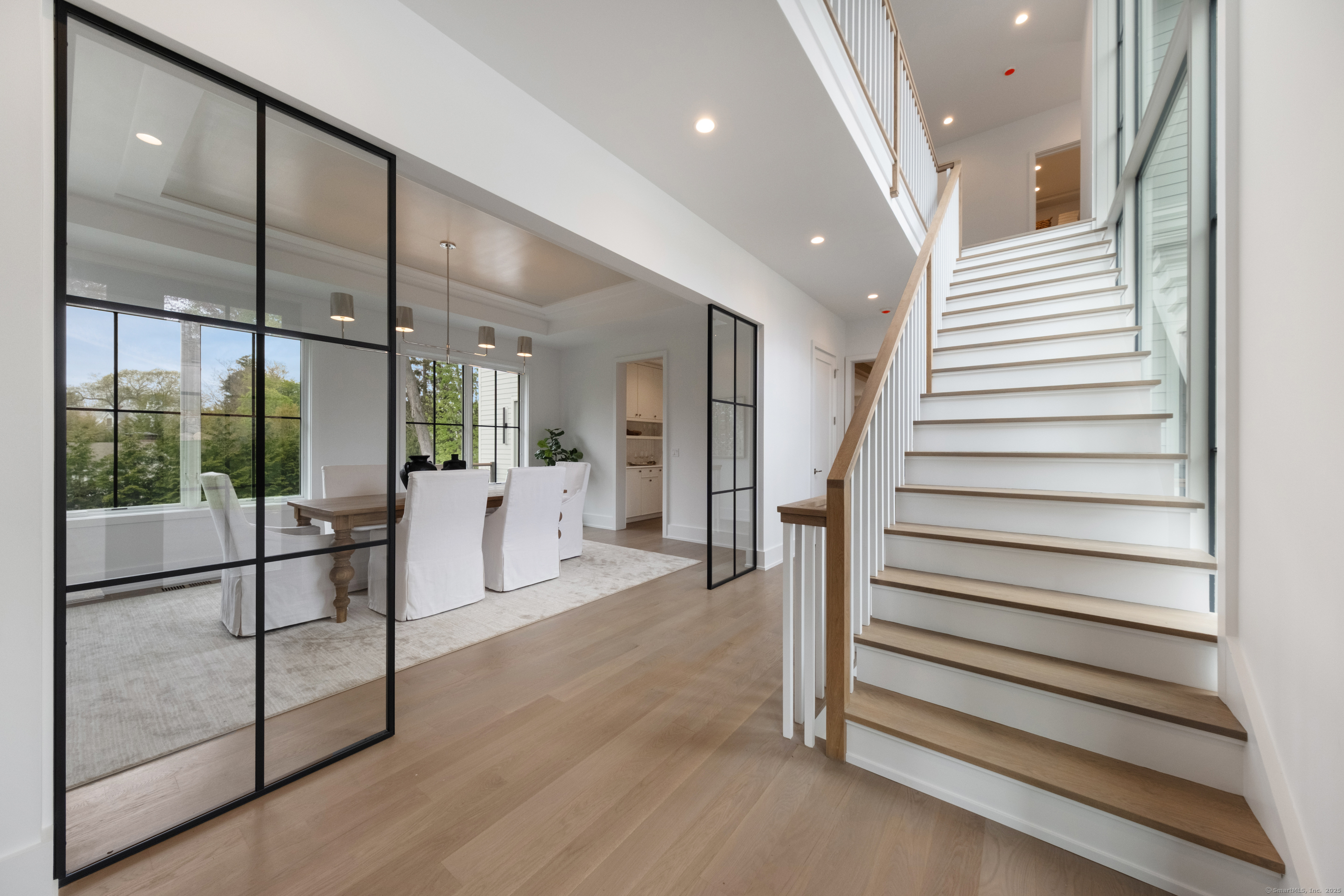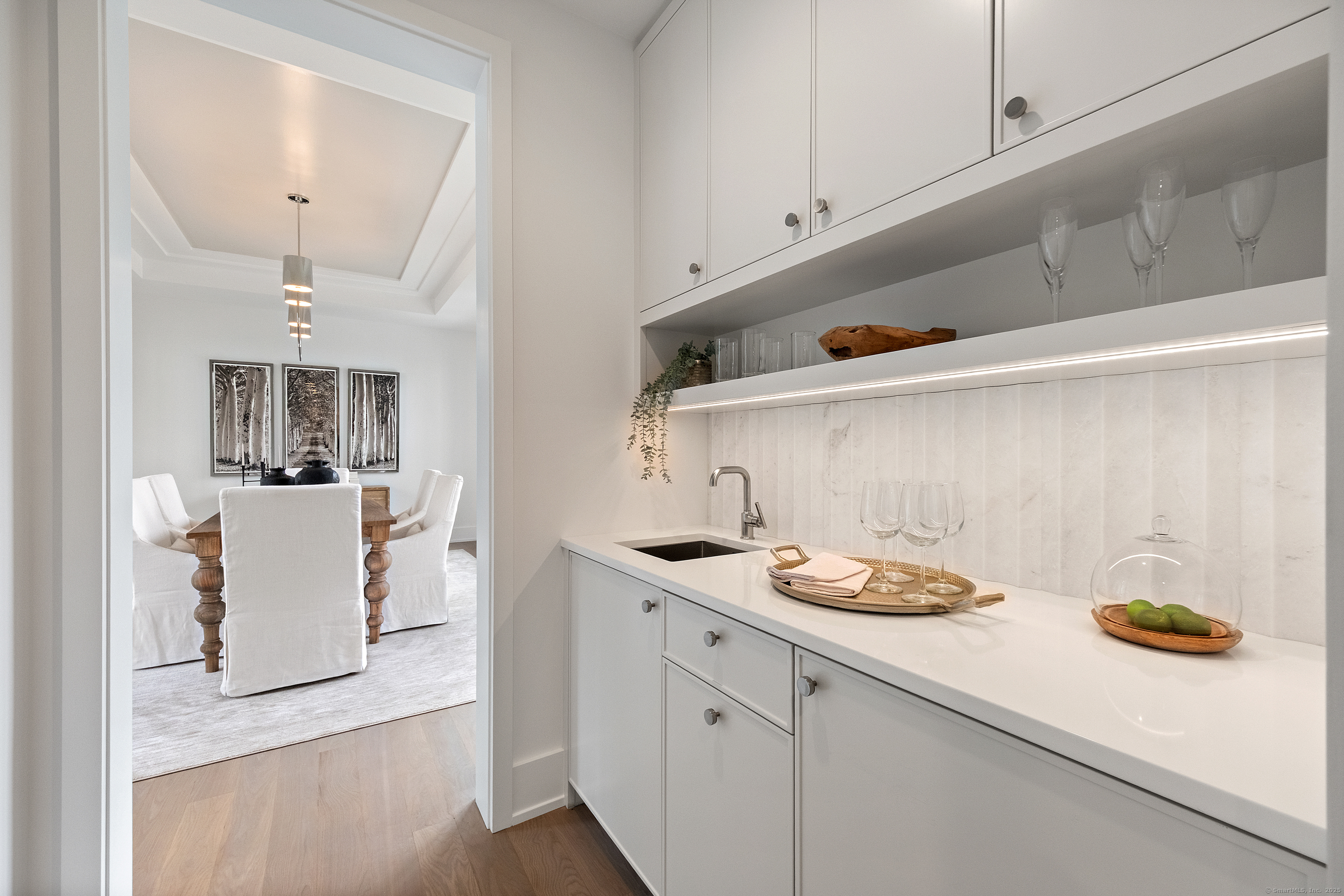 THE ESTATES AT COMPO SOUTH - SIR Development presents the last of two luxury residences set back on beautiful property, each with their own distinct Modern style and pool. Officially designated by the State of CT as a Scenic Roadway, this location offers ultimate convenience to every amenity that makes Westport one of the most highly desired towns in the nation. This elevator-ready home begins with a spectacular glass-lined foyer, filling the entire layout with sun. The private office/library with extensive built-ins provides a wonderful place to work. The dining room is accented by steel-framed glass panels and a crisp tray ceiling detail, while the butler's pantry has a fluted backsplash. The incredible gourmet kitchen features a pale oak-accented ceiling, generous island, Thermador appls incl double dishwashers and massive ref/frz. The open flow continues into the fam rm w/bold coffered ceil detail, linear gas fpl and glass doors to the deck. The oversized mudrm links the hub of the home to the garage and casual entry. Upstairs, the first 5 BRs incl the primary suite, which is an awe-inspiring sanctuary of refined design and ultimate comfort, beginning w/the cath ceil BR w/fpl, massive dbl clsts, a designer bath & more. Each BR has unique appeal. 3rd flr bonus space & the 6th BR. The finished, walk-out LL has the 7th BR, rec/gym/media, cabana bar for poolside entertaining, all stepping out to a patio. Just moments to Compo Beach, Longshore Club Park, train and town.