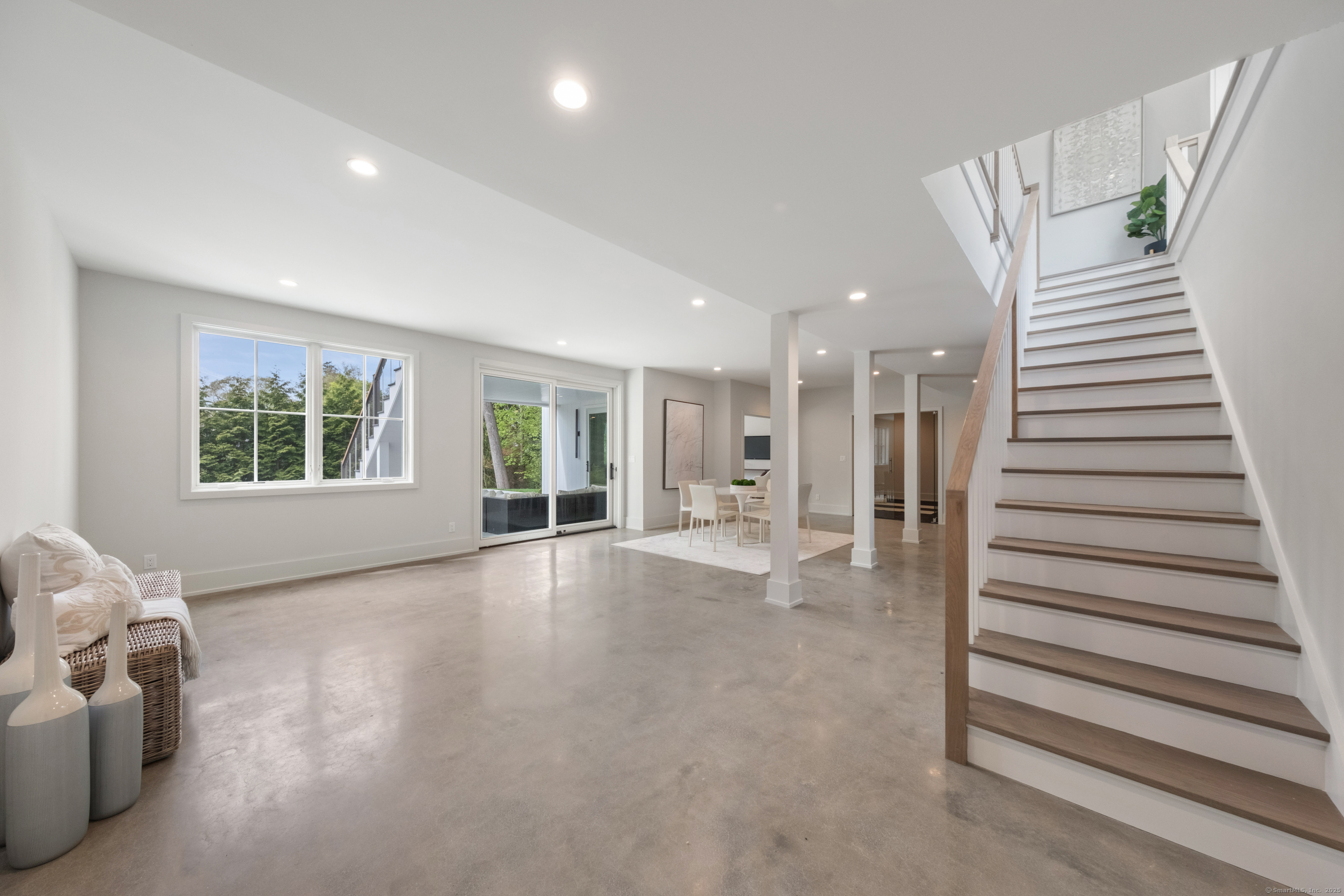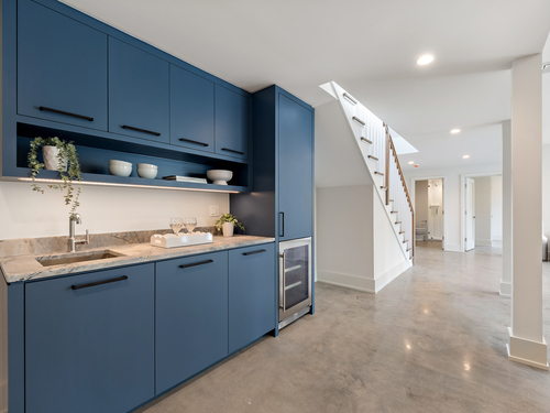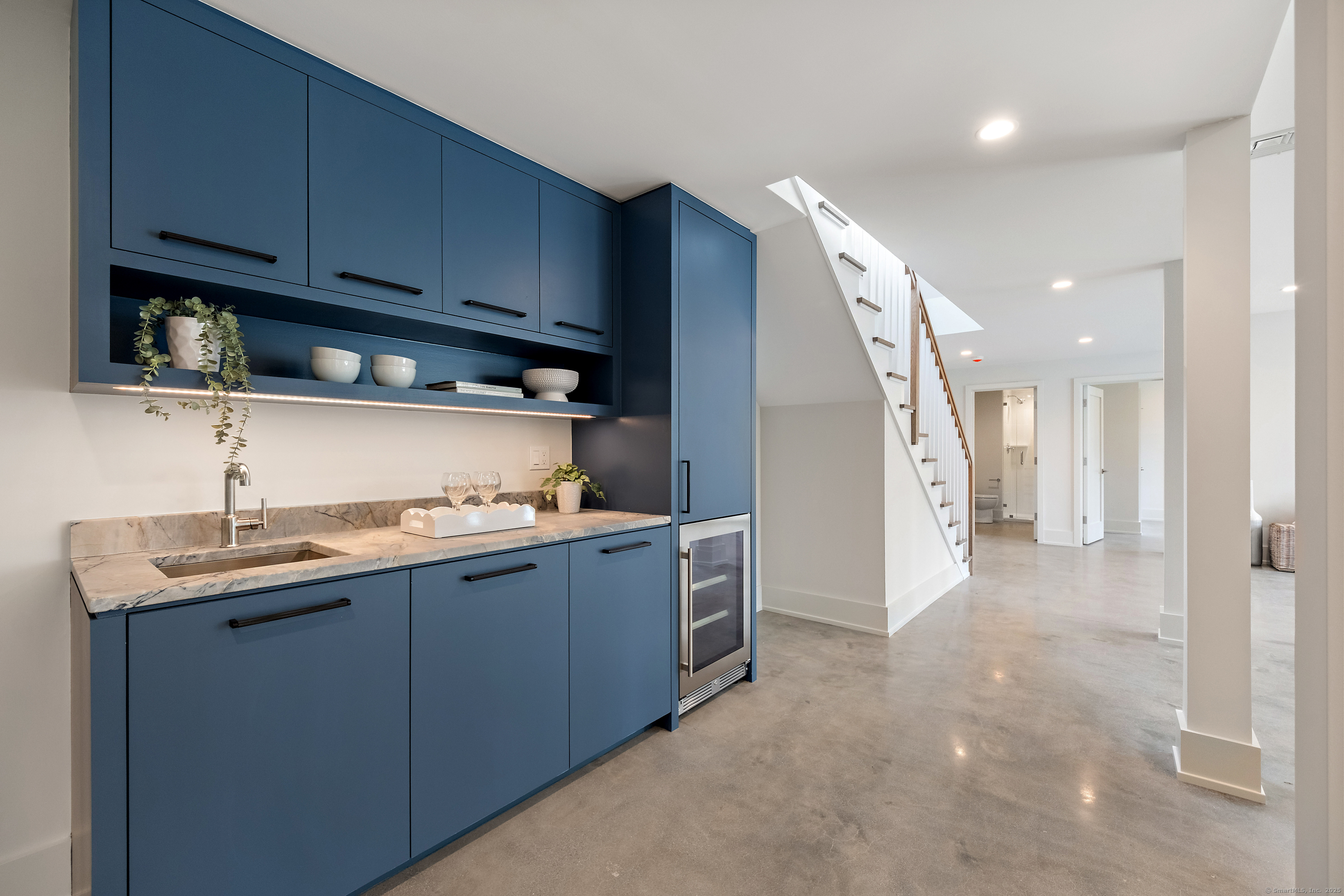 Built-Ins, Wet Bar, Sliders, Concrete Floor