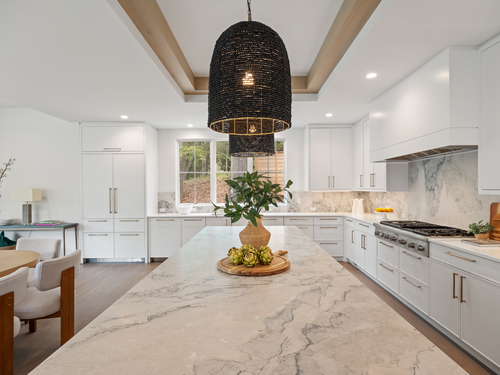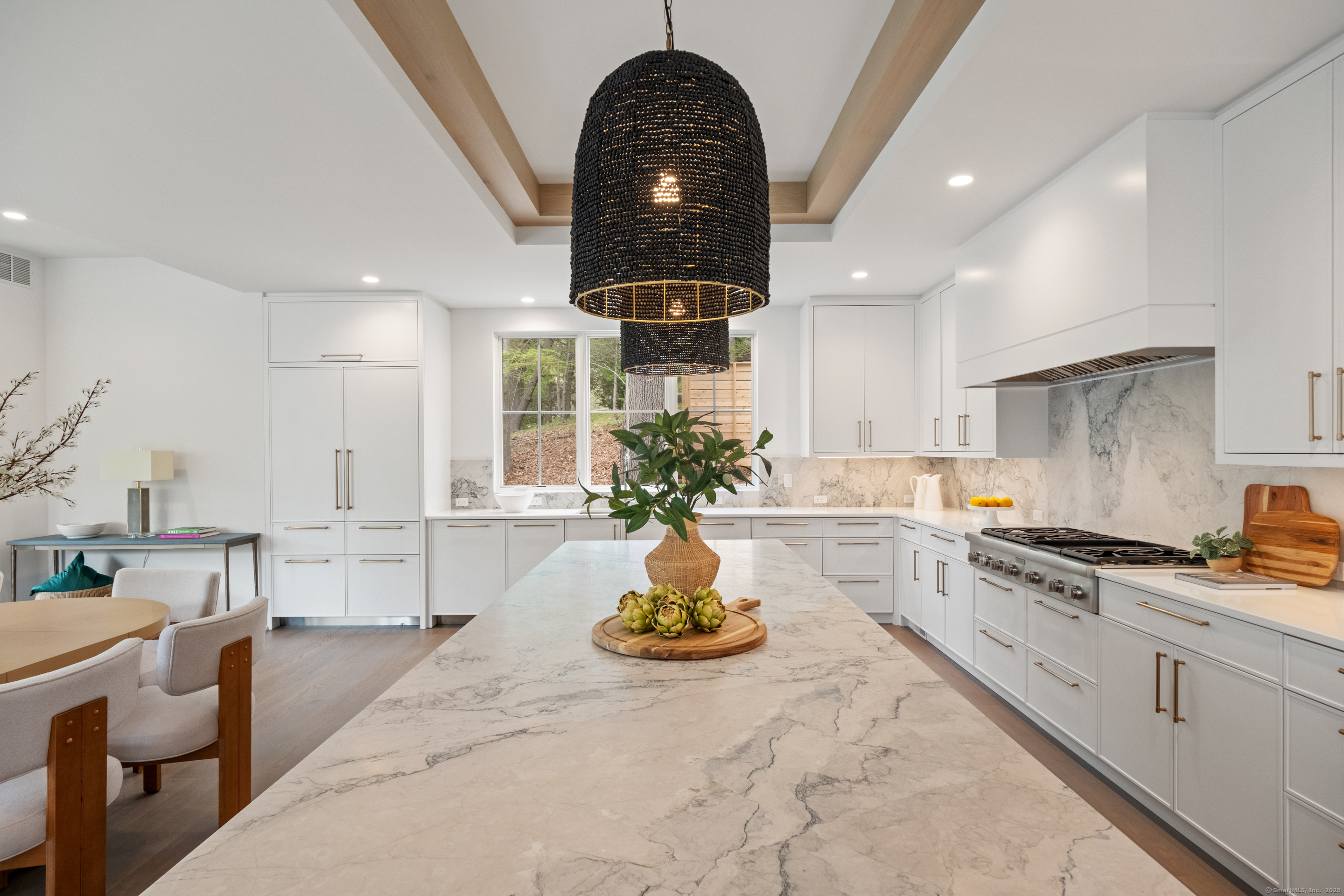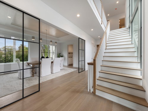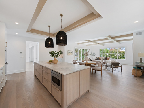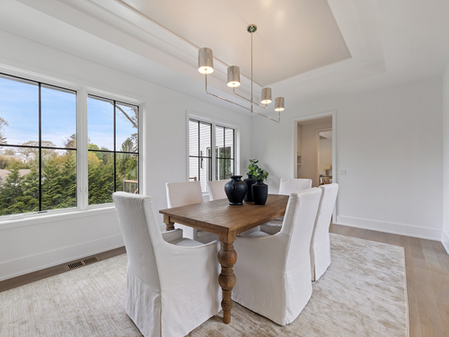 9 ft+ Ceilings, Dining Area, Island, Hardwood Floor