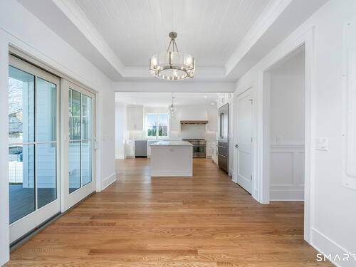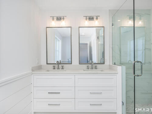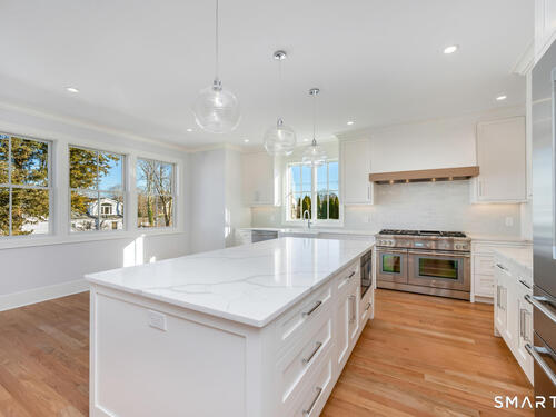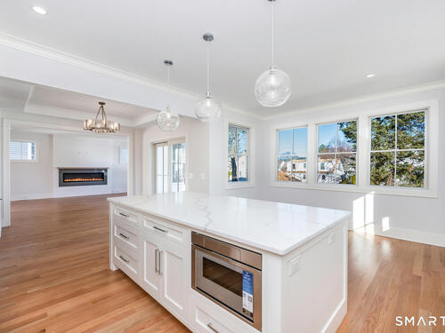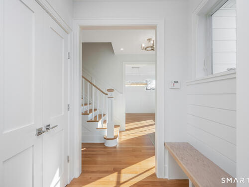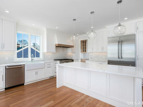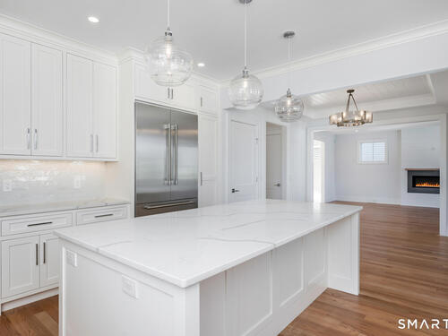 The house that dreams are made of-nestled in a walkable community near beach, quaint town center and train. Brand-new construction recently completed, offers a seamless blend of understated elegance & coastal vibe. Fabulous 1st floor open floor plan features 9' ceilings and all generous size rooms: an inviting foyer, private mudroom, gourmet kitchen with 8' Quartz Island for entertaining. Top of the line Thermador appliances: 48" Gas 6 burner dual fuel convection range, 7' French door refrigerator, French Allia farmsink, dining area. Modern day "Keeping Room" adjoins the kitchen for cozy gatherings w/ Sliders to a covered deck for BBQ, generous Family room w/gas fireplace, formal living room, formal dining room w/panel molding. A walk through butlers pantry with wet bar and wine cooler, huge pantry and powder room complete the first floor. Custom shaker style cabinetry, exquisite moldings including ship lap and panel moldings throughout. Upstairs you'll find 4 ensuite bedrooms including a stunning Primary suite, impresses with vaulted ceiling and dreamy 11' x 12' walk-in closet. Spa-like luxurious primary bath has radiant heat floors, Rohl fixtures, pedestal soaking tub, frameless glass shower. 3rd floor has a 5th bedroom, full bathroom and extra playroom. Every closet is thoughtfully outfitted. Garage level has a 2nd mudroom, parking for 3 cars with Loggia area and ample storage. Experience your private oasis-designed for comfort, entertaining and luxury.