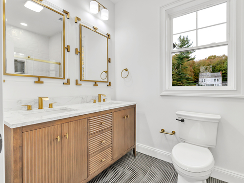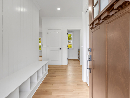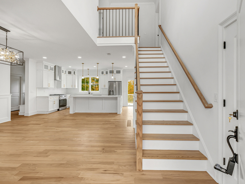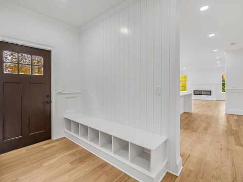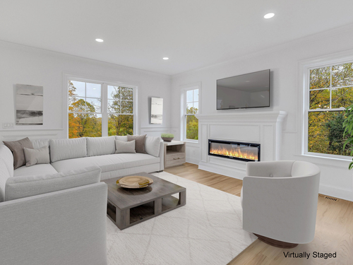 Welcome to this beautifully crafted 4 bed, 4.5 bath farmhouse colonial nestled on a serene 1.5-acre lot in the heart of Monroe. Offering over 3,800 sqft (including finished lower level) of thoughtfully designed living space, this home blends contemporary elegance with classic charm. Step inside to find a bright, open-concept layout featuring hardwood floors throughout. The main level boasts a spacious dining room and a high-end kitchen with stainless steel appliances, center island, tile backsplash and ample cabinetry. The stunning living room, highlighted by a cozy gas fireplace, flows seamlessly to an oversized Trex deck overlooking the private, wooded backyard. A dedicated home office, stylish powder room, pantry, and mudroom with custom built-ins add to the home's functionality. Upstairs, the luxurious primary suite features tray ceilings, dual walk-in closets, and a spa-like bath with double vanities, a soaking tub, and a tiled shower. 3 additional bedrooms include a private ensuite with full bath and walk-in closet, plus a beautifully appointed hallway bath and a convenient 2nd fl laundry room. The finished walkout basement offers an additional 1,200 sqft of flex space with a full bath perfect for a rec room, gym, and playroom or potential in-law set up. Additional highlights; propane heating, central air, public water, and underground utilities. Perfectly located near local amenities, parks, and schools, this home offers the best of comfort, style, and convenience.