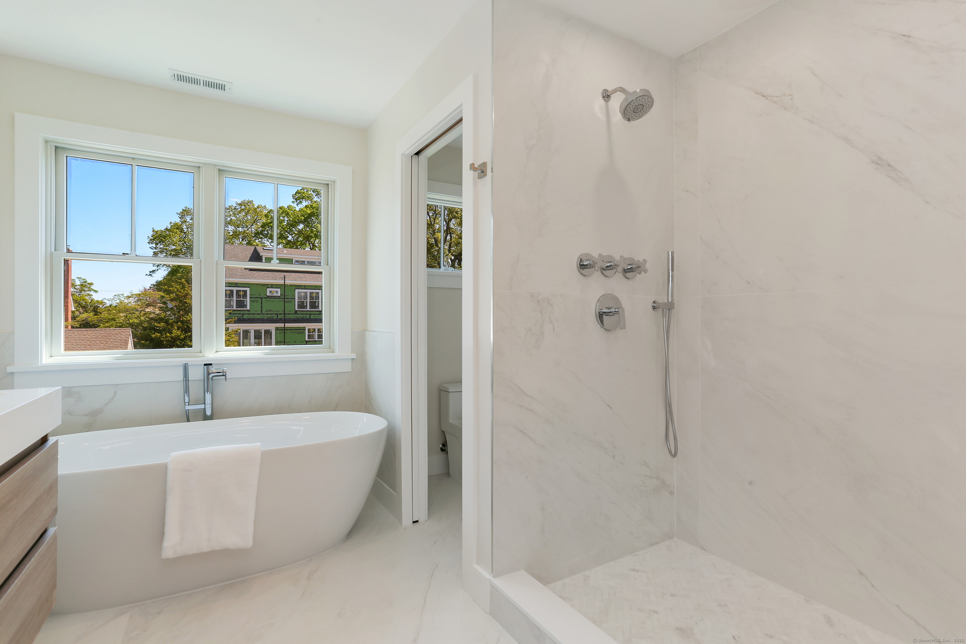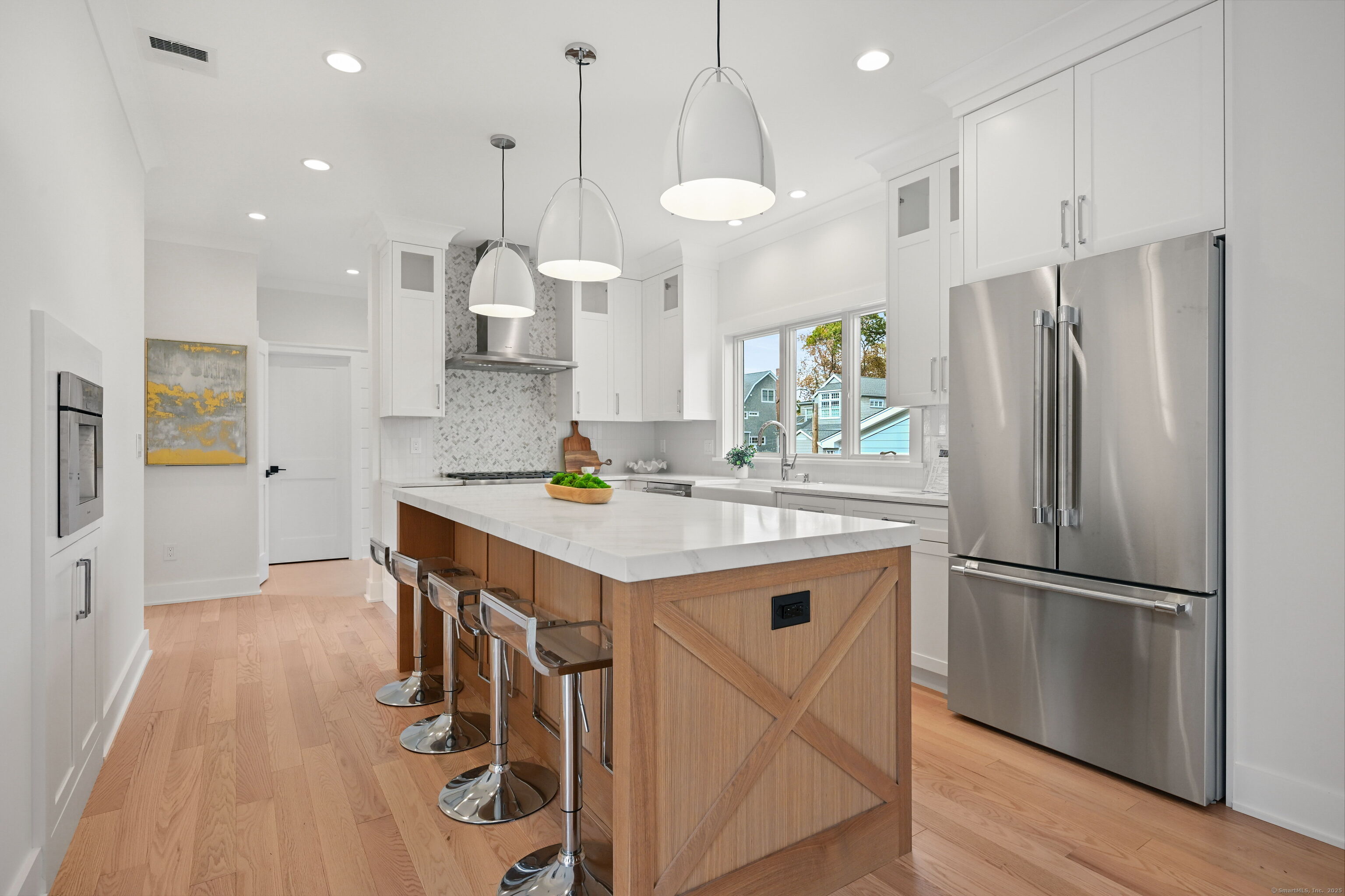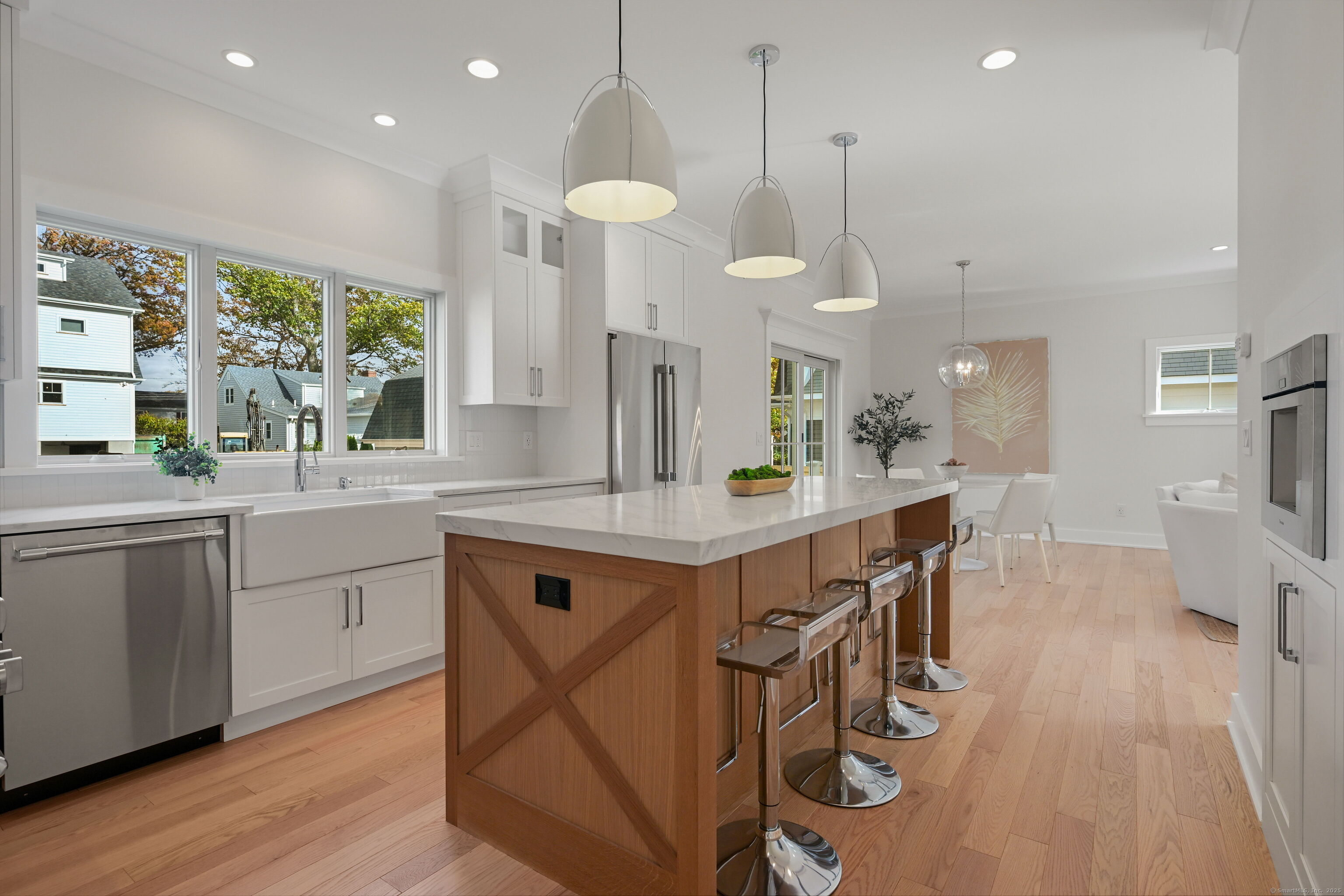 Stunning NEW construction the desirable Fairfield Beach neighborhood. This gorgeous home is crafted by premier 43 year Fairfield County builder. Premium materials, thoughtful design, and masterful workmanship are showcased throughout. Step inside to find a clean lined, open living space with 9' ceilings. The inviting living room, featuring a captivating 54" cool wall gas fireplace, seamlessly flows into the custom gourmet kitchen. This culinary haven is equipped with Thermador appliances, a center island with 2" beveled quartz counters, espresso machine, and walk-in pantry ensuring both style and functionality. The dining area, with French doors, offers a picturesque view of the expansive backyard and stone patio. The main floor flex room provides versatile options, including office, family room, formal dining, or an additional bedroom. Upstairs, the spacious primary bedroom boasts a lux bathroom and walk-in closet. Two more bedrooms and a laundry room complete the 2nd level. The 3rd level offers the 4th bedroom and bath along with a flex bonus room and lots of storage. Wonderful location, easy walking distance to vibrant Fairfield town center, train, beach & tennis. Waterfront community 50 miles from NYC offering coastal charm, historic preservation, wonderful dining, shopping, arts and 2 nationally ranked Universities.
