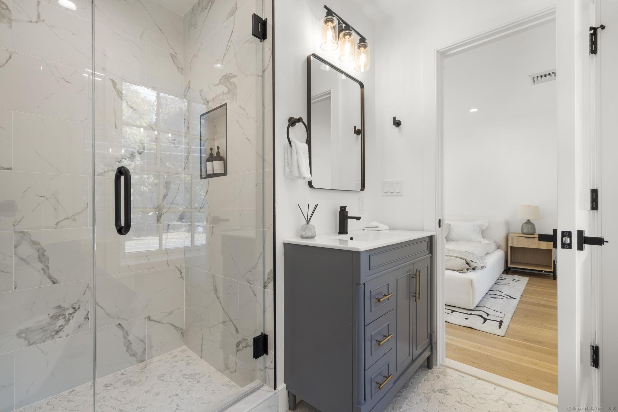 The build is complete - welcome to 18 Sound Beach Avenue! This exceptional NEW 4-bedroom, 3.5-bathroom home has been fully reconfigured and thoughtfully designed with modern elegance and functionality in mind. The exterior showcases timeless white James Hardie siding, sleek black windows, and clean architectural lines that create striking curb appeal. Step inside to a bright, open-concept main level featuring white oak hardwood floors throughout. The stunning modern kitchen flows seamlessly into the dining and living areas, highlighted by a unique serving window and large French doors that open to an expansive rear deck - perfect for effortless indoor-outdoor entertaining. Upstairs, you'll find a serene primary suite complete with a luxurious en-suite bath. Two additional bedrooms and another full bath are on the upper level. The finished lower level offers a private fourth bedroom with an en-suite bath, laundry hookups, and a spacious additional room ideal for a home office, playroom, or even a full in-law suite. Enjoy Connecticut's weather in the beautifully landscaped backyard, overlooked by an oversized deck designed for relaxing or hosting gatherings. Located in highly sought-after Old Greenwich, this home is just moments from top-rated schools, scenic beaches, parks, and the vibrant local shops and restaurants the community is known for. Don't miss this rare opportunity to own a luxurious, turnkey home in one of Connecticut's most desirable neighborhoods.