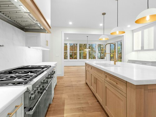 Nearly Complete - A Modern Colonial Haven in Darien. Tucked away on a private, level 1.2 acres at the end of a coveted Darien cul-de-sac, this modern colonial is where timeless design meets contemporary comfort. Step through the welcoming foyer - with a walk-in coat room and powder room - and into a spacious living room, perfect for gatherings that stretch into the evening. The custom kitchen is a true centerpiece, boasting a grand stone island, Thermador appliances, an oversized range, and abundant cabinetry. A sunlit breakfast room opens effortlessly to the great room, where a gas fireplace and beamed ceiling create warmth and character. A first-floor office with full bath offers flexibility for work, guests, or quiet retreat. Everyday ease continues with a mudroom and an attached two-car garage. Upstairs, the primary suite is a serene escape with vaulted ceilings, a walk-in closet, and a private balcony - the perfect spot to savor your morning coffee. Three additional en-suite bedrooms each feature custom walk-in closets, blending function with elegance. The partially finished third floor and lower level invite endless possibilities - a home gym, playroom, or creative space waiting to be defined. Come escape to greener pastures at this Darien gem. *Please do not walk the property or enter the home without an accompanied appointment.
