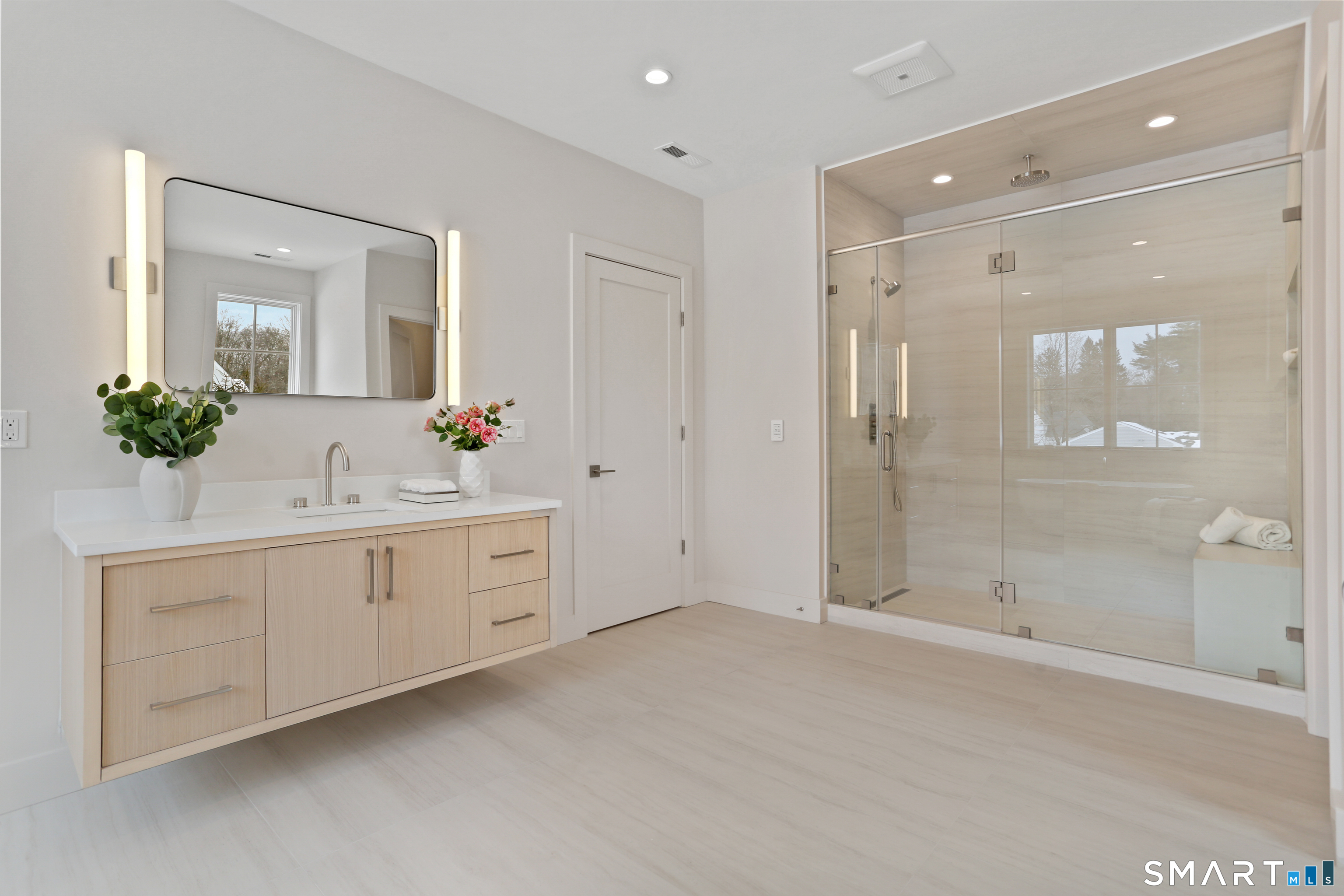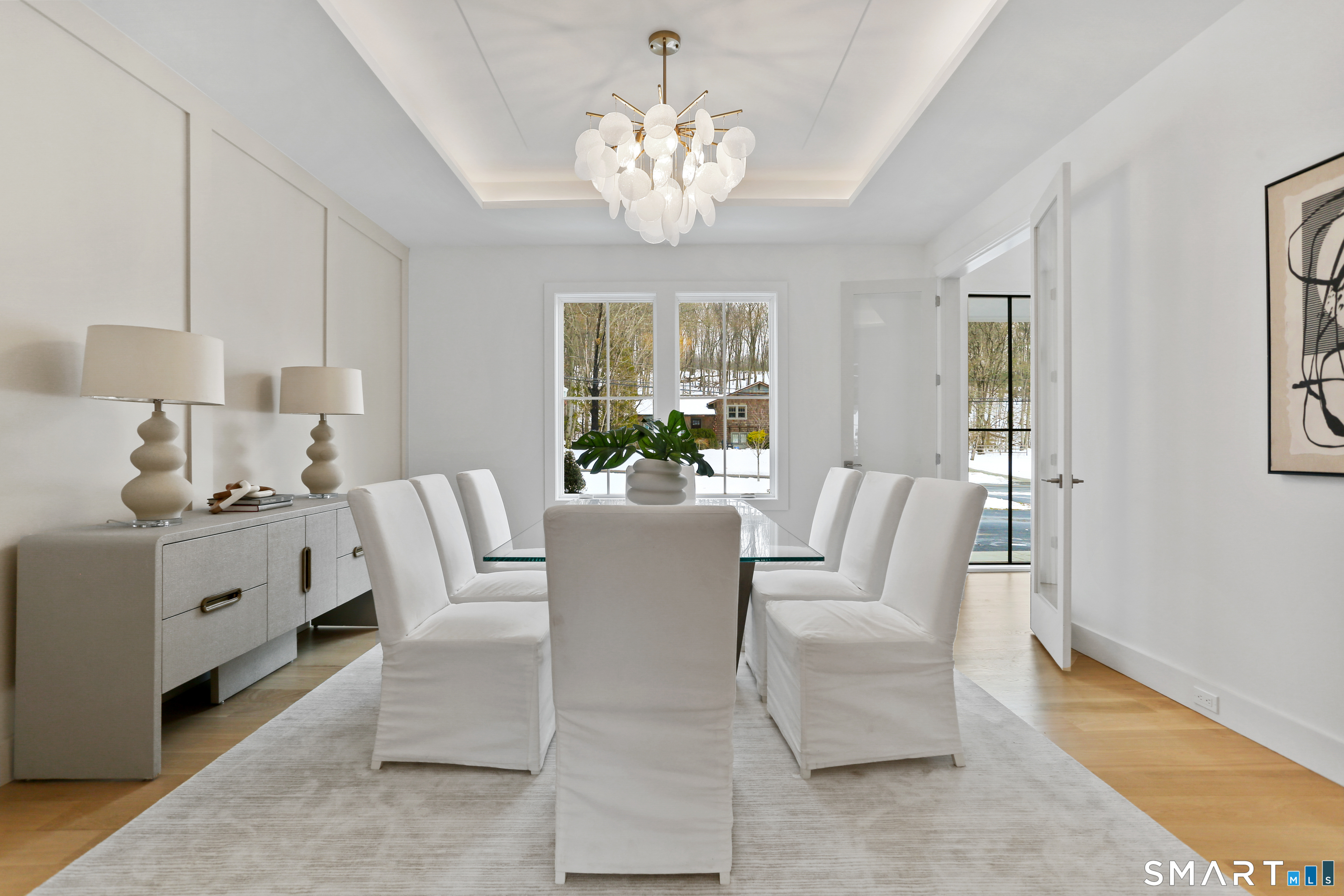 This striking architectural design meets refined luxury in a meticulously crafted 9,700+/- sq ft, 6-bedroom, 6 full, & 3 half bath new residence. Showcasing the collaborative excellence of AR Luxury Homes w/ interior design by Mary Beth Woods & architectural vision by Donald William Fairbanks, this exceptional property represents the pinnacle of modern sophistication w/ premium finishes, contemporary design elements & sun-drenched living spaces. Soaring 10-foot ceilings on the first floor, expansive floor to ceiling windows, open flexible floorplan, & grand-scale rooms set the tone for luxury. The chef's kitchen that flows seamlessly into the great room is the heart of the home, featuring professional-grade appliances, custom cabinetry, & refined finishes. Upstairs, a decadent primary retreat offers a relaxing seating area & serene spa-like bathroom, w/ 4 additional spacious bedrooms, each w/ en-suite baths. Finished on 4 levels, including a walkout lower level w/ additional bedroom, full bathroom, exercise room, & expansive rec space. Designed for indoor & outdoor entertaining, the beautiful level 1 acre property features areas to relax & play w/ a heated 20x 40 swimming pool w/ automatic cover. The home has space for an elevator & includes an automatic generator. Located in a desirable Coleytown neighborhood, 21 Warnock offers proximity to Westport's top-rated schools, vibrant downtown area, and stunning beaches.