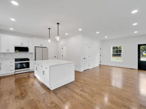Step into modern elegance with this brand new 4-bedroom, 2.5 bath Colonial that perfectly blends timeless design with today's most desired finishes. From the moment you enter, you'll be greeted by an open floor plan filled with natural light, 9' ceilings, and wide plank hardwood floors in a beautiful provincial stain that flow throughout the home. The heart of the home is a stunning white kitchen featuring soft-close cabinetry, quartz countertops, a large center island, and high-end finishes that make it as functional as it is stylish. The kitchen opens seamlessly to the dining and living areas, where a fireplace with an eye-catching accent wall creates a warm and inviting focal point. A first-floor office or den offers flexible space for work or play, while the second level hosts four spacious bedrooms including a serene primary suite with a luxurious en-suite bath. Enjoy outdoor living on the stone patio overlooking a flat, private backyard that is perfect for entertaining or relaxing. Additional highlights include a two-car garage with extra storage, a huge basement with high ceilings ready to be finished, and quality craftsmanship throughout. Light, bright, and thoughtfully designed, this new construction Colonial offers the perfect combination of comfort and style in an amazing North End location. Close proximity to major highways, schools, stores, shops and restaurants. Don't miss this wonderful opportunity to make this new construction yours!