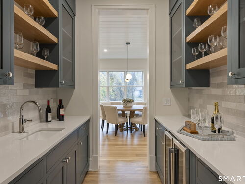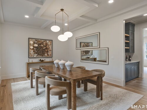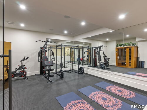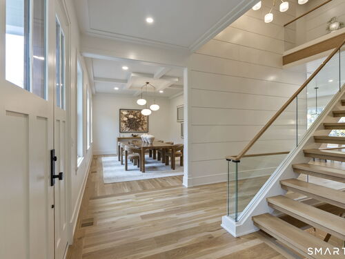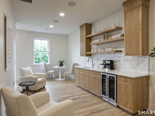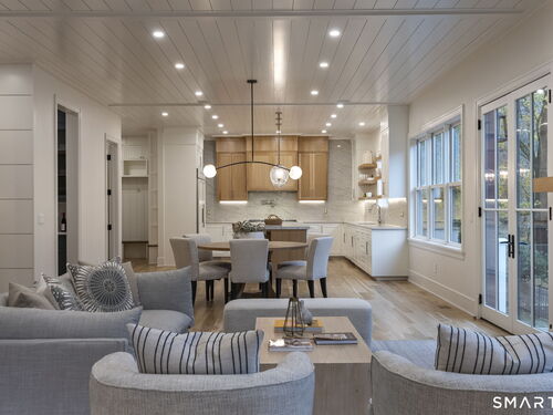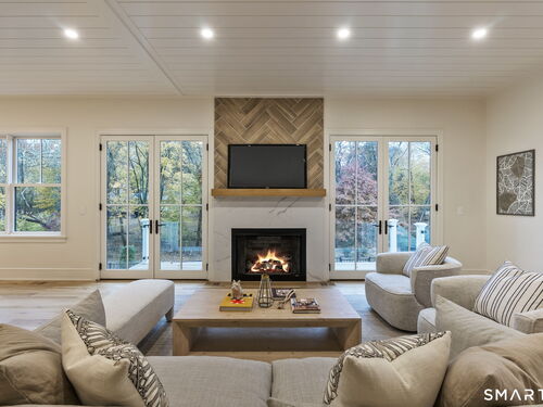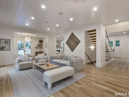 Now fully complete, this newly built residence in Greens Farms offers a rare blend of architectural presence, modern comfort, and understated luxury. Crafted by a seasoned Westport builder with a fresh perspective, the home delivers a level of finish and warmth that distinguishes it from typical new construction. The outdoor experience is now fully realized with a custom gunite pool and over $150,000 of additional landscaping, creating a private, resort-style setting designed for everyday enjoyment and entertaining. Inside, a chef's kitchen anchors the main level with bespoke cabinetry, professional appliances, and a generous island that naturally brings people together. Open dining and family spaces flow seamlessly, complemented by a private library and an oversized three-car garage designed for the car enthusiast. The primary suite is a serene retreat with sitting area, spa-inspired bath, and custom dressing room, joined by four additional en-suite bedrooms and second-floor laundry. The third floor offers a full movie theater, office, and game area, while the finished lower level features a climate-controlled wine room, sauna, gym, and secondary prep kitchen with full-size refrigerator and freezer ideal for hosting or extended stays. Bluetooth audio, designer lighting, integrated TVs, and three fireplaces enhance the home throughout. Minutes to train to NYC, Compo Beach, Westport's best amenities, this move-in-ready home represents exceptional value at this price.