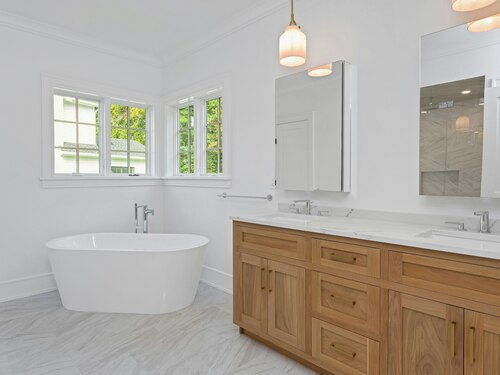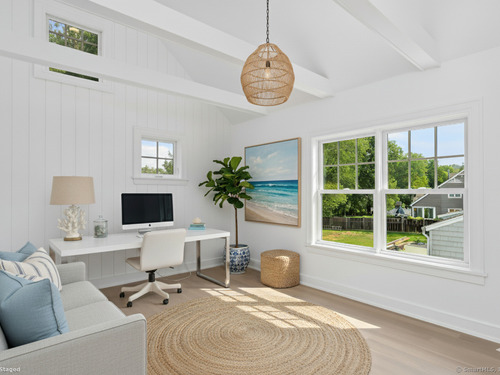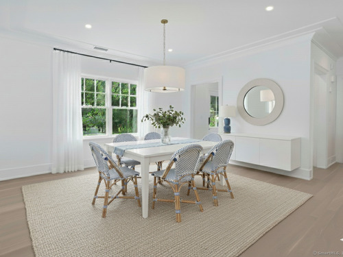 Spectacular, luxury new construction nestled in one of Darien's most lovely neighborhoods. Thoughtfully designed and impeccably crafted, this home combines timeless sophistication with modern comforts. A dramatic double-height paneled foyer welcomes you inside, leading to a soaring vaulted ceilinged living room, which is anchored by a refined shiplapped gas fireplace. The space opens seamlessly to a spacious stone patio and level yard, creating the perfect setting for elegant indoor-outdoor entertaining. The gourmet kitchen is a true centerpiece, featuring Thermador appliances, exquisite quartz countertops, custom cabinetry, and a sunlit eating area. The serene primary suite offers a generous walk-in closet and a spa-inspired bath complete with a soaking tub, glass-enclosed shower, and dual-sink vanity. ADDITIONALLY, there is an option to use the second floor suite as your primary which includes its own private balcony. The 3rd floor has an expansive extra room ready to make your own as a gym or playroom. Convenient mudroom off the 2-car garage features a special touch for EV owners: 220V service. Attention to detail and fine millwork are showcased in every corner. Enjoy neighborhood block parties and walkability to the Middlesex Club and the Holmes school! This residence presents an extraordinary opportunity to own a beautifully conceived new home in a truly coveted setting!