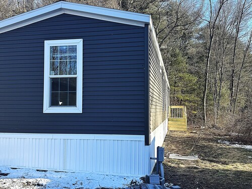 BRAND NEW UNIT! LAST unit on the right rear of the park. One of the BEST spots in Park! Located in the well maintained Newtown Village in a professionally managed Park. Beautiful 2-bedroom, 2-full Baths, Kitchen and Living room have an open floor plan and LR has a technology wall for your convenience and built-in bookshelves. Primary bedroom has a full bath with step-in shower stall with glass doors. 2nd full bath is in the hallway close to the 2nd bedroom, this bath has a tub/shower set-up. Actual SF of unit is 880sf (town records reflect previous unit on this lot)