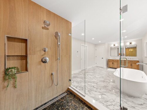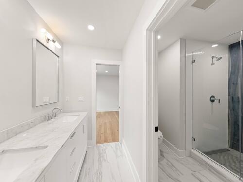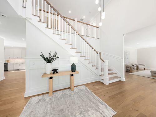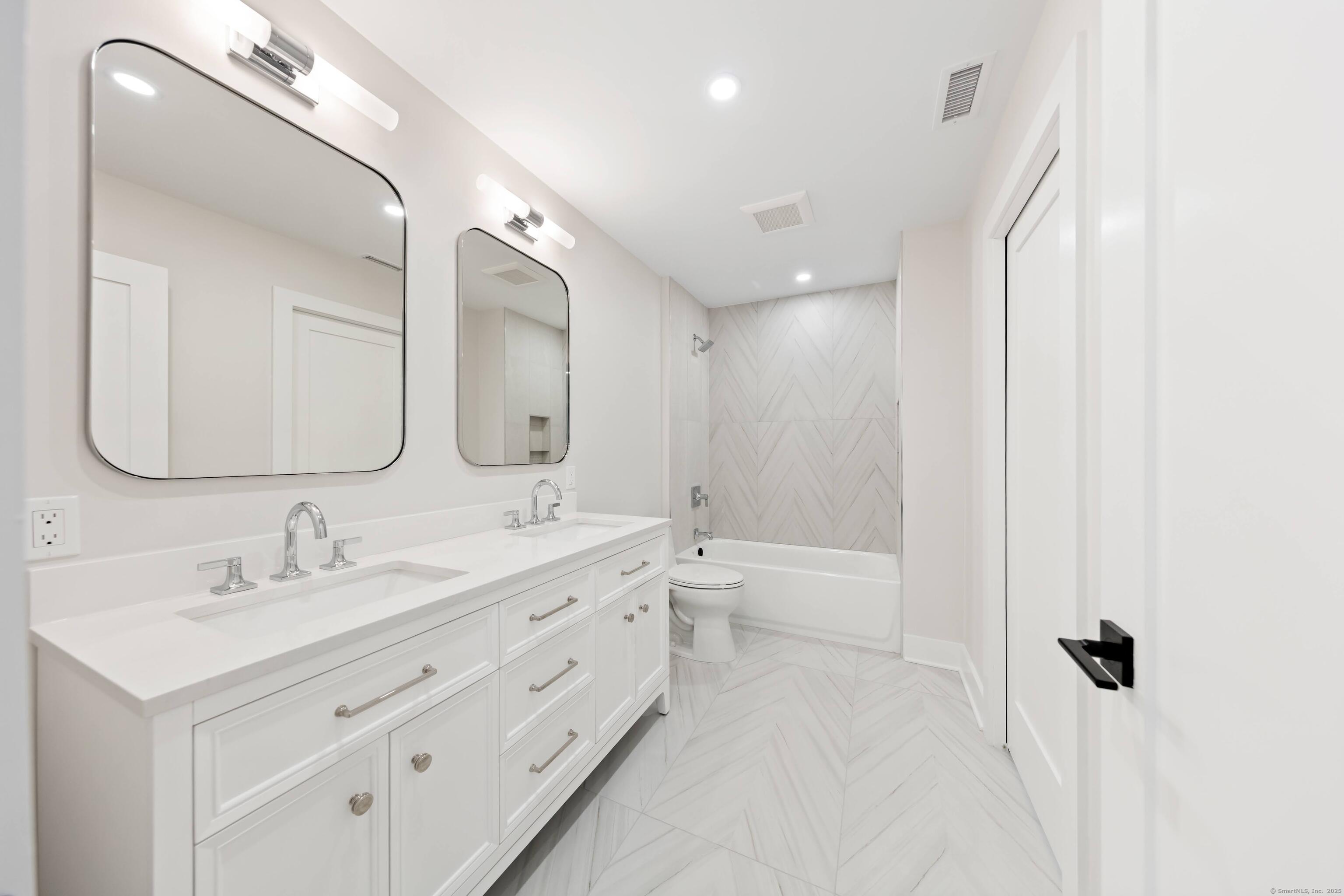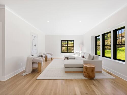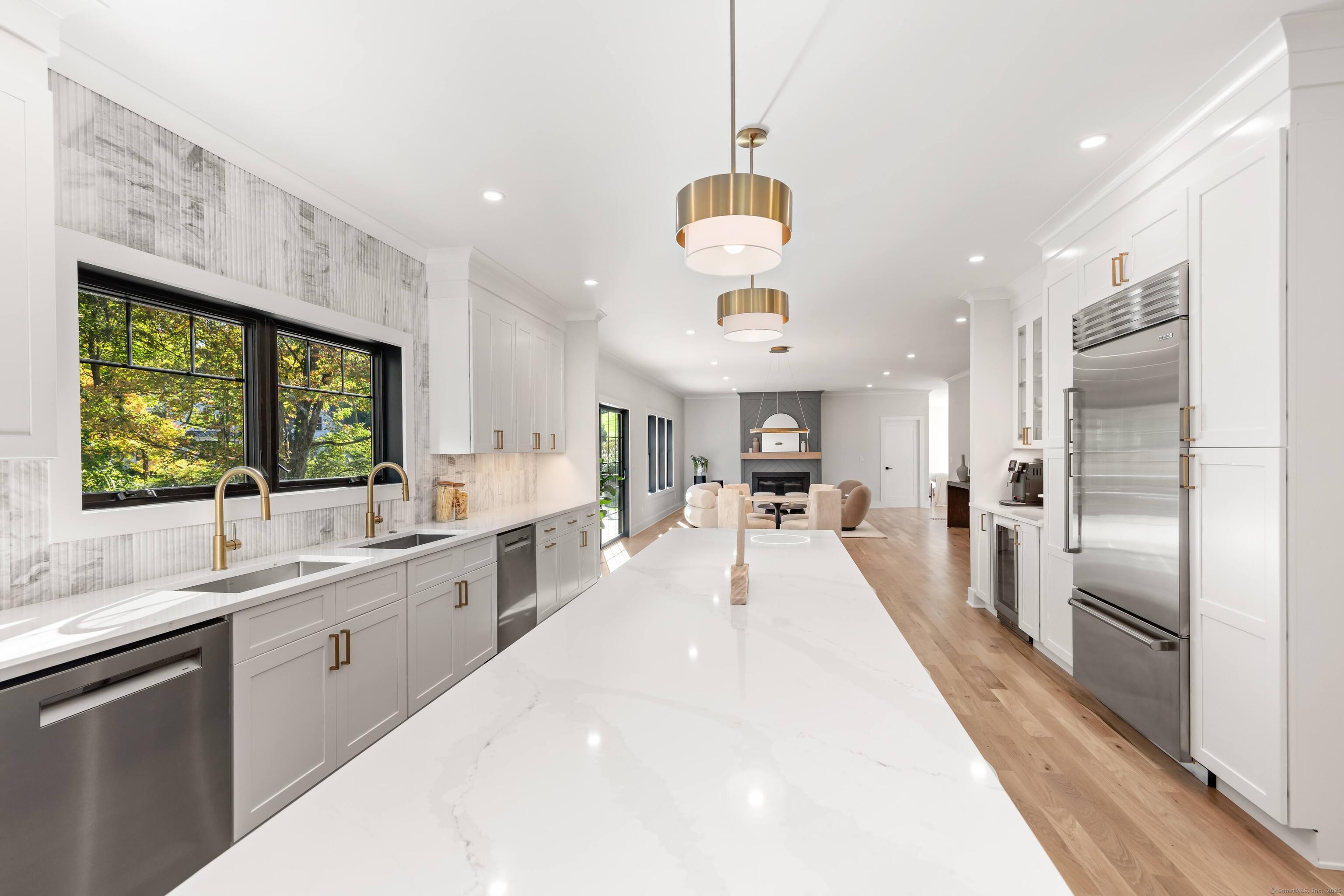 31 Gray Farms Rd nails the wish list for today's buyer: new construction, high-end finishes, space to entertain, and a location that can't be beat. Over an acre in Stamford's Newfield area, the home is surrounded by other new builds and minutes to trains MetroNorth (NYC)/Amtrak, I-95, the Merritt Parkway, JCC, Sterling Farms, and houses of worship. Inside, a bright two-story foyer opens to an oversized living room, formal dining that can expand for large gatherings, and a showpiece kitchen with a huge island, breakfast room, Sub-Zero/Wolf appliances, walk-in pantry + butler's pantry. The kitchen overlooks a spacious family room with a gas fireplace and direct access to the rear deck, making this entire main floor perfect for everyday living or entertaining. A first-floor en suite bedroom and recessed powder room offer flexibility for guests or extended family. Upstairs, the vaulted primary suite includes two walk-in closets, a sitting area, and a spa bath with soaking tub, heated floors, and oversized shower. Four more bedrooms, three baths, laundry room w/slop sink, wide landing and MANY closets complete the upstairs. Finished walk-out lower level has high ceilings, rec room, gym/media space, bedroom, full bath, and mudroom to the oversized epoxy garage. Backyard has flat multi-tiered areas blending perfectly into that New England vibe. Modern systems throughout make this home move-in ready and built for how people actually live.