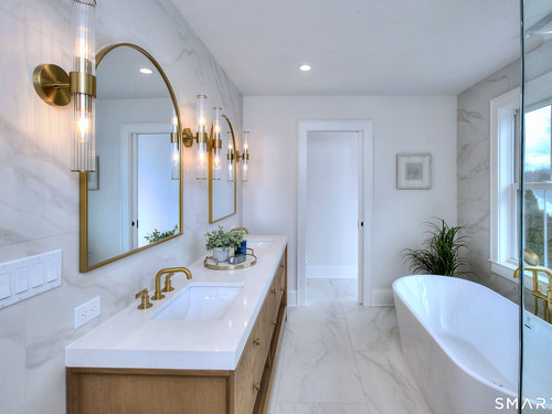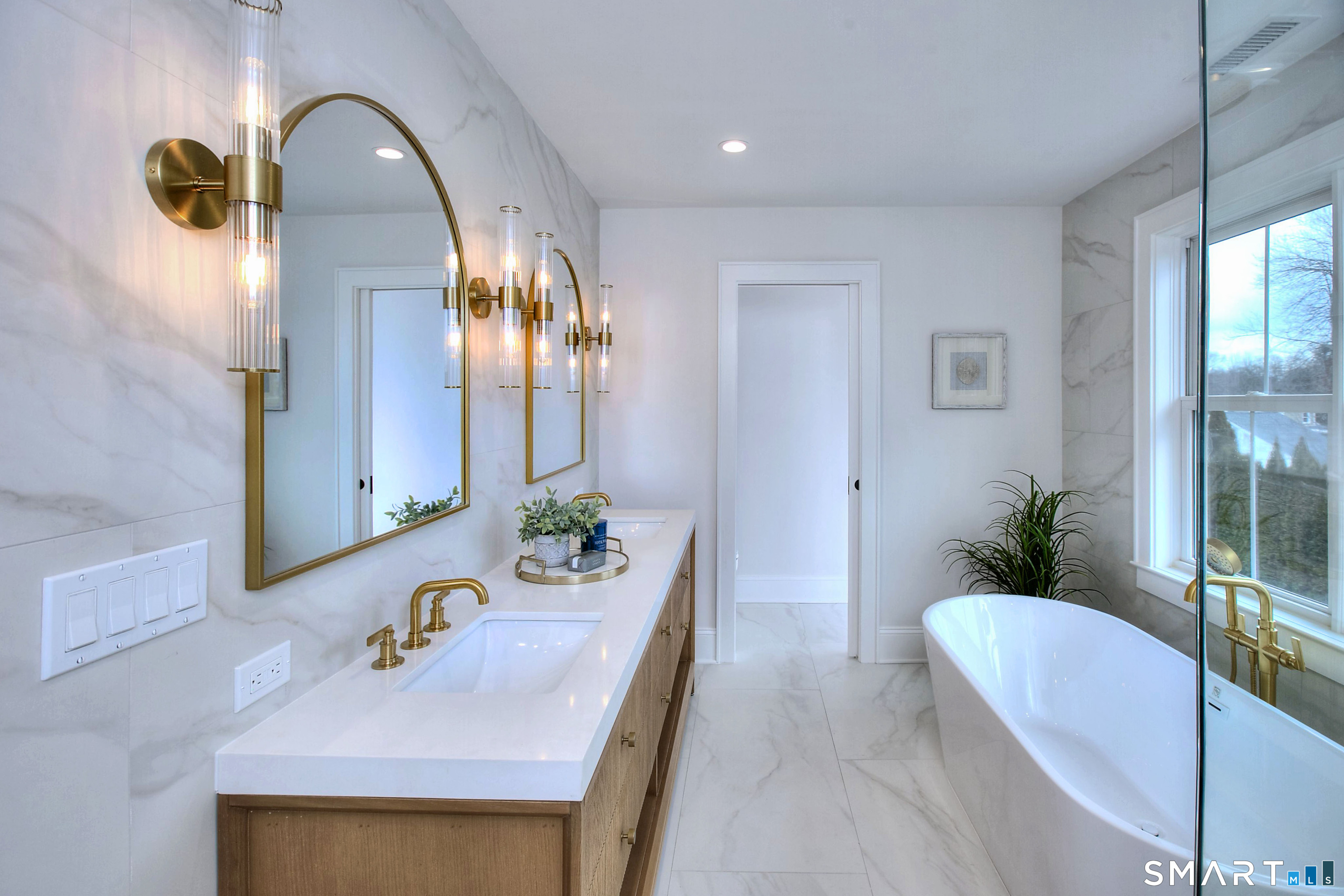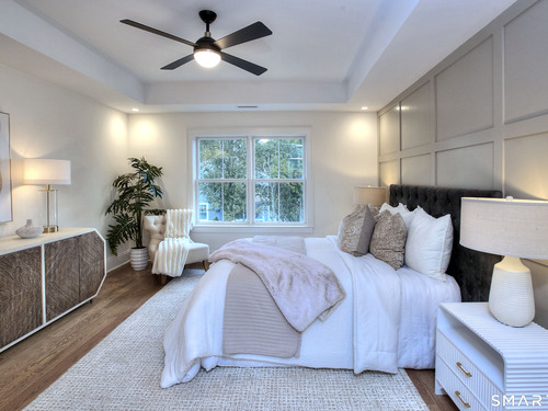Brand new construction (HOME WARRANTY) in highly desired Fairfield University area. Move in tomorrow. Beautiful open floor plan includes large kitchen with high end appliances, center island, 36" gas range with hood, wine chiller, microwave drawer, 9 foot ceiling, hardwood floors. The bright airy family room with gas fireplace and a double slider walk out to large deck that overlooks grassy level yard. (The perfect spot for a barbeque). Private first floor home office with accent wall. Storage cubbies for all your sports equipment in mudroom with easy access to 2 car attached garage. Upstairs the Primary bedroom suite with trey ceiling, accent wall, large walk in closet, and ensuite spa like bath with soaking tub double sink and water closet. All bedrooms have hardwood floors and direct access to a full bathroom. The shared bathroom has a large tub and double sinks. Finished lower level offers great flexibility Large recreation room/exercise room or 5th bedroom with full bath. Great location close to Merritt Parkway, I95 train to New York, shopping, parks and Fairfield's restaurant district.