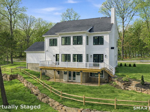 Brand-new construction at 511 Den Road offers refined modern living in a peaceful North Stamford setting on 1.09 private acres. This thoughtfully designed 4-bedroom, 3.5-bath home features an open-concept layout with hardwood floors, recessed lighting, and a striking living area centered around the fireplace, flowing seamlessly into a chef's kitchen with an oversized island, quartz countertops, custom cabinetry and a butler's pantry-ideal for effortless entertaining. Oversized Marvin windows flood the home with natural light and frame tranquil wooded views, while sliders open to a spacious deck overlooking the private backyard. The luxurious primary suite delivers a spa-like retreat with a soaking tub, double vanity, and elegant finishes. A large mudroom off the 2-car attached garage adds everyday functionality and includes an EV car charger, while a dedicated home office provides the perfect work-from-home setup. Built for comfort and efficiency, the home features spray foam insulation, Hardie board siding, central air, energy-efficient systems, and a walk-out lower level, offering the perfect balance of privacy, luxury, and convenience just minutes from nature preserves, dining, downtown Stamford, and major commuter routes.