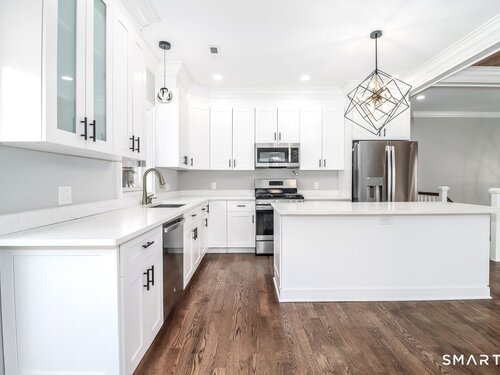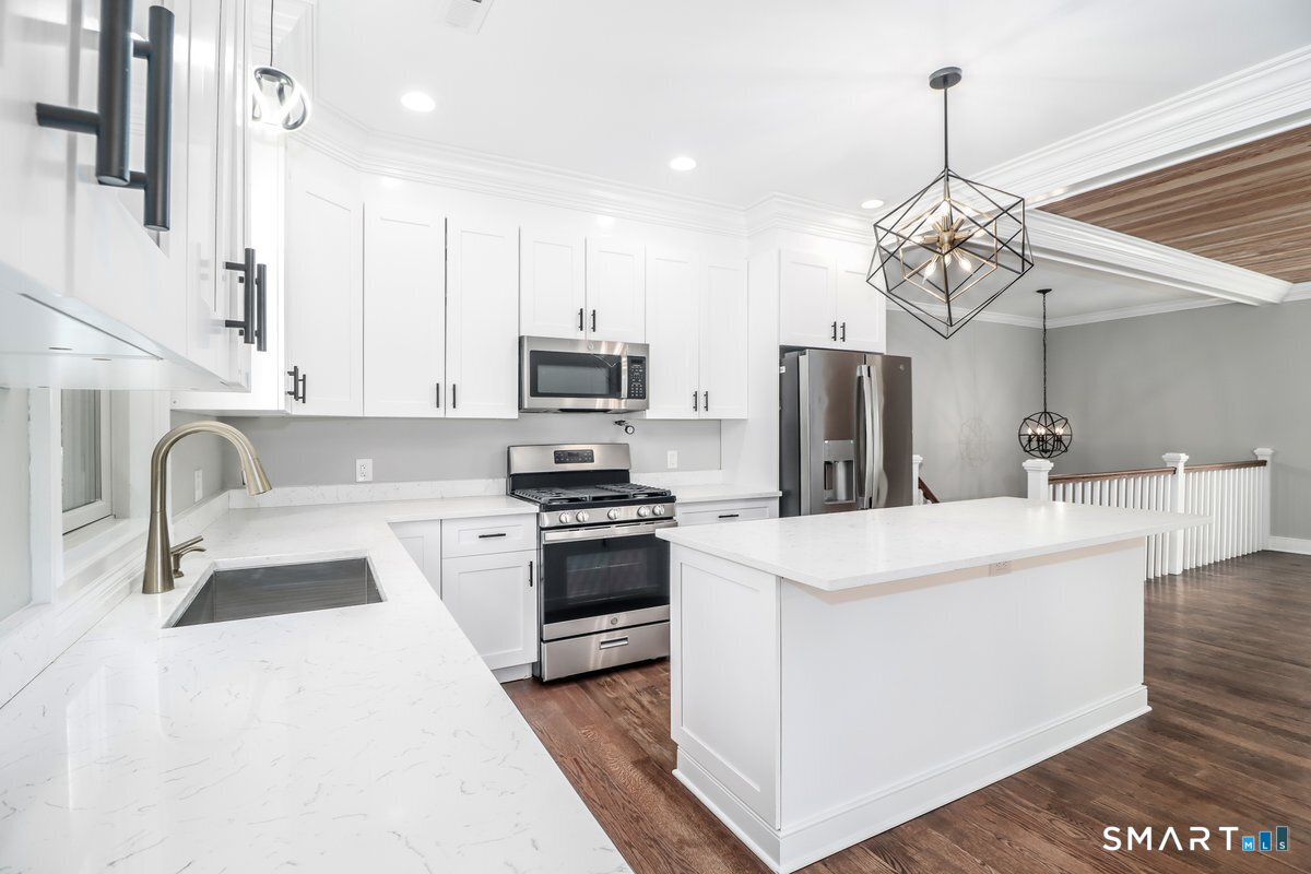 Breakfast Bar, Quartz Counters, Island, Hardwood Floor
