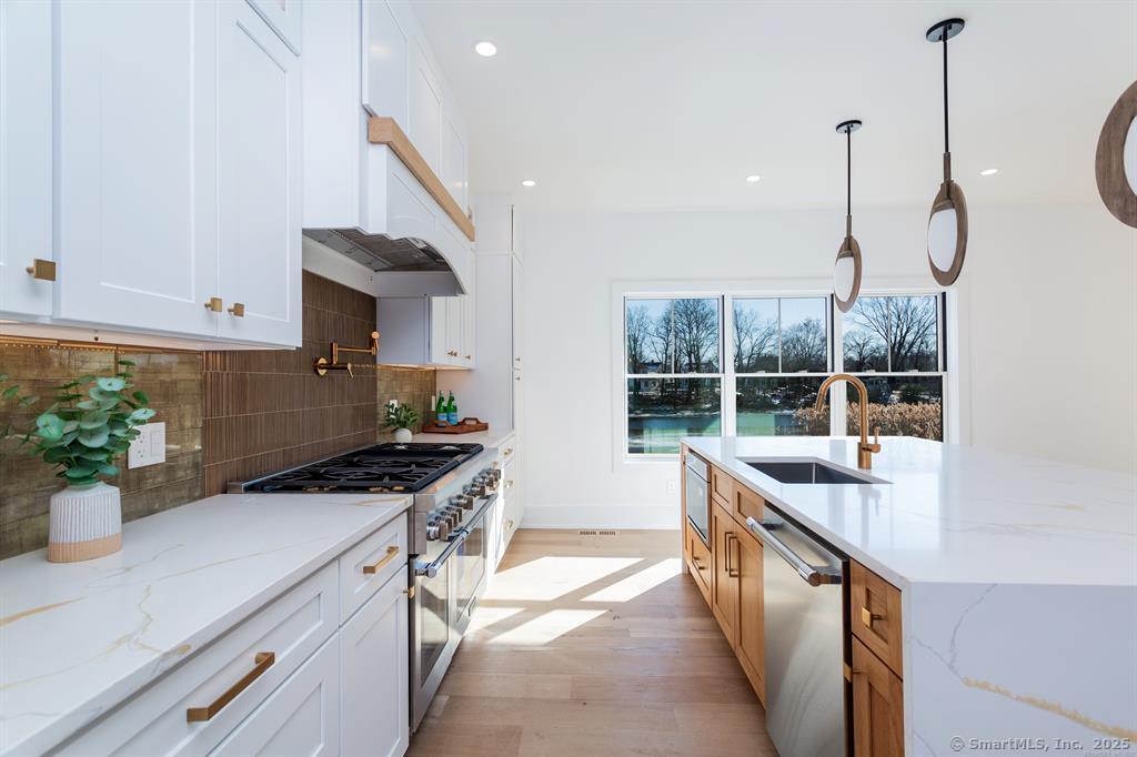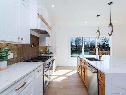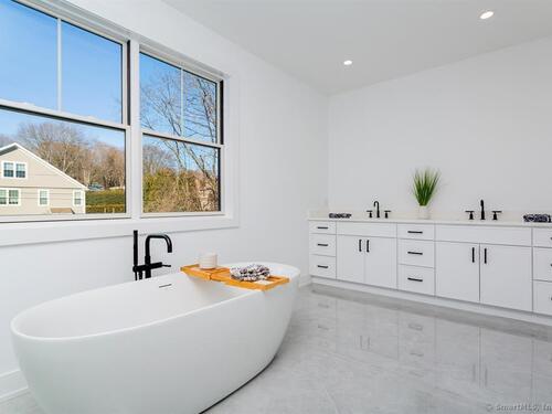 Nestled on a level lot at the end of a peaceful cul-de-sac, this exceptional 5-bedroom, 5-bathroom home offers three levels of thoughtfully designed luxury living. With high-end finishes throughout, this residence perfectly balances modern elegance with everyday comfort. Step inside to discover a first floor featuring a spacious bedroom/offcie and full bath ideal for guests or multigenerational living. The kitchen showcases custom cabinetry, professional-grade appliances, quartz countertops, and a large center island. Entertain effortlessly in the adjacent living area, complete with a sleek gas fireplace and a glass-enclosed, temperature-controlled wine room. On the second level you'll find four generously sized bedrooms, including two that share a Jack-and-Jill bathroom, a third with a private en-suite, and an incredible primary suite. The primary bedroom is the pinnacle of luxury, boasting an expansive walk-in closet and a spa-like bathroom featuring a soaking tub and designer finishes. The third level adds even more flexibility, offering a large bonus room perfect for a home office, gym, or media space, along with a fifth full bathroom. Enjoy the best of Fairfield living in a vibrant, walkable neighborhood just steps from the town center, upscale dining, boutique shopping, and lively nightlife. A short walk to the train station and easy access to major highways. Take advantage of nearby beaches and award winning Fairfield shools- a true bend of lifestyle and location!