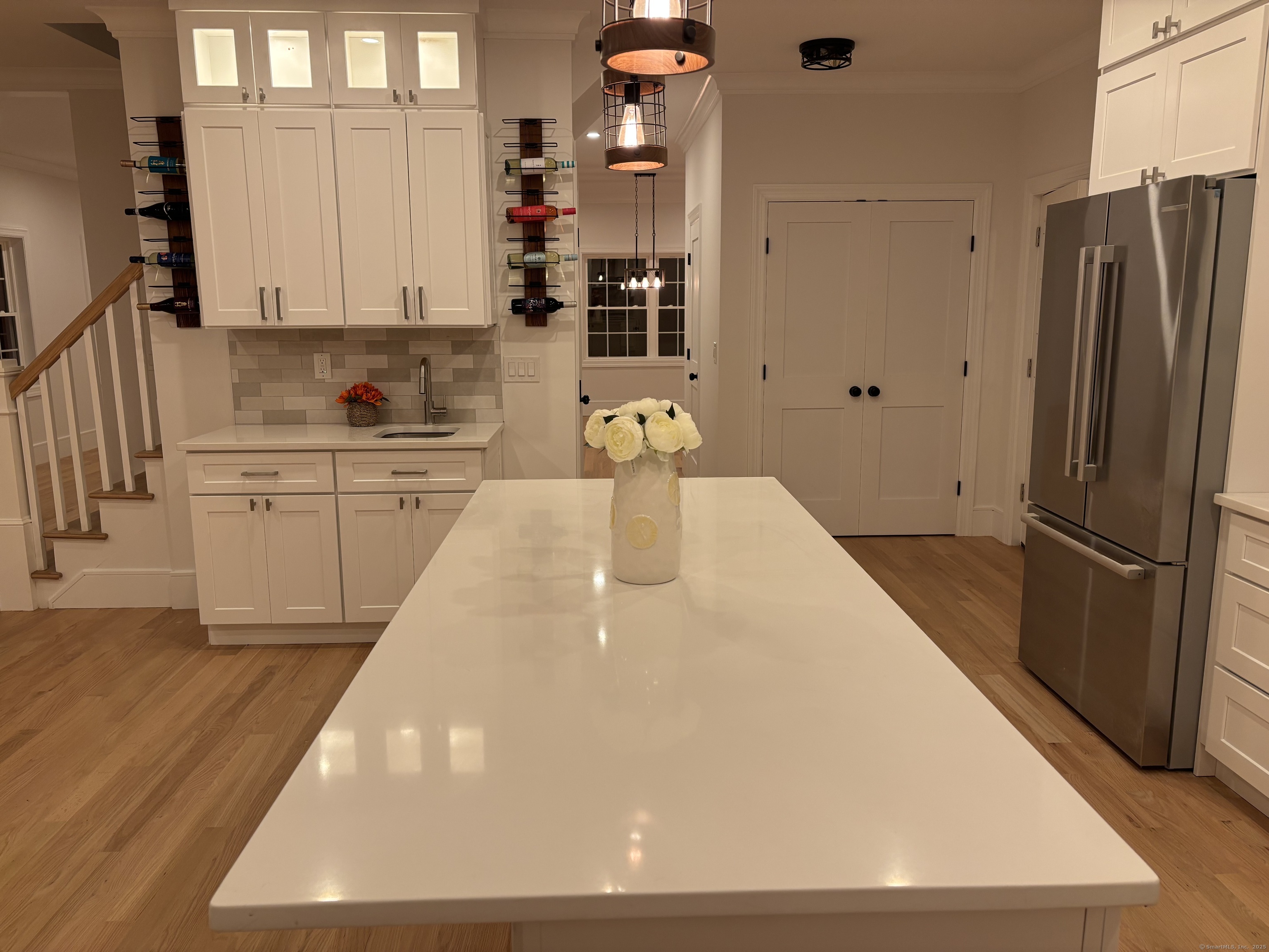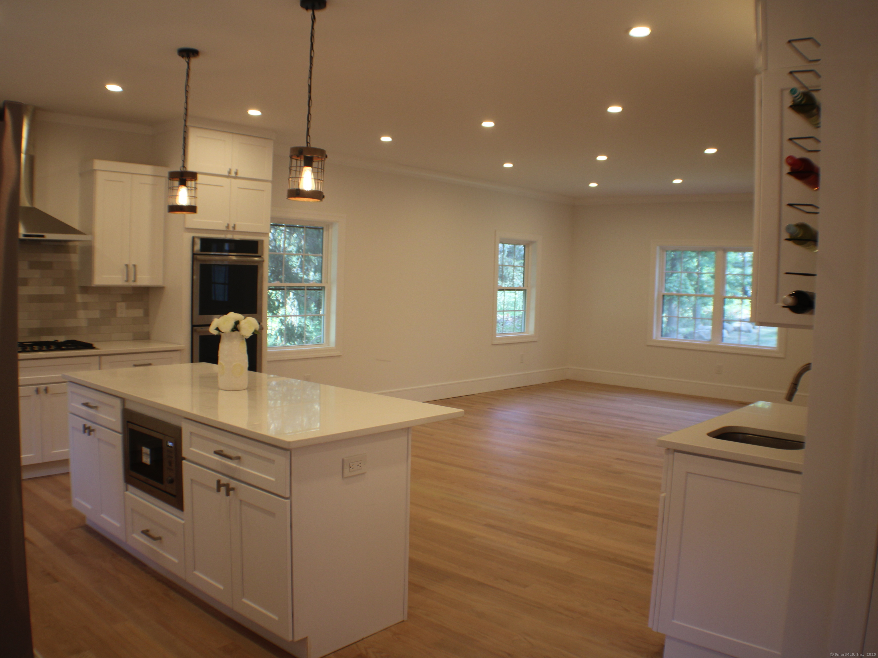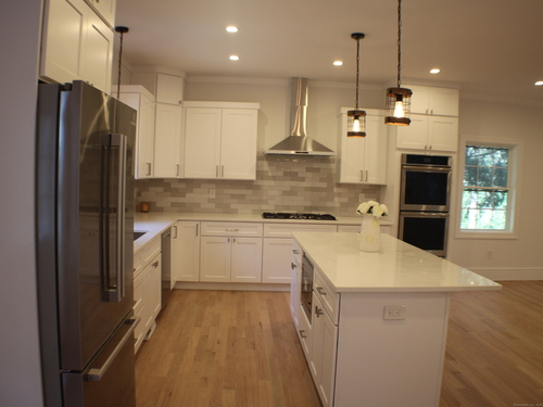 Welcome to 63 Flat Rock Drive, Easton! Located on one of lower Easton's most picturesque streets, this new construction is the epitome of modern living in a private yet convenient neighborhood. As you pull up you will notice the flat, landscaped yard with covered front porch. When entering the home you are greeted with family room and brand-new kitchen, quartz countertops, Bosch appliances, wet bar with custom lighting, wine rack and island. First floor also features dining room, pantry, half bath and living room. Heading upstairs there is the laundry area, 2 bedrooms with jack and jill bath and primary suite with custom bath and dual walk-in closets. Third floor features, custom railings and built in seating bench in rec room and 4th bedroom, a 3rd full bath finishes this space. Home features 9-foot ceilings on 1st/2nd floors, new hardwood throughout, spray foam insulation, new a/c, furnace, tankless hot water heater, new septic, windows and so much more. Full basement for storage with underneath garage and walk out. As you go out the back you will also notice a blue stone patio, and private rear yard surrounded by open space. Home is located just 3 minutes to Merritt Parkway and close to Fairfield trains and shopping. Owner/Agent. Make your appointment today!