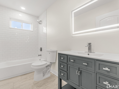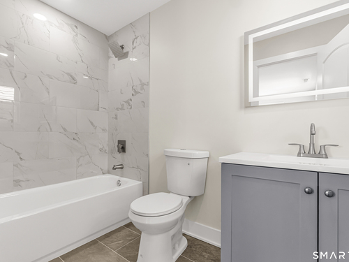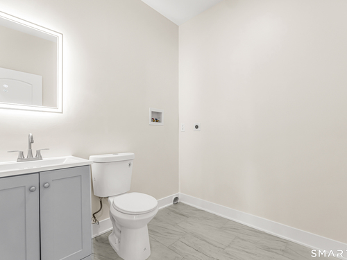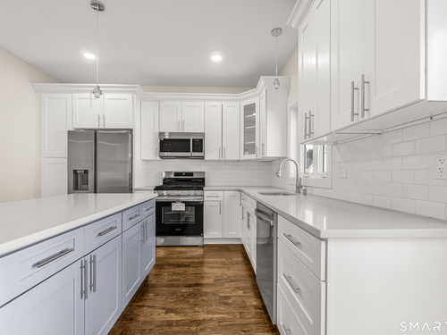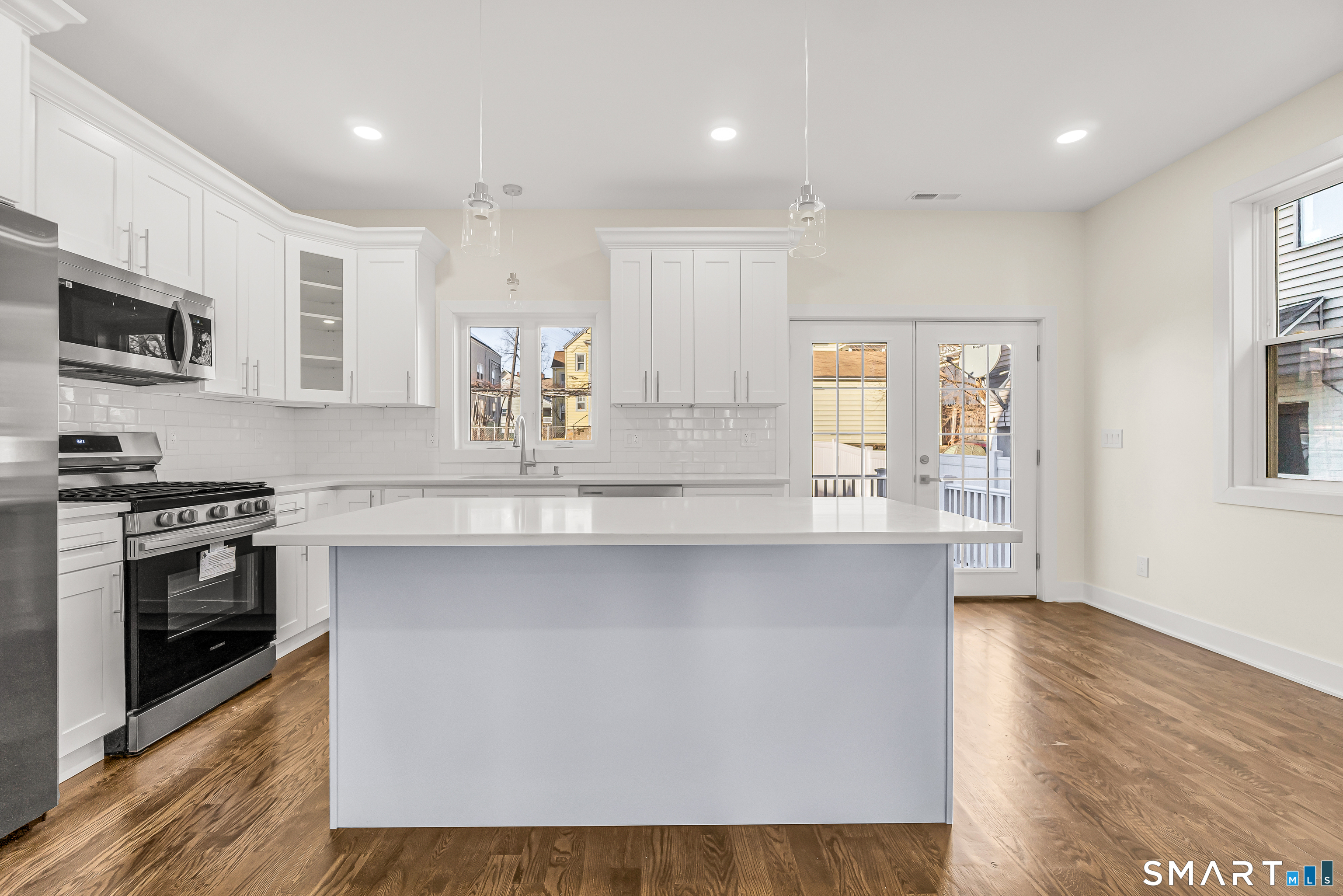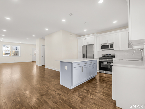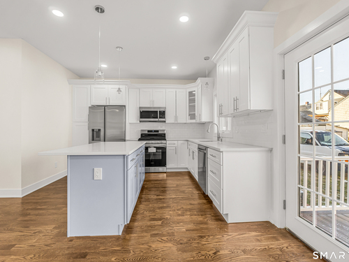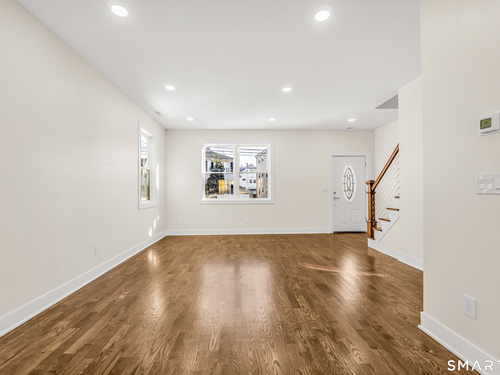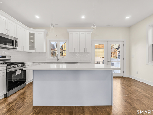 Stunning new construction ideally set in a desirable North End location ready for its new owners. This modern new home features a large open floor plan filled with abundant natural light and 9-foot ceilings perfect for everyday living and entertaining. The stylish custom kitchen offers oversized cabinetry, quartz countertops, high-end stainless steel appliances, and a center island. The second level showcases a spacious primary suite with a lavish primary bath and walk-in closet, along with two additional bedrooms that share another stylish modern bath. All bedrooms have large double closets. Hardwood floors and LED lighting run throughout. An oversized 800sf walk-out basement with high ceilings can be finished for future expansion. Additional highlights include high-efficiency gas heat, central air, and a Navien on-demand water heater. Enjoy outdoor living with a private yard and deck. Conveniently located near the Metro North train, shopping, and all major highways. This brand new home offers maintenance free living for years to come.