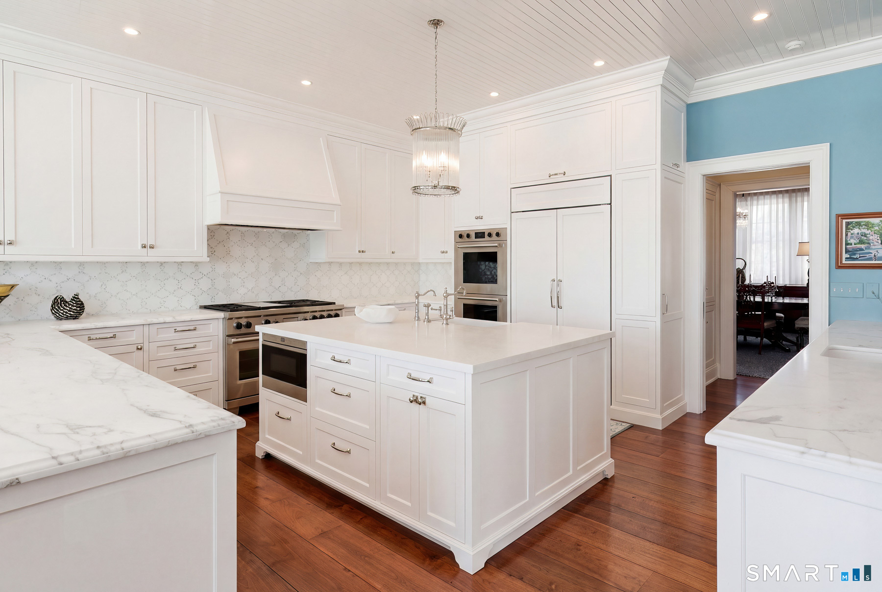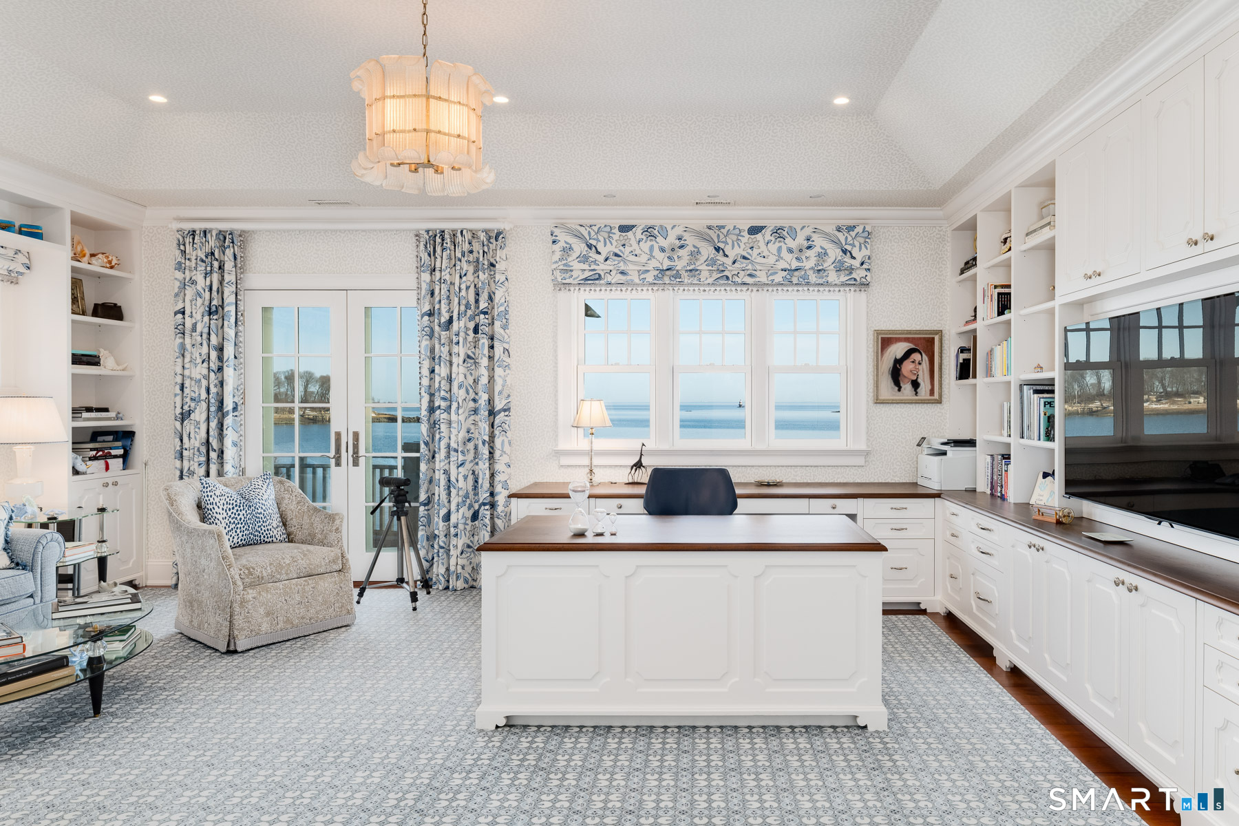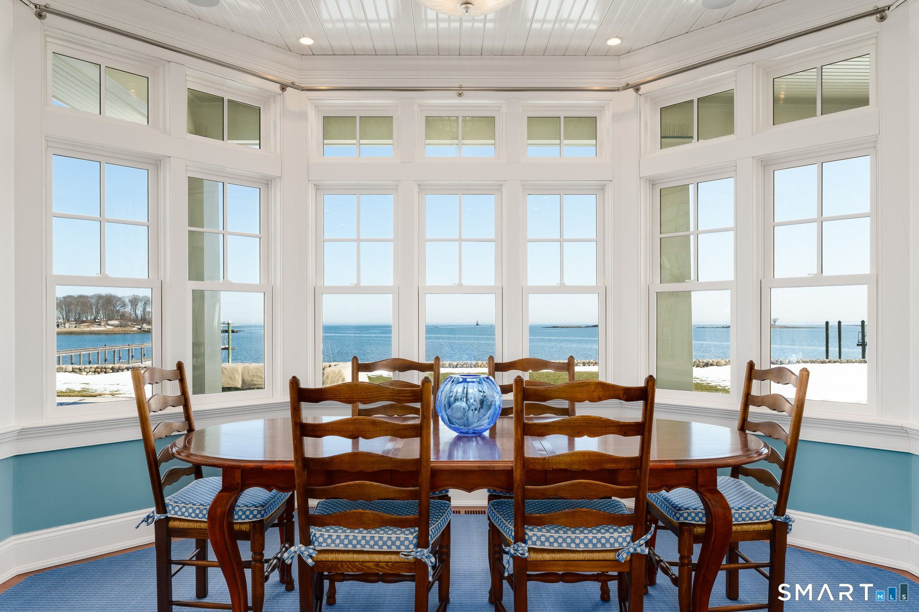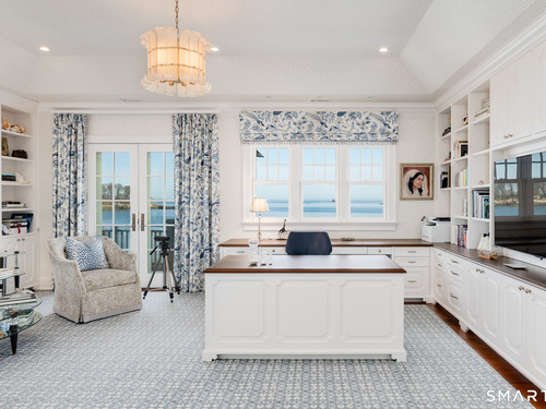 Rarely does an opportunity arise to own a home in the coastal enclave of Shorehaven, and 10 Shorehaven Road is a true masterpiece. This Nantucket-inspired estate blends timeless elegance with relaxed coastal charm, offering unmatched luxury and tranquility. Set along the serene waterfront, the lush, landscaped grounds feature a sparkling pool, spa, and private dock-perfect for boating adventures or peaceful moments by the tide. Inside, a grand curved staircase greets you, leading to beautifully appointed spaces. Formal living and dining rooms offer sophistication, while the gourmet chef's kitchen and adjoining family room, with a coffered ceiling, fireplace, and French doors, invite effortless indoor-outdoor living. Five ensuite bedrooms, including the second-floor primary suite provide private retreats. The primary features two spa-like baths and a balcony with breathtaking water views. A custom office with its own balcony and a richly paneled study complete the home's refined interiors. Expansive windows flood the home with natural light, while the veranda, spanning the length of the house, is perfect for entertaining or quiet relaxation. Minutes from Shorehaven Golf Club and local amenities, this property offers the pinnacle of coastal living.