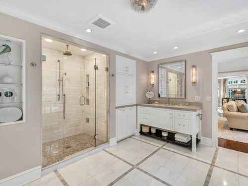 Double-Sink, Hydro-Tub, Stall Shower, Walk-In Closet, Stone Floor, Tile Floor