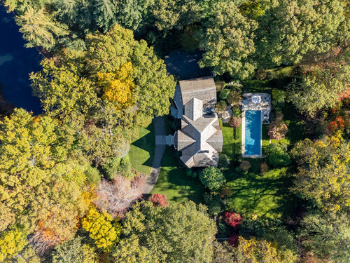 Tucked away on a picturesque property with a peaceful pond and complete privacy, this custom-built home is truly exceptional. From the moment you step onto the welcoming front porch, you'll feel the warmth and quality throughout. The sunlit kitchen is beautifully appointed with top-of-the-line appliances and a built-in banquette by the cozy fireplace, opening seamlessly to the inviting family room with a stunning fireplace & French doors to the patio. Entertain effortlessly in the elegant dining room w/ butler's pantry & spacious living room. A first-floor office w/ pocket doors offers a quiet retreat for work or study. Upstairs, the primary suite is a sanctuary w/ vaulted ceilings, a private sitting room, balcony overlooking the pond, and a luxurious spa-like bath. Three additional bedrooms, two full baths, & a bright laundry room complete the second floor. A private three-room suite off a separate entrance - including a family area, bedroom, full bath, and loft - provides perfect flexibility for guests, in-laws, or family members. The lower level offers a gym, full bath & sauna for healthy living. Outside, enjoy a resort-like lifestyle with a stunning 50-foot pool w/auto cover, mature landscaping, and breathtaking gardens. Set on 2.69 beautifully landscaped acres in a premier multi-million-dollar neighborhood convenient to everything beautiful Westport offers. This special home presents the perfect blend of elegance, comfort, quality & natural beauty - a true masterpiece.