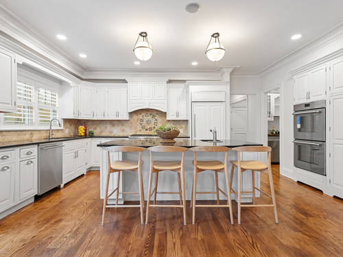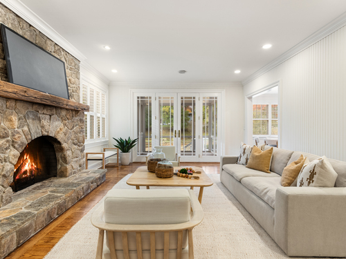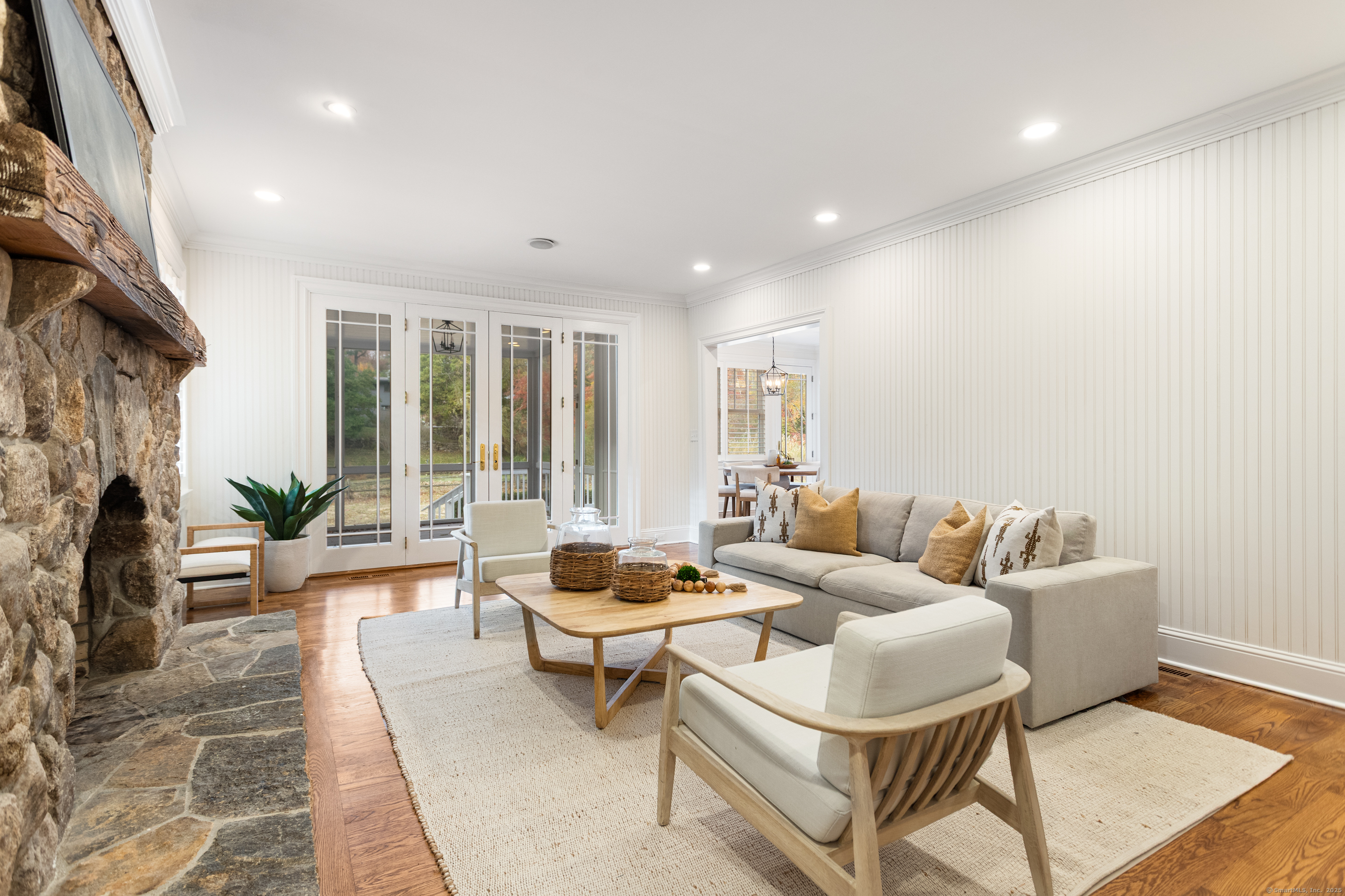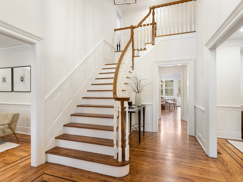 Classic Greens Farms Colonial - Timeless Elegance Meets Modern Comfort ~ Nestled in one of Westport's most desirable neighborhoods, this beautifully updated Center Hall Colonial offers the perfect blend of timeless charm and modern luxury. Ideally located just minutes from Sherwood Island State Park-with its miles of golden sand beaches, scenic picnic areas, and sweeping views-this home provides easy access to I-95, the Merritt Parkway, and downtown Westport. Set on a picturesque property with a gentle brook at the far end of the level backyard, the home invites peaceful outdoor living with a charming front porch & back porch, expansive deck, and stone patio-ideal for al fresco dining and entertaining. Inside, a gracious two-story foyer with a curved staircase opens to a formal living room with fireplace and a formal dining room complete with butler's pantry and walk-in pantry. The gourmet kitchen features top-of-the-line new Thermador appliances, stone countertops, and a spacious dining area with access to the deck. A family room w/fireplace with Fr doors to an enclosed porch, a pvt office, and a well-designed mudroom with easy access to the two-car garage complete the main level. Upstairs, the primary suite is a true retreat, offering a fireplace, balcony with beautiful property views, walk-in closet, and luxurious bath. Three additional bedrooms share access to full baths, complemented by a large recreation/media room, half bath and convenient second-floor laundry.