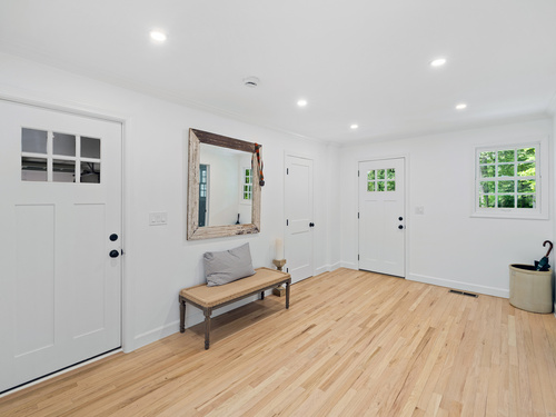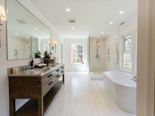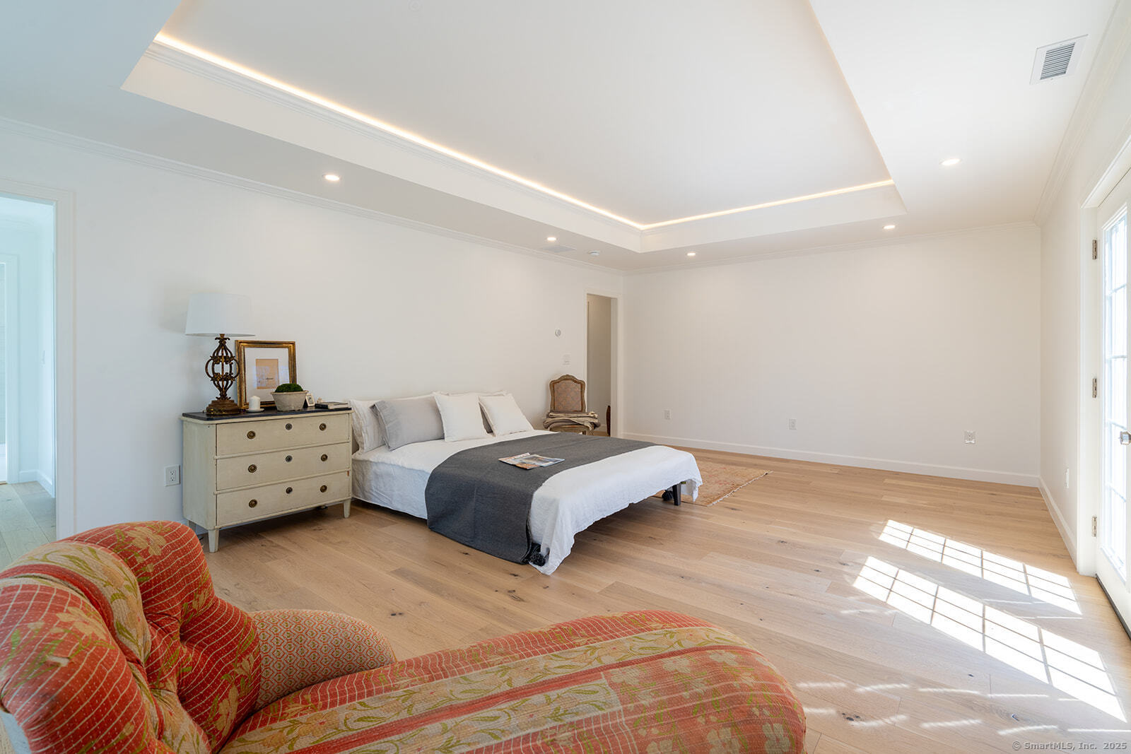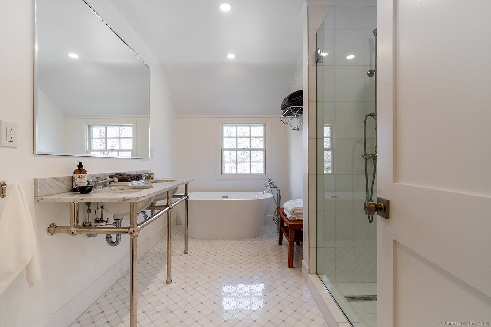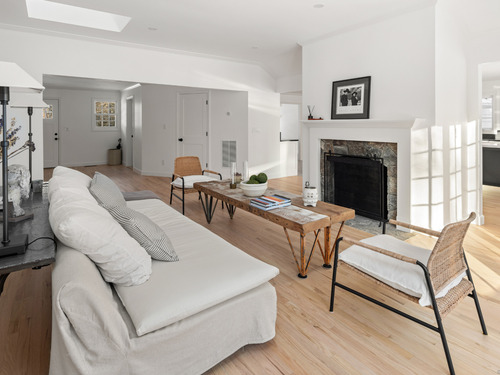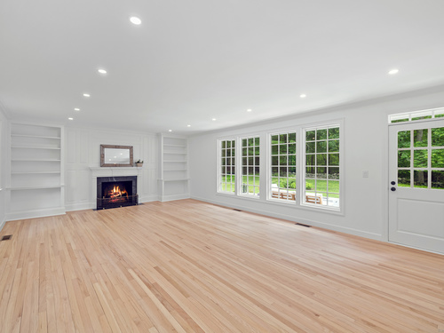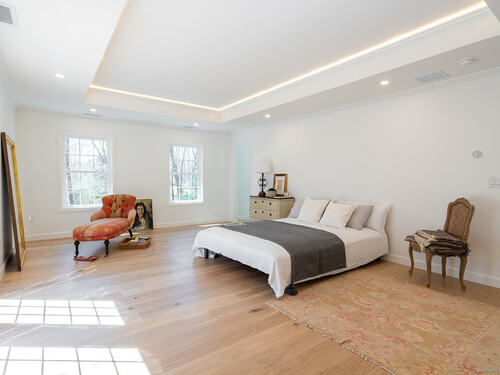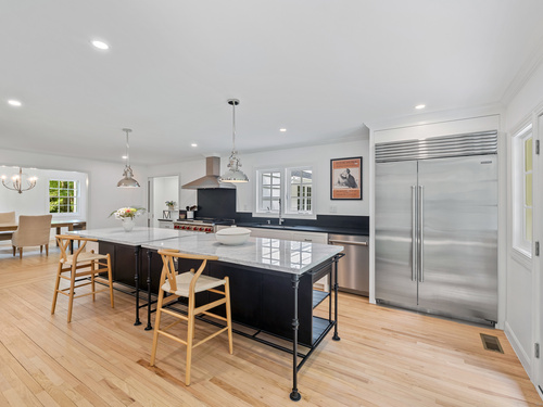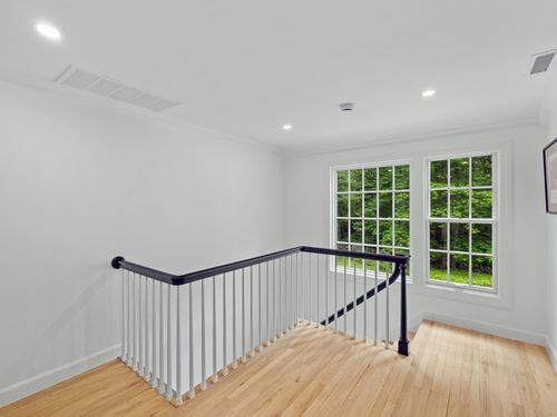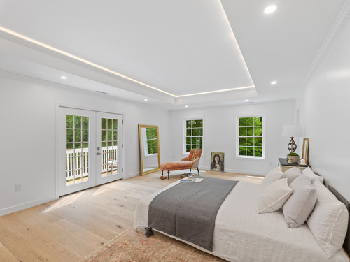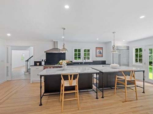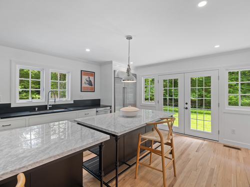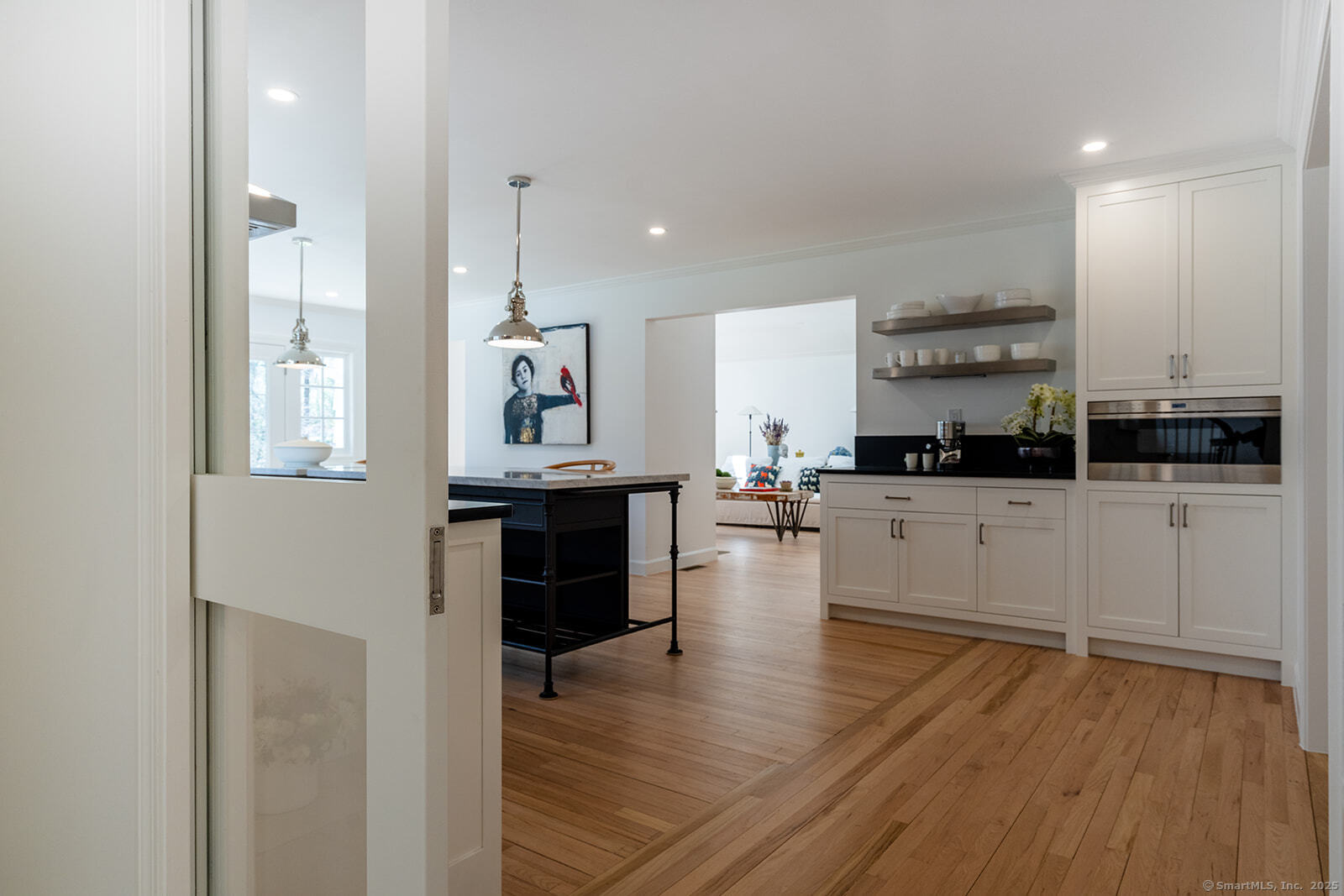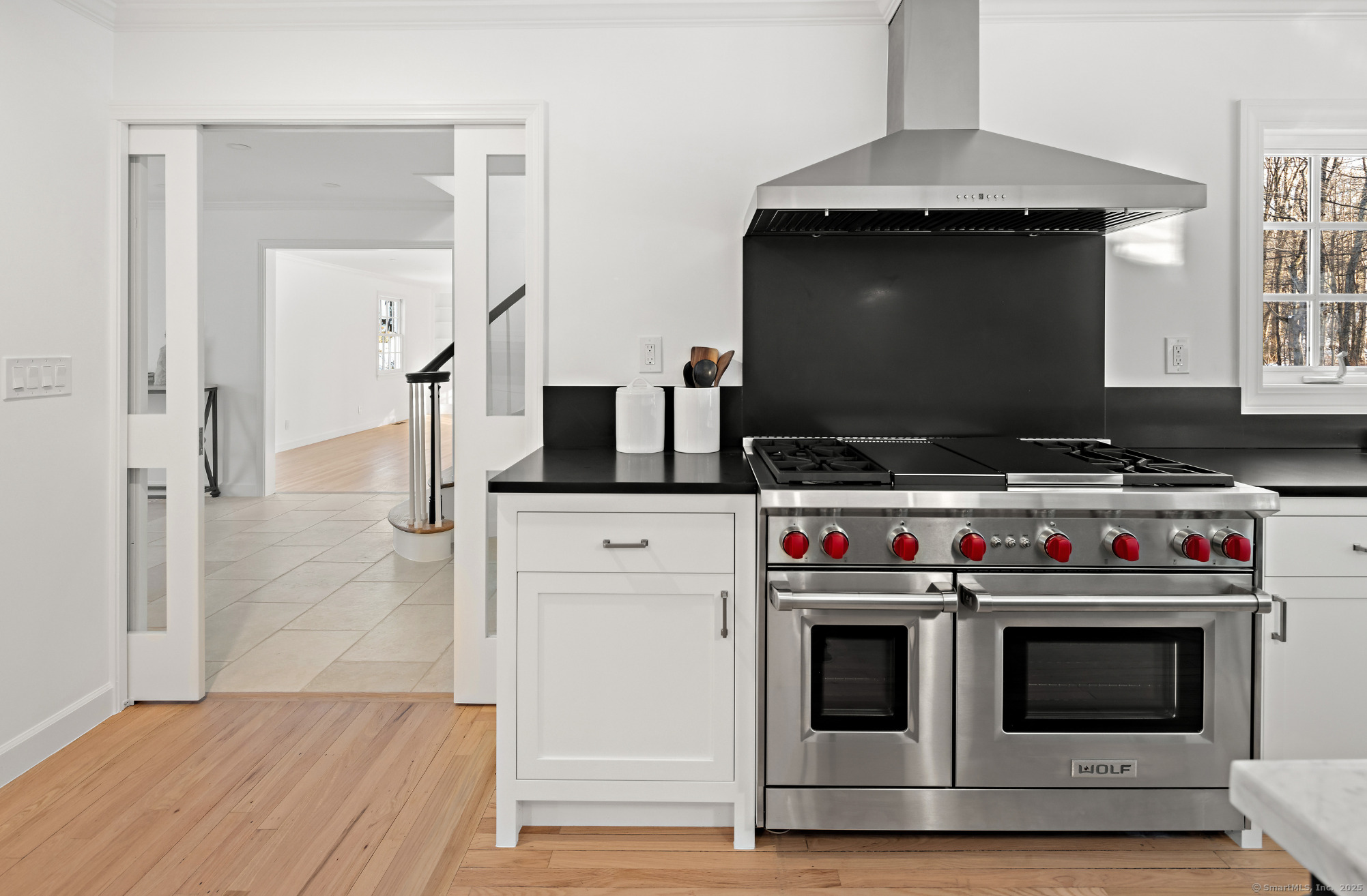 This property wins BEST-IN-CLASS with brand new renovation, perfectly situated in a prime west-side neighborhood location near New Canaan village. This turnkey home blends modern elegance & timeless charm, offering five bedrooms, four and a half bathrooms, and 3 floors of sophisticated living space on two private, park-like acres. Main floor key features: Gourmet Kitchen: New, classic-modern kitchen featuring double islands, top-tier stainless SubZero & Wolfe appliances, a walk-in pantry, an adjacent sun-filled family room with fireplace, formal dining room, living room with fireplace & access to the wrap-around slate patio. Primary Suite: A spacious addition includes a private balcony, tray backlit ceiling, sitting area, enormous walk-in closet, and a spa-like bathroom with a soaking tub. Generous Living Spaces: home office, laundry room, mudroom area and a finished basement with a fireplace, half bath and wine fridge offer expansive space for both relaxation and recreation. Exceptional Outdoor Amenities: Enjoy quiet privacy with surrounding Ct stone walls, a large slate patio, a lovely front yard pond with aerator fountain, and a level private backyard. Practical Luxury: Includes a heated/cooled three-car garage with double-height ceilings to accommodate car lifts. Prime Location: Only 6 minutes from New Canaan village amenities and the Metro North train station. This move-in-ready property offers an unparalleled lifestyle opportunity. Don't miss this opportunity.