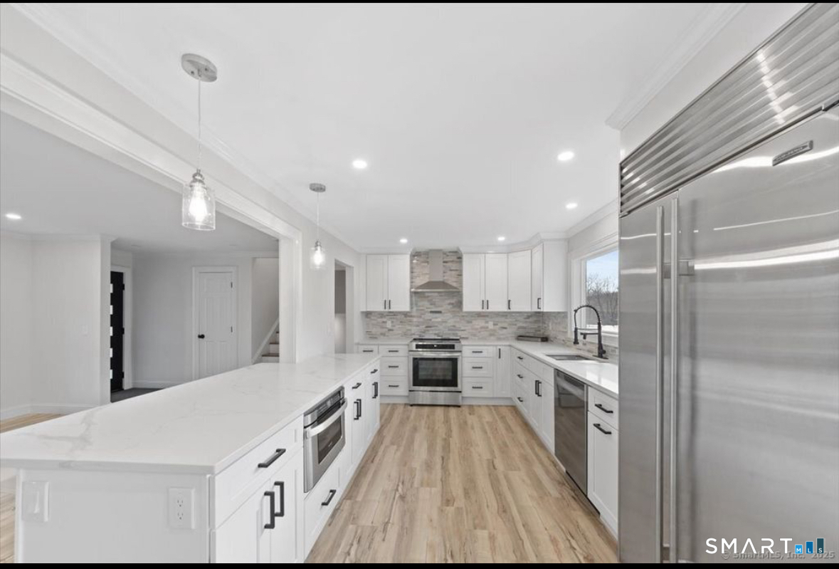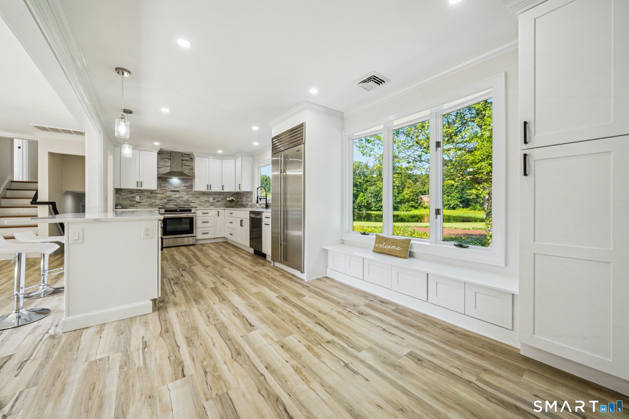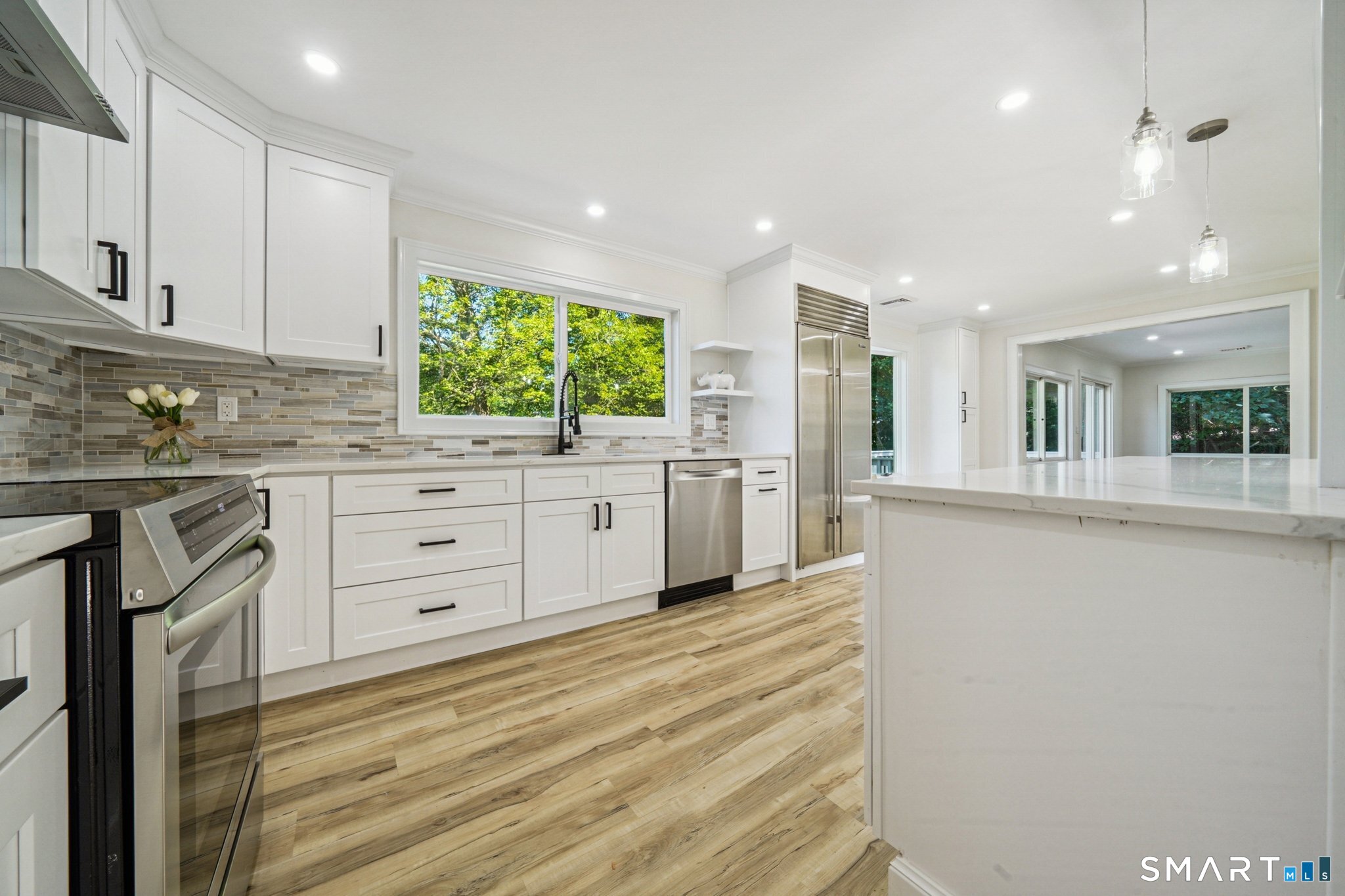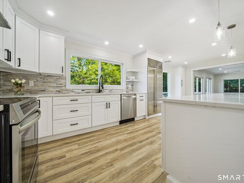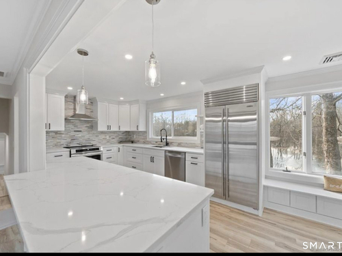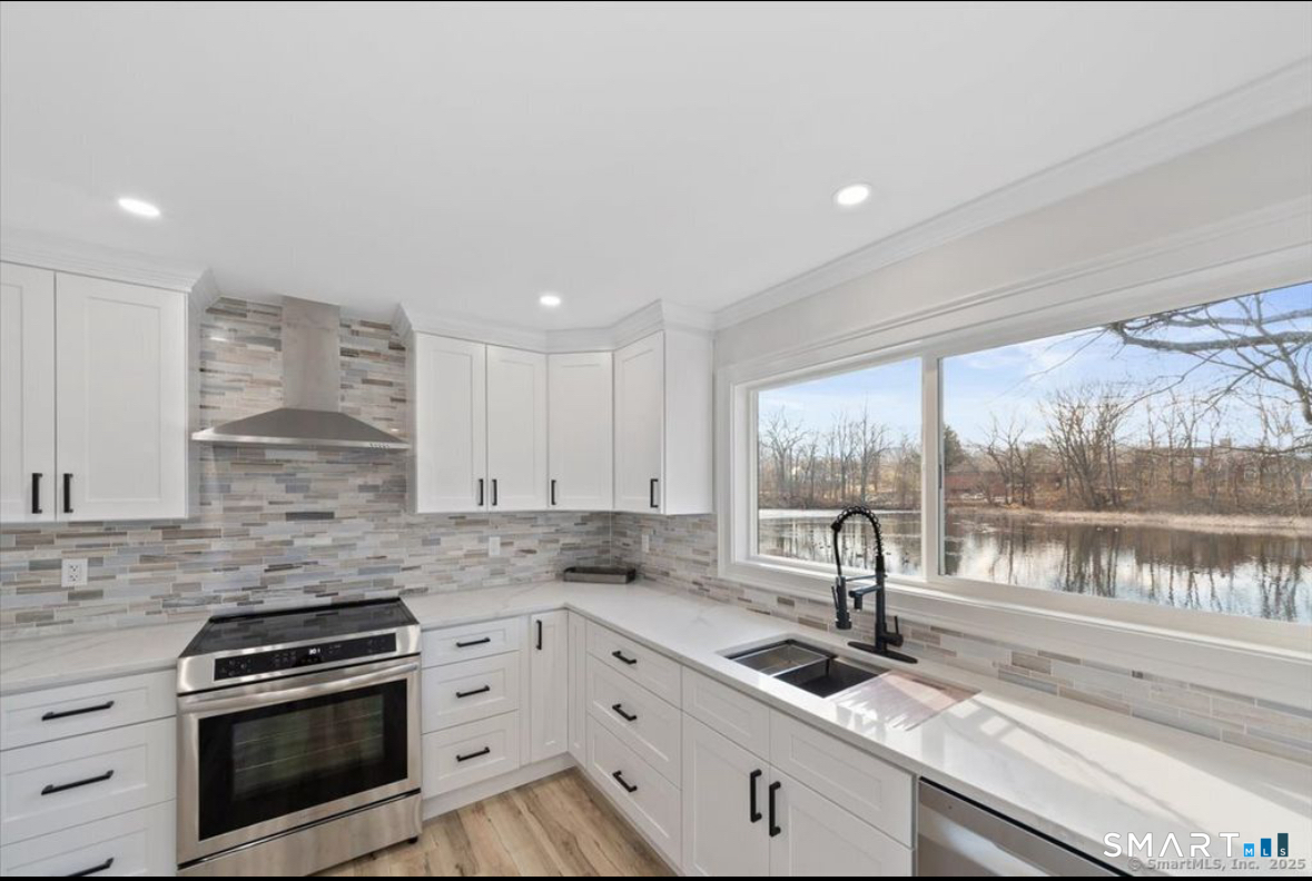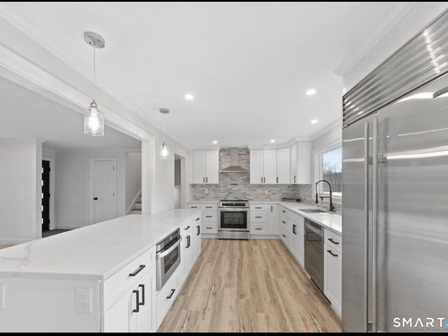 Beautifully Renovated Home in Prime Norwalk Location. Welcome to 185 Newtown Avenue, a stunningly renovated home that perfectly blends modern updates with timeless charm. Located in the heart of Norwalk's desirable Cranbury neighborhood and wood pond area. This move-in ready residence offers comfort, style, and convenience. Step inside to discover a bright, open floor plan featuring gleaming hardwood floors, recessed lighting, and freshly painted interiors. The brand-new kitchen is a chef's dream, boasting custom cabinetry, quartz countertops, stainless steel appliances, and a stylish tile backsplash. The spacious living and dining areas are ideal for entertaining, while the oversized windows fill the home with natural light. Upstairs, you'll find well-appointed bedrooms with ample closet space, along with updated bathrooms showcasing designer finishes and spa-like details. Additional highlights include a peaceful and serene waterfront view, a lower level with two bedrooms, or can be used as a flexible space for an office, gym, or playroom. Private backyard perfect for gatherings or relaxing, ample parking and storage, and perfectly situated near schools, shopping, dining, and major commuter routes. This home offers both convenience and lifestyle. Don't miss the opportunity to own this beautifully renovated Norwalk gem. Schedule your private showing today!