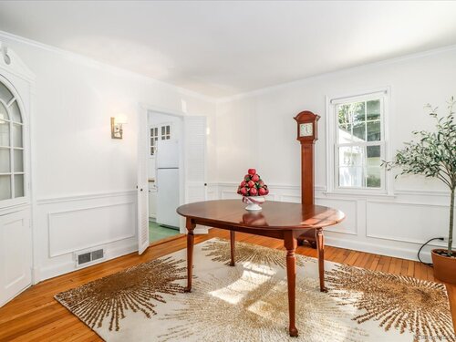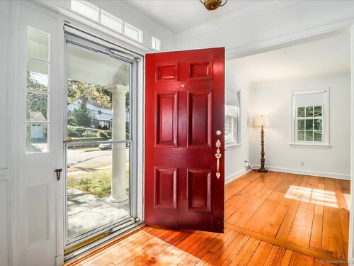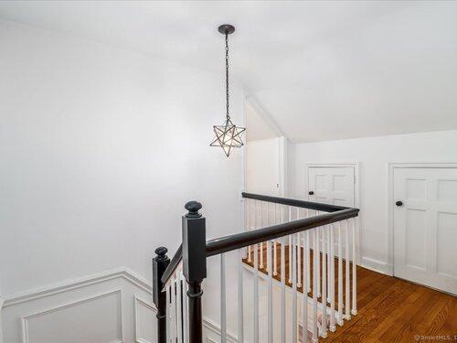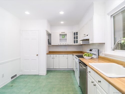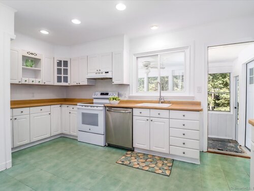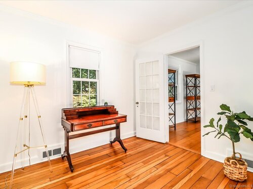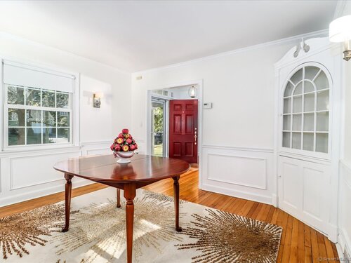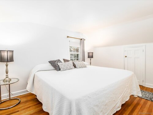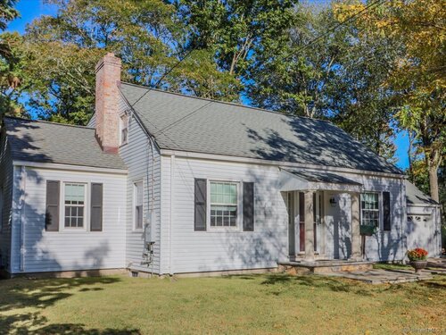 Welcome to this timeless 1939 Cape full of charm and detail! Perfectly sited on over one-third of an acre-larger than most in the neighborhood-this home features 3 bedrooms, 1.5 baths, and original hardwood floors throughout. The entry foyer, dining room, and staircase showcase beautiful wainscoting, while the sunlit front-to-back living room offers varied-width hardwoods, a wood-burning fireplace, and access to a first-floor bedroom or home office. The dining room, complete with a built-in corner hutch, leads to a cheerful kitchen with butcher block counters, new range, and plenty of cabinetry. Off the kitchen, a bright sunporch overlooks the fully fenced yard and peaceful views of the Rippowam River, and connects to an oversized 2-car garage with extra storage. Upstairs are two well-sized bedrooms, a renovated full bath, and a charming landing area. The dry basement provides abundant storage. Additional updates include central A/C, newer mechanicals (furnace, water heater, A/C 2015), 200-amp electric, newer roof (2008), windows (2002), and fresh paint throughout. Enjoy a new front walk, stoop, and columns, plus natural gas heat for efficiency. Conveniently located near shopping, dining, transportation, and just a short walk to Scalzi Park & Brennan Golf Course. Don't miss this mid-city charmer! PLEASE SUBMIT HIGHEST & BEST OFFERS BY 6PM TUESDAY 10/21.