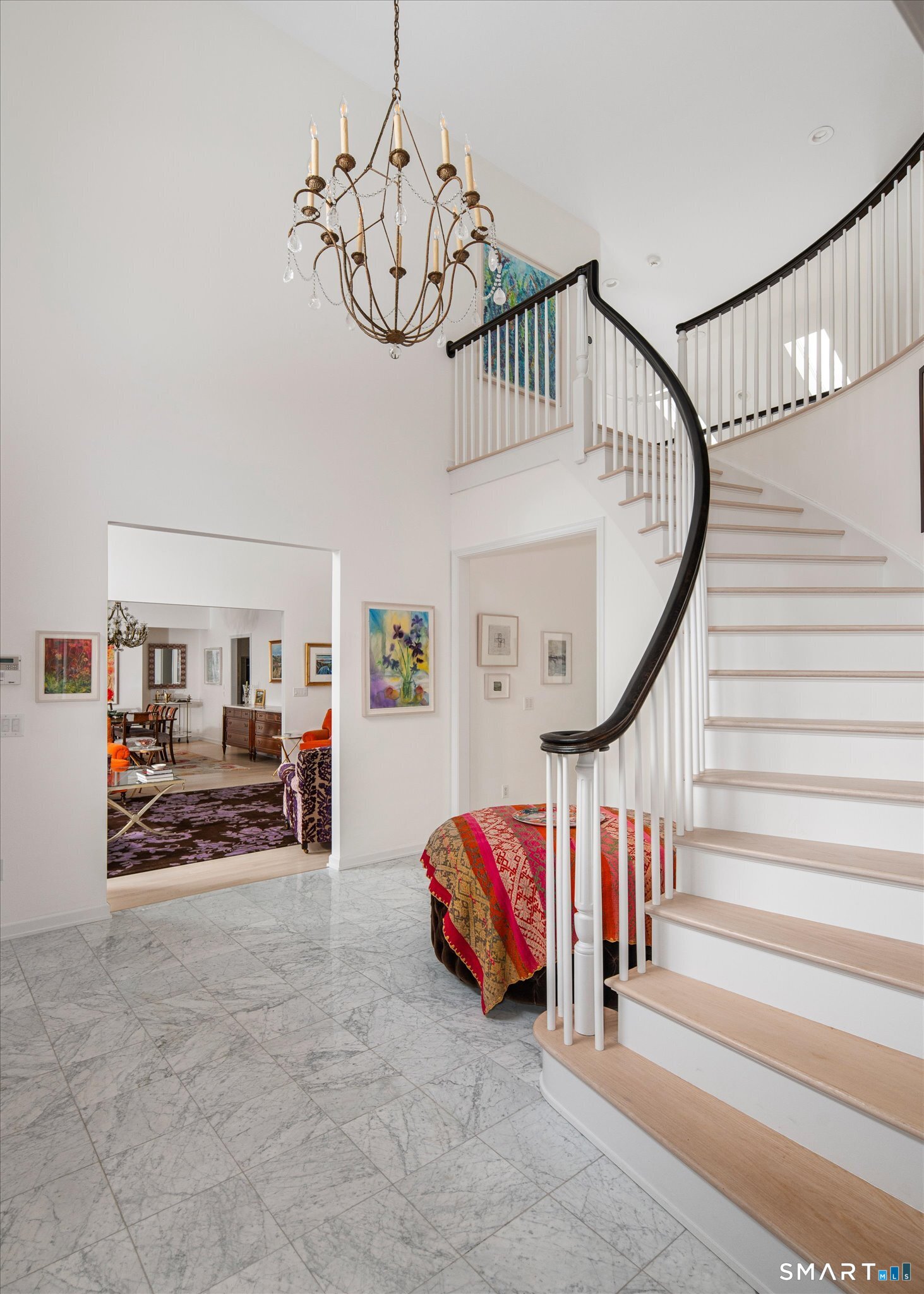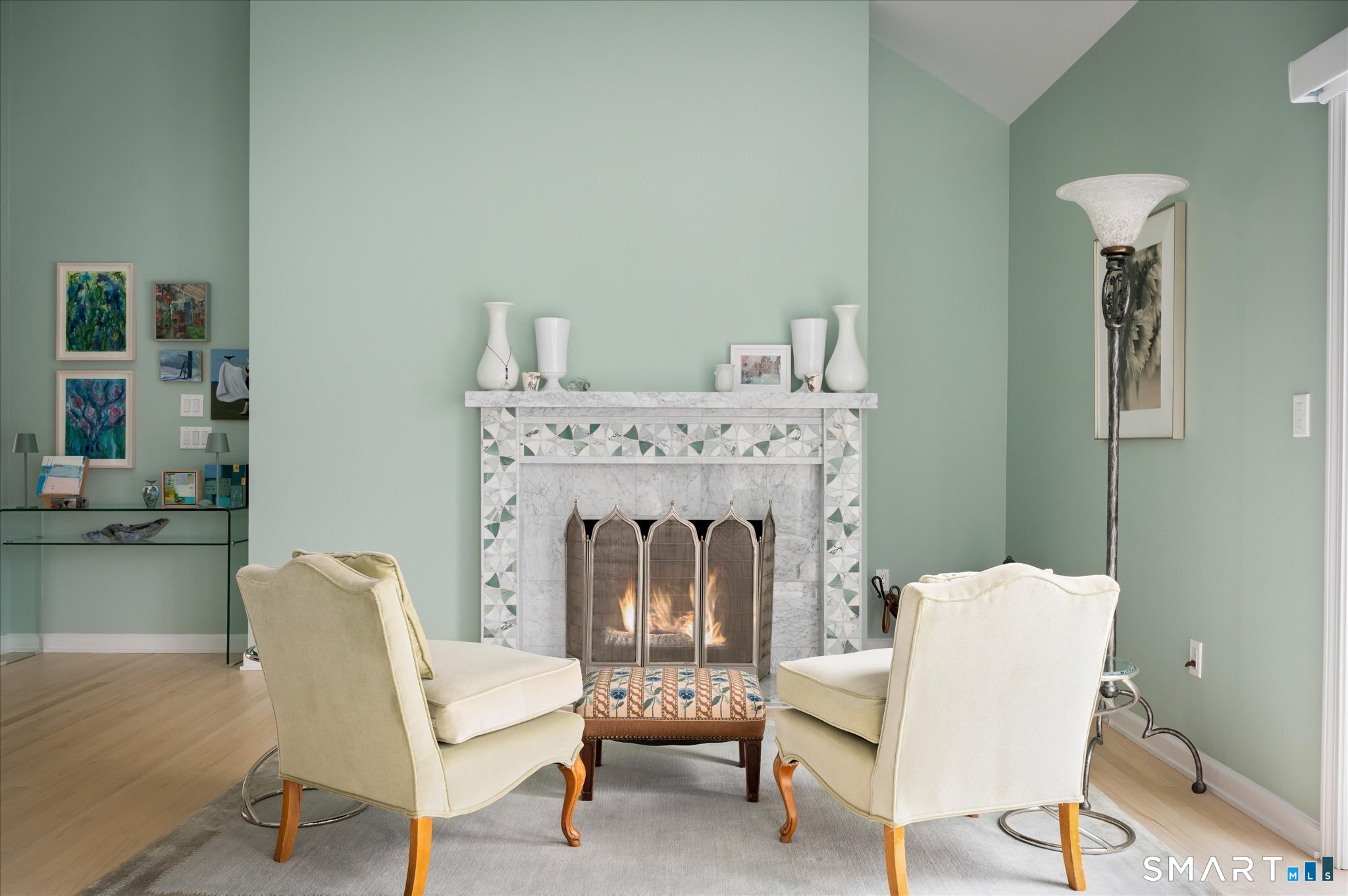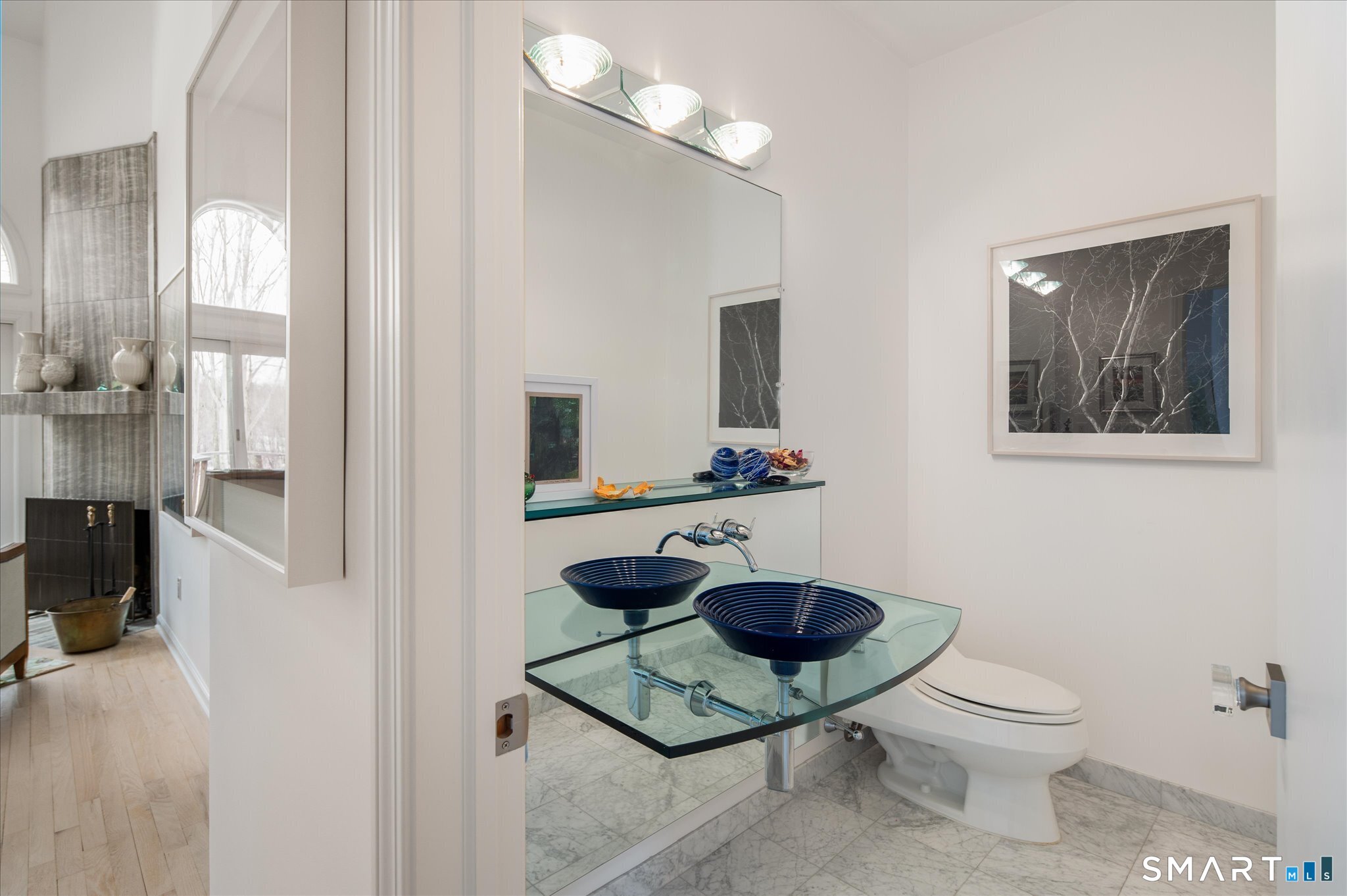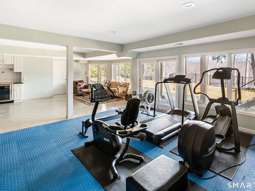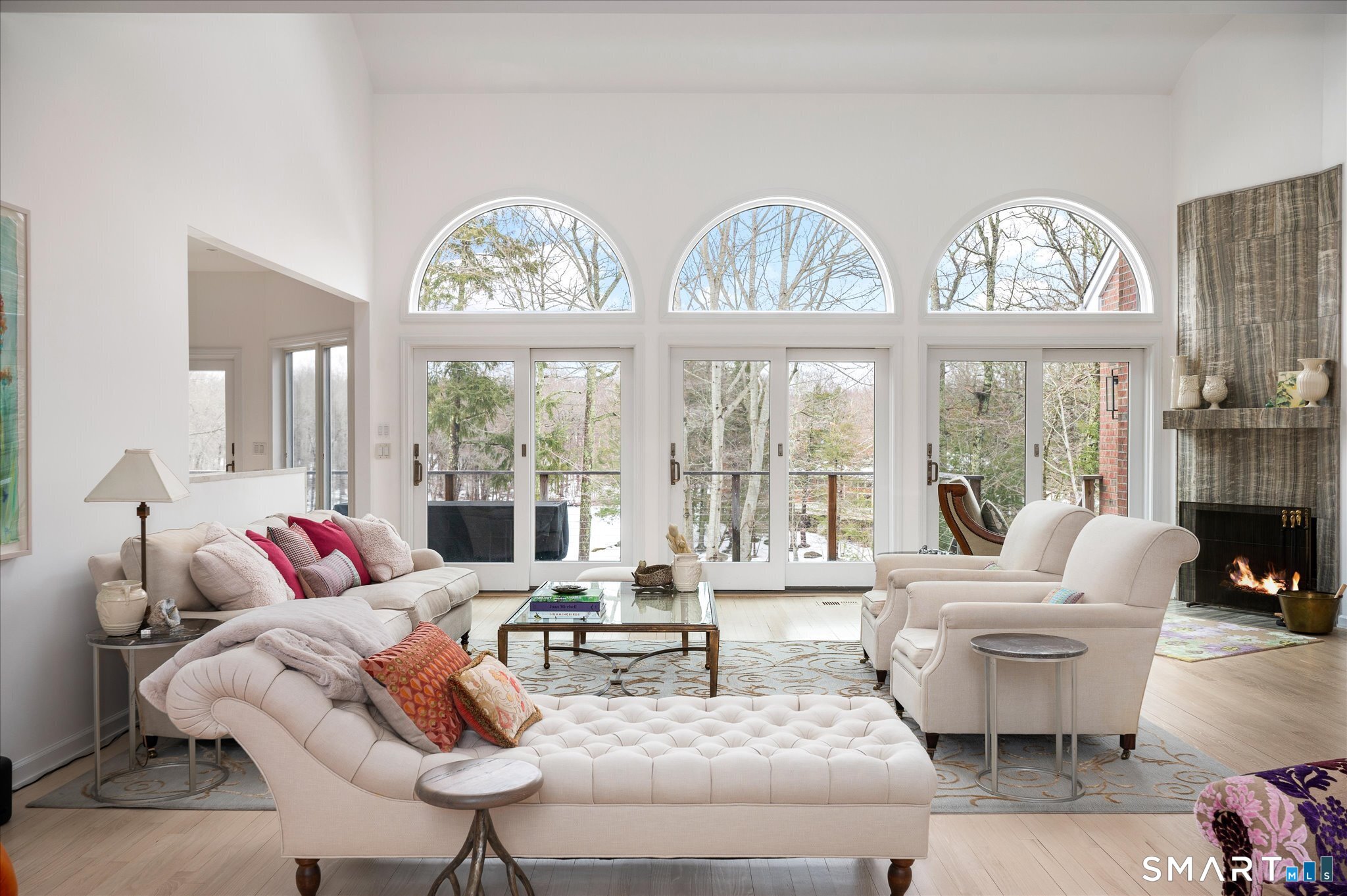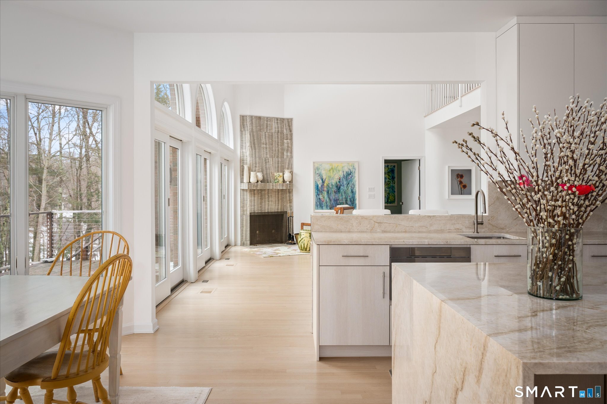 Lakefront living! This elegant main home features 450" ft of private, pristine lakefront in a coveted area of North Stamford CT! 1 hour from NYC by train, minutes from the vibrant city life of Stamford CT, this custom built, sunlit home has been exquisitely re-imagined in a sophisticated, modern style. The grand entrance opens to a foyer with marble floors, winding staircase, and panoramic lake views! Open floor plan with gallery walls are replete with vibrant paintings and sophisticated photographs. Arching oversized windows draw the eye to the lake front, saturating the interior with natural light. Main level includes a music room/study with a wood burning fireplace, elegant dining room, an oversized 2 story living room with a Onyx surround fireplace, updated kitchen with chef's appliances, primary bedroom with a custom marble mosaic fireplace, private balcony, 2 walk-in closets and a luxurious ensuite bath. Deck with steel cord-Ipe wood railings provides indoor-outdoor entertaining space. The 2nd floor has 3 ensuite bedrooms, (2 currently used for art studios) plus a generous recreation room/office/playroom. Walk-out lower level has a potential in-law/office suite with a separate entrance and kitchenette, a gym area, temperature controlled wine closet, and multiple closets/storage areas. Full house generator. Radon system. Bosch, Wolf, Subzero appliances. Approx 4200 sq ft on main and upper levels-another 3000 sq ft in lower walkout level. 4 bedroom, lives like 5.