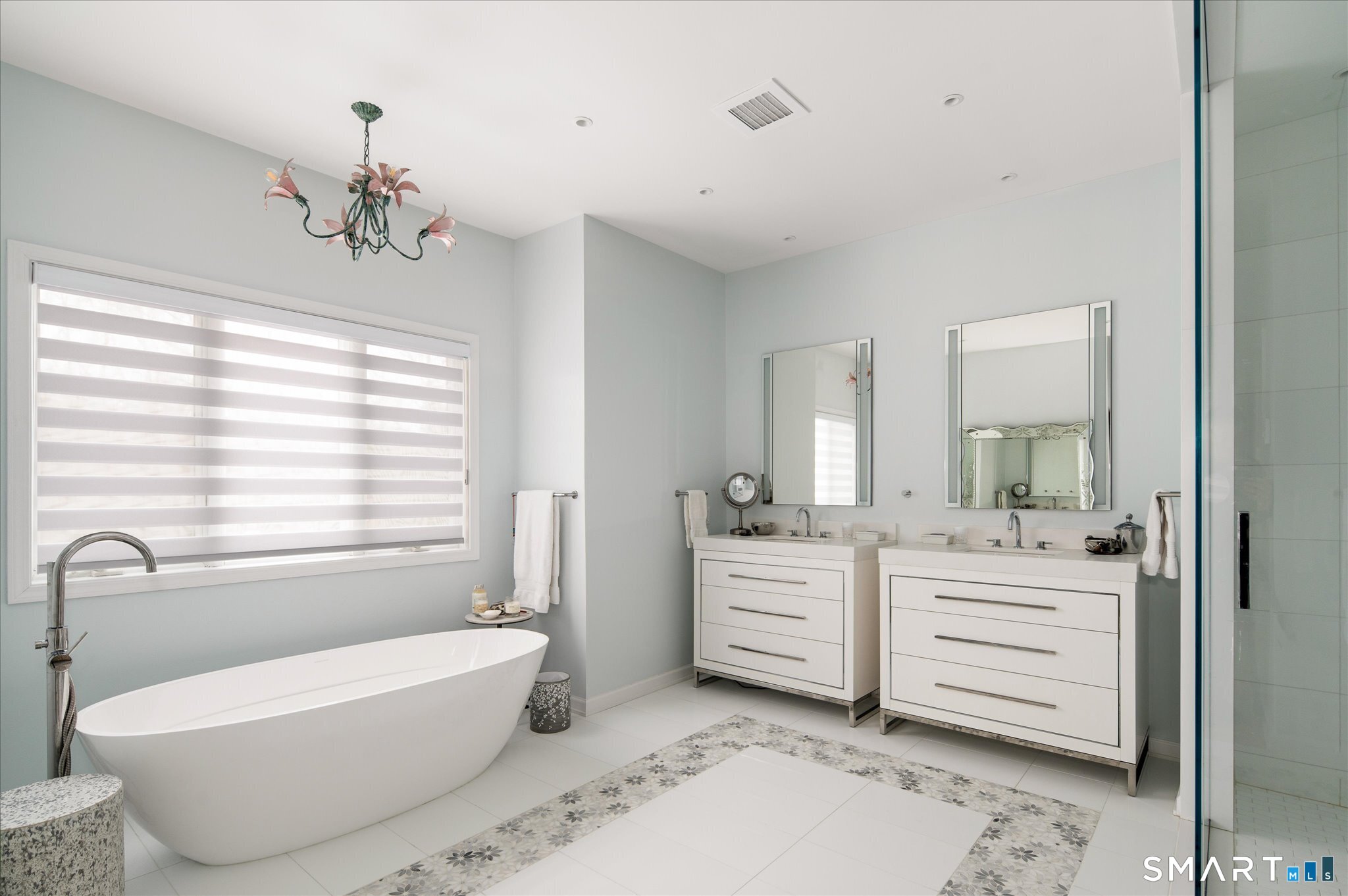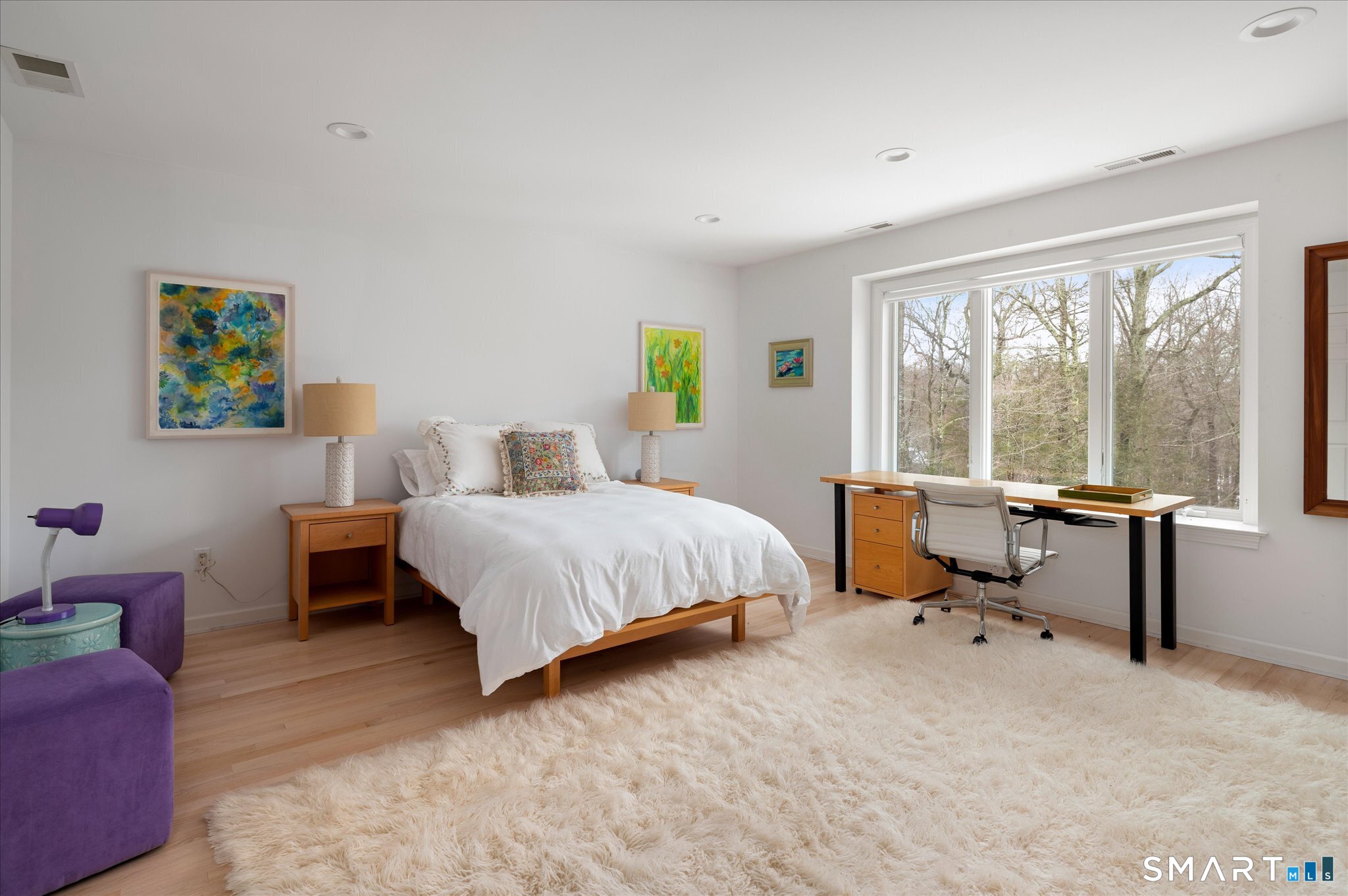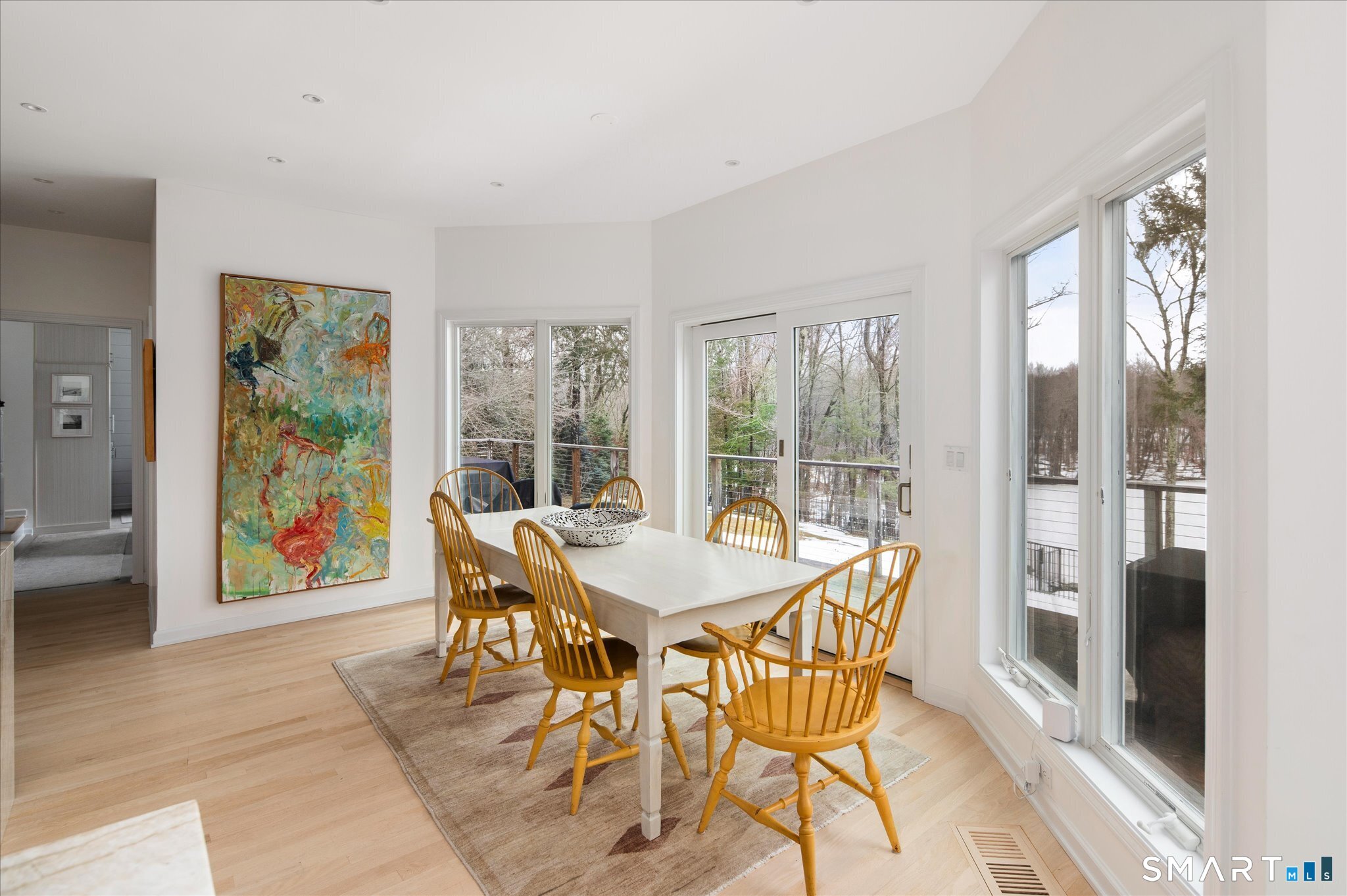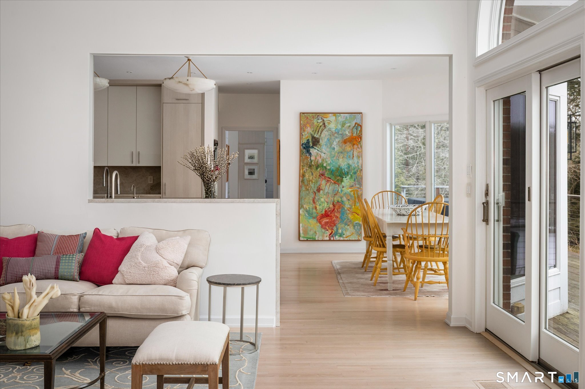 Lakefront living! This elegant main home features 450" ft of private, pristine lakefront in a coveted area of North Stamford CT! 1 hour from NYC by train, minutes from the vibrant city life of Stamford CT, this custom built, sunlit home has been exquisitely re-imagined in a sophisticated, modern style. The grand entrance opens to a foyer with marble floors, winding staircase, and panoramic lake views! Open floor plan with gallery walls are replete with vibrant paintings and sophisticated photographs. Arching oversized windows draw the eye to the lake front, saturating the interior with natural light. Main level includes a music room/study with a wood burning fireplace, elegant dining room, an oversized 2 story living room with a Onyx surround fireplace, updated kitchen with chef's appliances, primary bedroom with a custom marble mosaic fireplace, private balcony, 2 walk-in closets and a luxurious ensuite bath. Deck with steel cord-Ipe wood railings provides indoor-outdoor entertaining space. The 2nd floor has 3 ensuite bedrooms, (2 currently used for art studios) plus a generous recreation room/office/playroom. Walk-out lower level has a potential in-law/office suite with a separate entrance and kitchenette, a gym area, temperature controlled wine closet, and multiple closets/storage areas. Full house generator. Radon system. Bosch, Wolf, Subzero appliances. Approx 4200 sq ft on main and upper levels-another 3000 sq ft in lower walkout level. 4 bedroom, lives like 5.