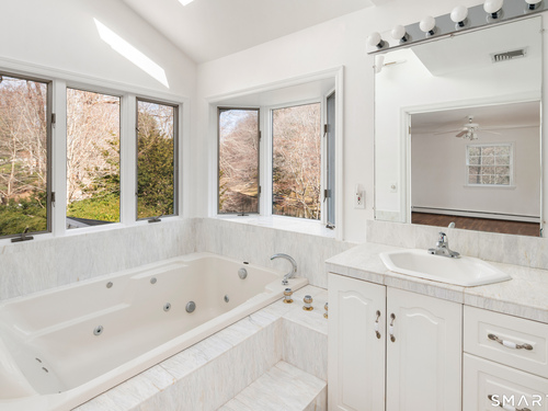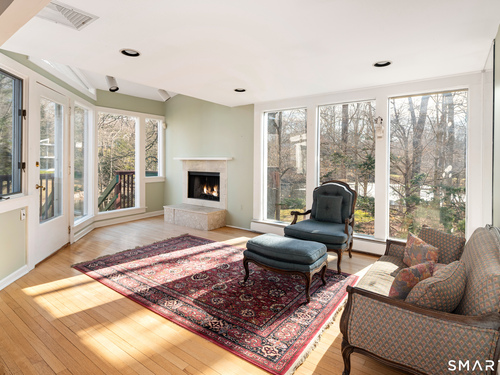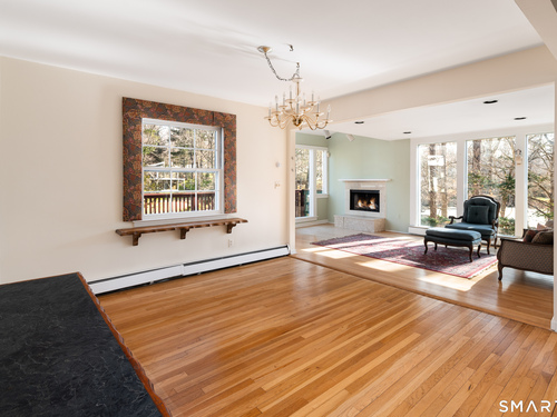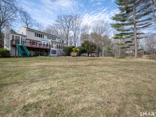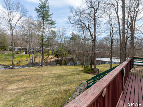 Live a serene, picturesque lifestyle in this waterfront retreat. Privately set on a tranquil lake, this open Colonial offers an exceptional setting for relaxing, kayaking, and even swimming. Mature trees and a lush lawn frame the property, while an expansive deck creates the perfect space for outdoor dining, barbecuing, and entertaining. Walls of glass invite the outdoors in, showcasing beautiful lake views throughout the seasons and creating a seamless connection to nature. The main level features a gracious living room, formal dining room, den, eat-in kitchen, and family room that flow easily together for comfortable living and entertaining. The eat-in kitchen with Corian countertops overlooks the lake-a peaceful and inspiring setting for everyday meals. Two fireplaces, located in the family room and den/office, add warmth and charm. Upstairs are three bedrooms and two baths, including a spacious primary suite with Jacuzzi tub, separate shower, skylight, and lake views. The current walk-in closet was originally a fourth bedroom and could easily be converted back. Two additional bedrooms are generously sized. The lower level with private entrance includes an in-law/au pair apartment. Additional features include central air, security system, and whole-house generator. Enjoy the beauty and tranquility of this magical year-round lakeside oasis.