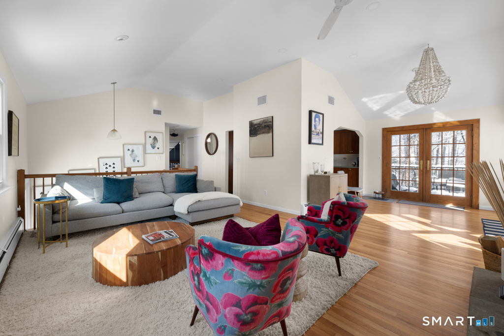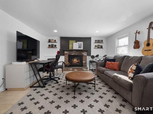 Completely transformed raised ranch with 3 bedrooms with a possible 4th, 2.5 baths, and picturesque Norwalk River views. Every detail has been refreshed: all-new bathrooms, recessed lighting throughout, fresh interior paint, new siding, and a redesigned front entry with door and sidelights allowing plenty of natural light. Wood-burning fireplaces in both the living room and family room add warmth and charm. The regraded lawn and professional landscaping frame the home beautifully, while the deck and patio create ideal settings for enjoying the tranquil water views. Has portable generator hookup right next to the garage. Neighborhood includes a great pond to skate on in the winter and fish, canoe on in the summer (voluntary annual association is $250 for access to the pond). Wilton living at its finest-move right in.