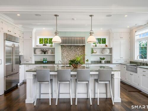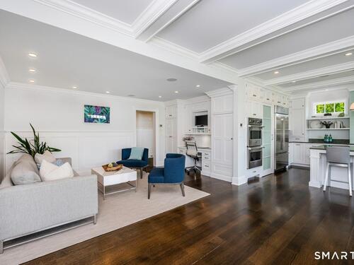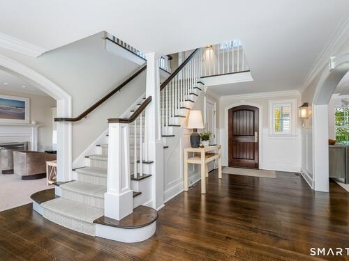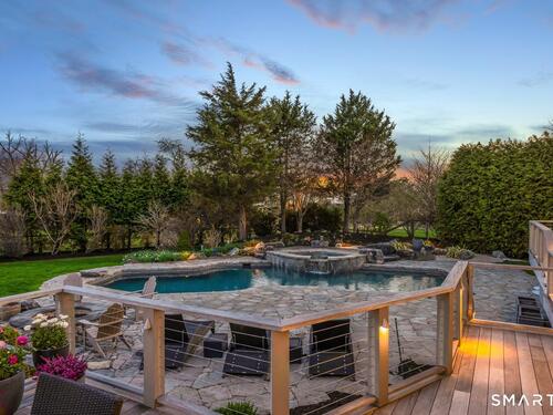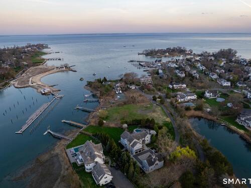 Your homestead starts here-welcome to 30 Shipway Road, a private waterfront retreat set on 1.49 incredible acres in sought-after Noroton Bay. Designed by renowned architect Chad Nehring, with coastal interiors by Pear Tree Point Design, this 5 bedroom home blends timeless style with modern comfort. Nearly every room takes in sweeping, unobstructed views of the harbor and Long Island Sound, creating a peaceful, picture-perfect setting all year long. The main living spaces flow easily outdoors to a deep water dock, beautiful pool and spa, lush grounds, and gas fire pit - perfect for relaxing or entertaining by the water. The primary suite is a true escape, with vaulted ceilings and its own private balcony overlooking the water-ideal for morning coffee. There's also a two-car attached garage, plus a detached three-car garage with a well-appointed apartment above, great for guests or extended family. A rare opportunity in one of Darien's most desirable waterfront neighborhoods, this home truly captures the best of coastal living.