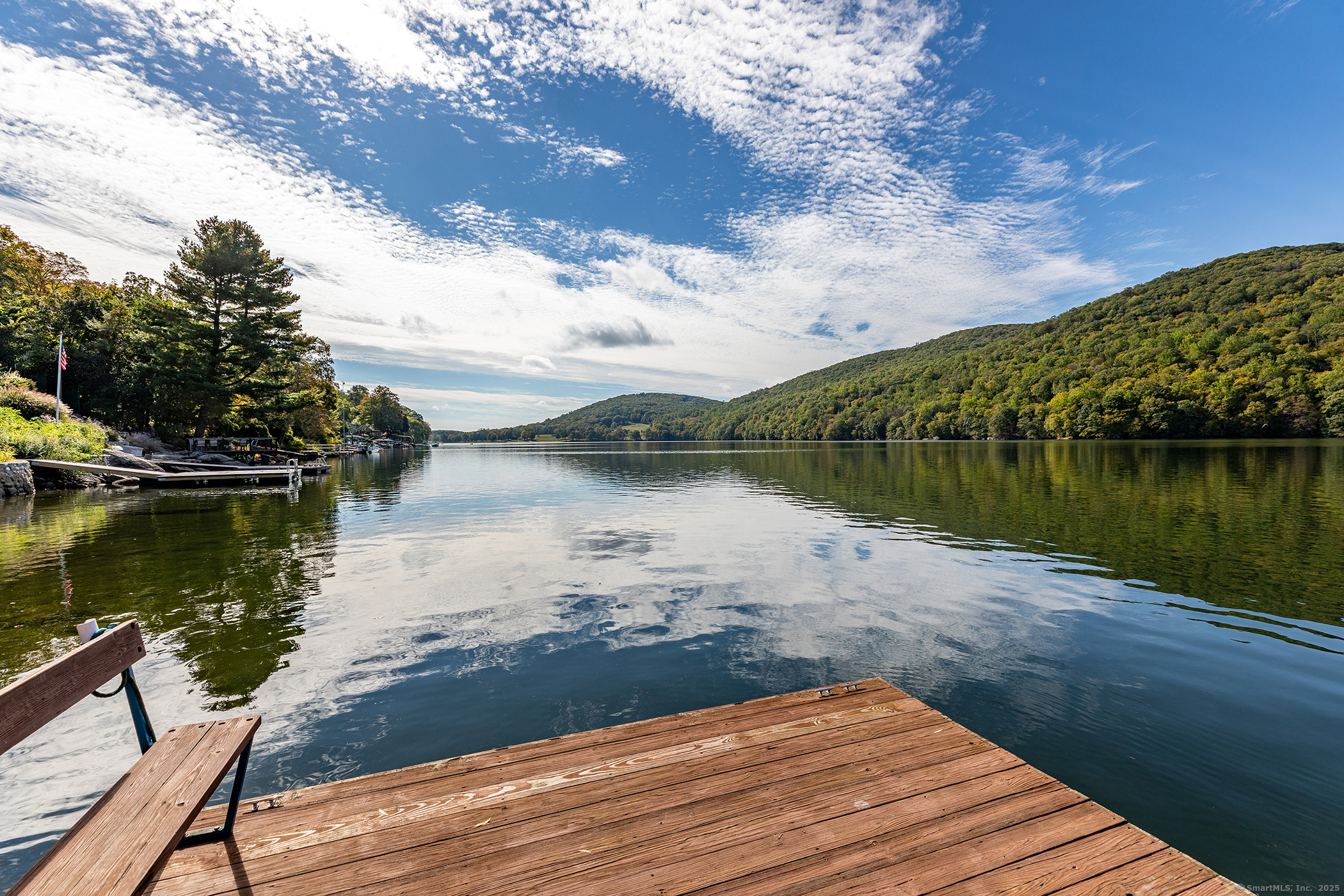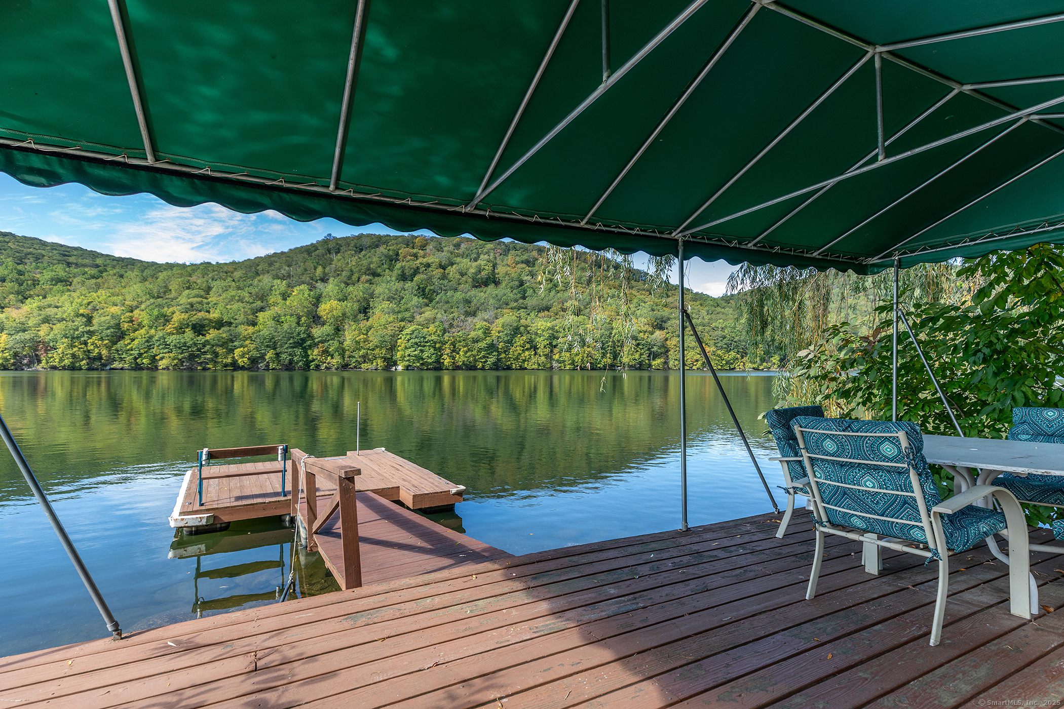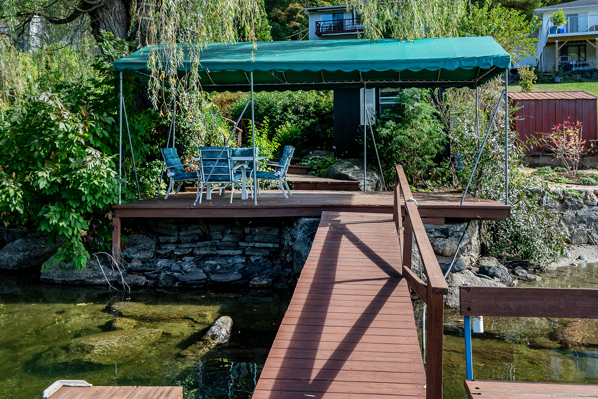 Welcome to your private waterfront retreat, where every day feels like a vacation! This exceptional property offers direct water access to Squantz Pond with your own beach, dock and boat shed, perfect for embracing the ultimate waterfront lifestyle: swimming, fishing, kayaking, boating, wake-boarding, etc. Step outside to expansive waterside decking where you can start your morning with coffee overlooking the water, then end each day watching spectacular SUNSETS paint the sky. The beautifully landscaped grounds feature mature perennial plantings and distinctive stone walls that frame this piece of paradise. Inside, the thoughtfully designed open-concept living and dining areas flow seamlessly to the main deck, creating effortless indoor-outdoor entertaining. On this level there are 2 beds and a full bath. Upstairs, the generous primary suite serves as your personal sanctuary, complete with abundant custom closet space and a spa-like ensuite featuring a luxurious sunken tub - the perfect place to unwind while enjoying water views. Automatic generator installed & full basement for storage. The ultimate retreat with protected state park land directly across the water ensuring your views and serenity remain forever preserved. Close to New Fairfield's schools, shops, restaurants, cafes, town beach, Candlewood Lake, etc; easy access to Metro North and only 80 mins drive to Manhattan.