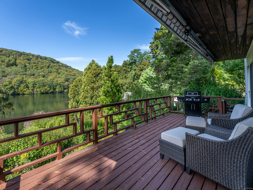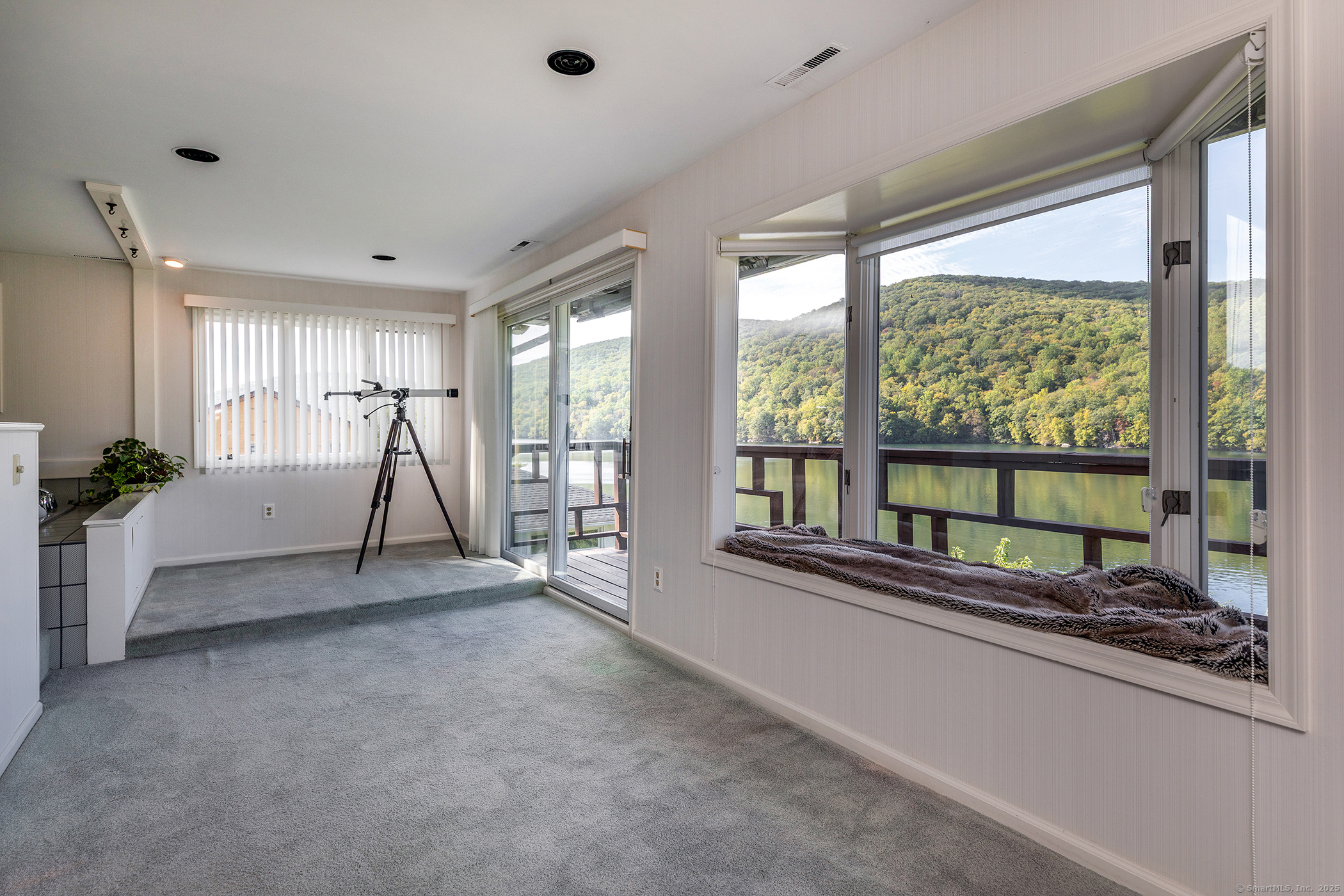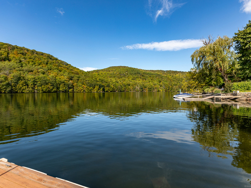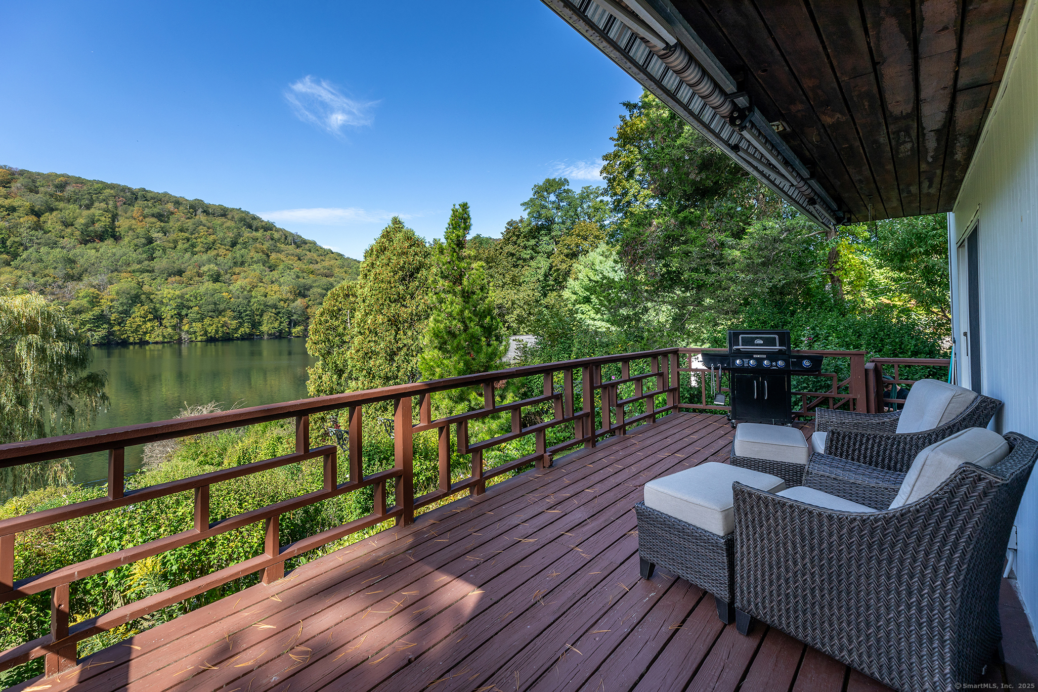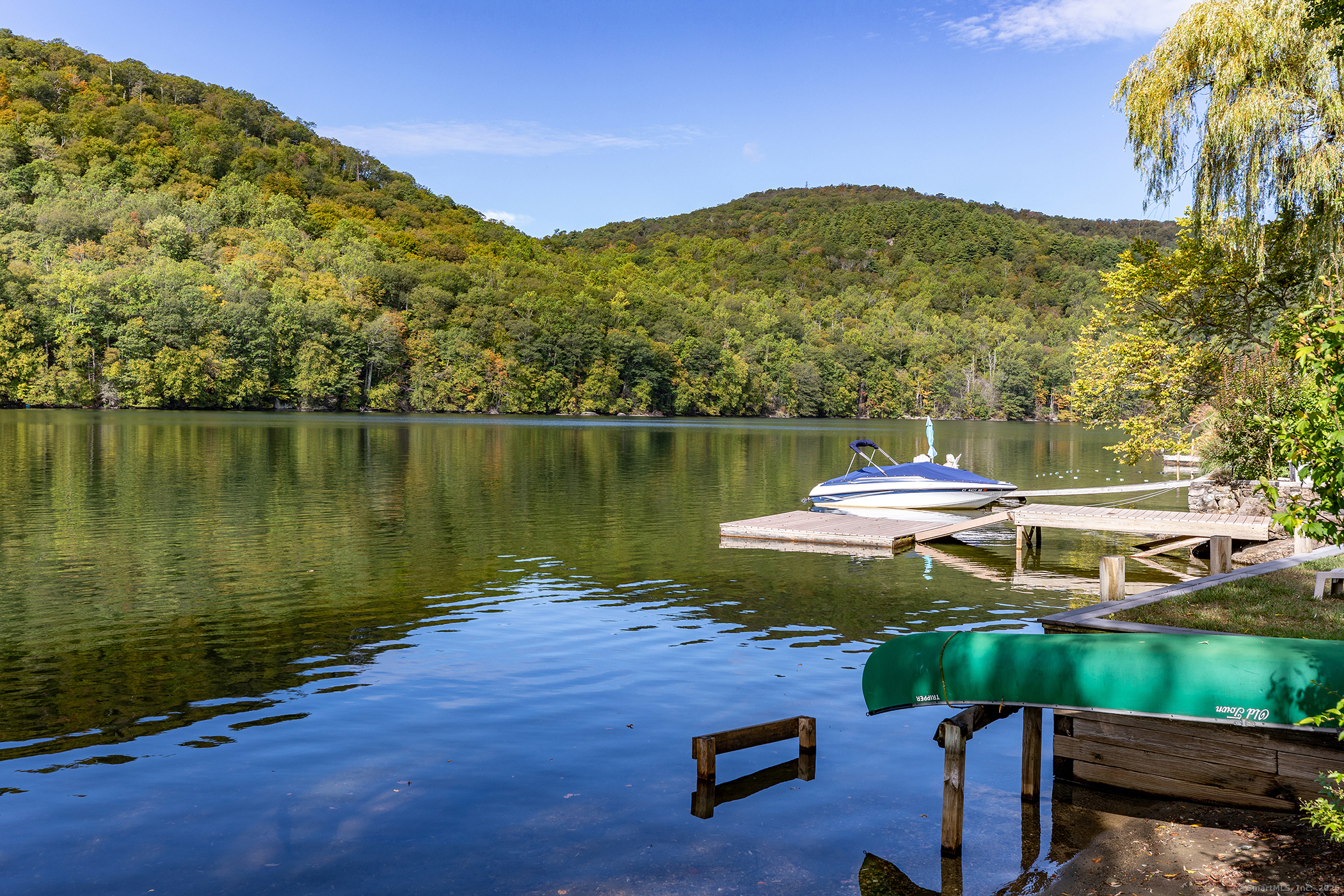 Welcome to your private waterfront retreat, where every day feels like a vacation! This exceptional property offers direct water access to Squantz Pond with your own beach, dock and boat shed, perfect for embracing the ultimate waterfront lifestyle: swimming, fishing, kayaking, boating, wake-boarding, etc. Step outside to expansive waterside decking where you can start your morning with coffee overlooking the water, then end each day watching spectacular SUNSETS paint the sky. The beautifully landscaped grounds feature mature perennial plantings and distinctive stone walls that frame this piece of paradise. Inside, the thoughtfully designed open-concept living and dining areas flow seamlessly to the main deck, creating effortless indoor-outdoor entertaining. On this level there are 2 beds and a full bath. Upstairs, the generous primary suite serves as your personal sanctuary, complete with abundant custom closet space and a spa-like ensuite featuring a luxurious sunken tub - the perfect place to unwind while enjoying water views. Automatic generator installed & full basement for storage. The ultimate retreat with protected state park land directly across the water ensuring your views and serenity remain forever preserved. Close to New Fairfield's schools, shops, restaurants, cafes, town beach, Candlewood Lake, etc; easy access to Metro North and only 80 mins drive to Manhattan.