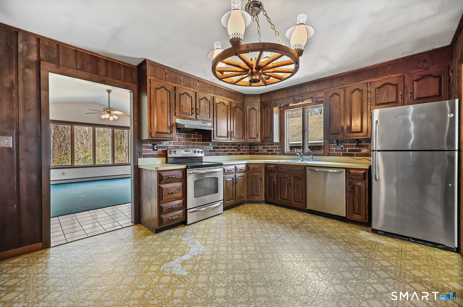 One level living in this ranch style home situated along the banks of the Mill River. Discover the potential to create your living space while enjoying all that Fairfield, CT has to offer, including beautiful beaches, vibrant downtown dining and shopping, parks, and convenient commuter access. A welcoming front porch provides an inviting entry and a pleasant place to relax outdoors. Inside, hardwood floors extend through the living room and all three bedrooms. The living room features a fireplace with a wood stove insert, while the spacious family room is filled with natural light and showcases a high ceiling, creating an open, airy setting for everyday living or entertaining. The main level offers three bedrooms and two full bathrooms for easy single-level living. A large unfinished basement with laundry provides ample storage and future potential. Additional highlights include an oversized detached two-car garage with abundant storage, natural gas heating, a newer HTP boiler, 200-amp electrical service, and a standby generator. Situated in the North Stratfield section of Fairfield, steps to Dover Park and Playground and close to Lake Mohegan, Sacred Heart University and schools, an easy commute on the Merritt Parkway and minutes to all that Fairfield has to offer; shopping, dining, theater and beautiful Long Island Sound Beaches. Sale AS-IS and subject to probate.