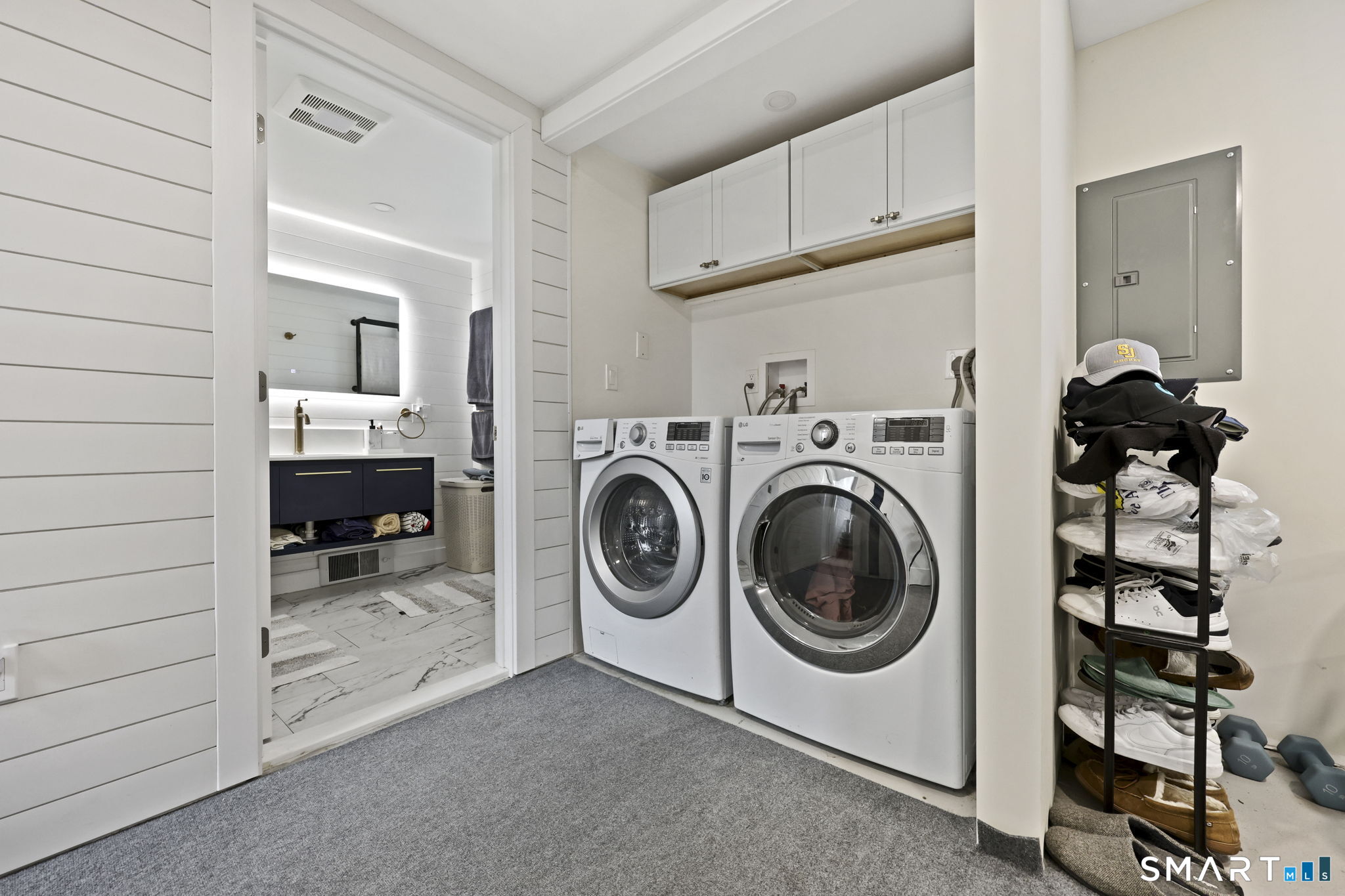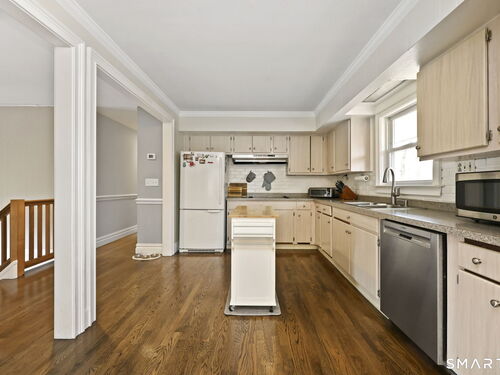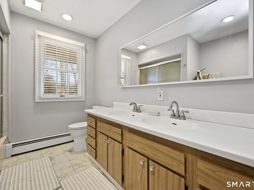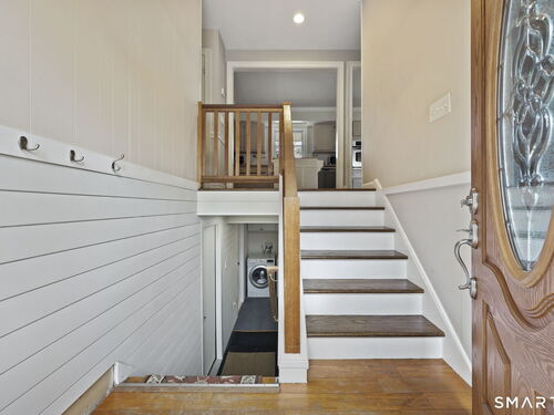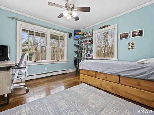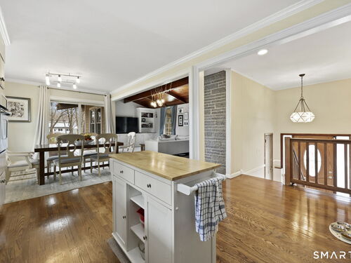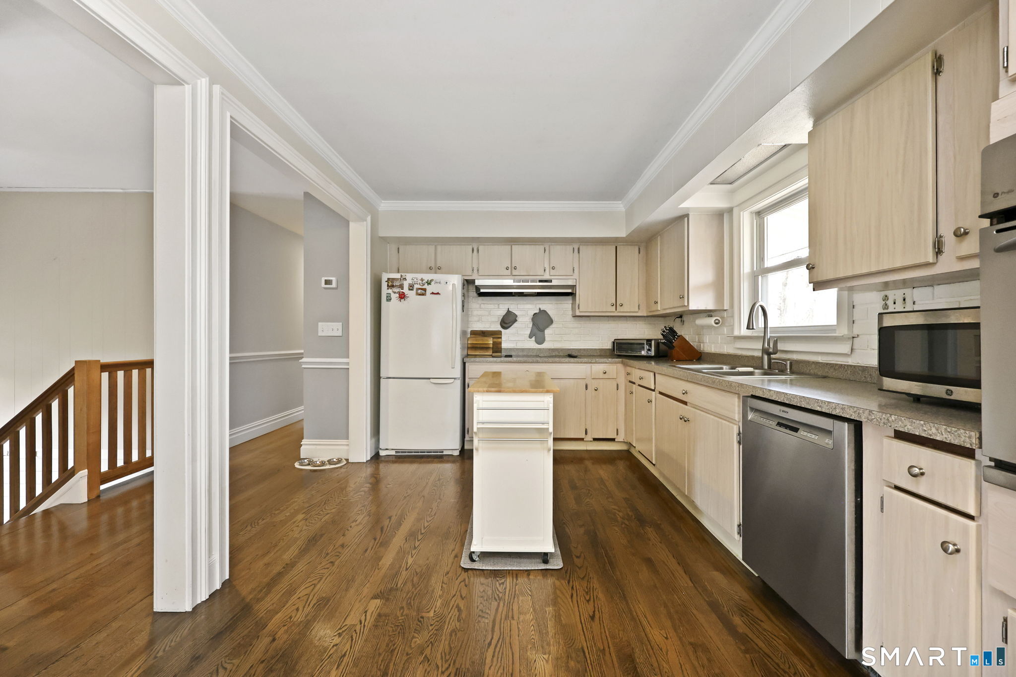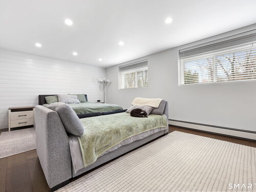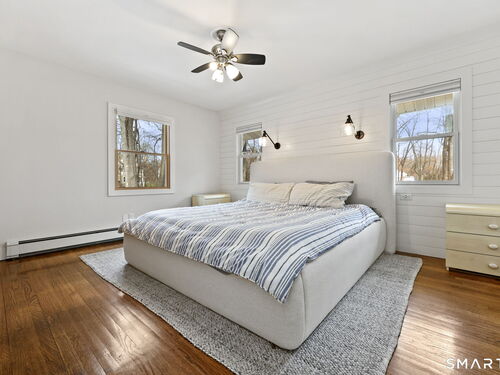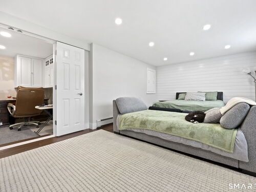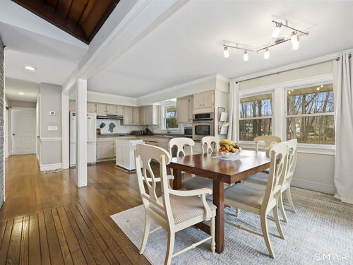 Tucked away on a private, oversized lot (2.8 acres) in the highly sought-after Nichols neighborhood, this hidden gem offers over 2000 square feet of bright and inviting living space. Set back from the street and surrounded by mature trees, the home provides a peaceful, "in-the-woods" feel while still being conveniently located near schools, shopping, parks, library and all major routes. Inside, you'll find a sun-filled, open layout featuring a vaulted wood ceiling living room with custom built-ins and a stunning stone fireplace-perfect for cozy gatherings. The spacious eat-in kitchen offers plenty of room for everyday living and entertaining, while three generously sized bedrooms and an oversized full bath provide comfort and flexibility. The lower level expands your living options with a large family room and second fireplace, easily convertible into a fourth bedroom, guest space, or ideal in-law suite. The beautifully updated full Bath adds a touch of luxury with a tiled walk in shower, Shipplap walls and radiant heated floors. Additional highlights include a new furnace (2024), hardwood floors throughout an oversized garage, and a large yard overlooking a serene brook with an in-ground pool (being sold as-is), offering great potential for outdoor enjoyment. A rare opportunity to make this home your own private retreat in a prime location!