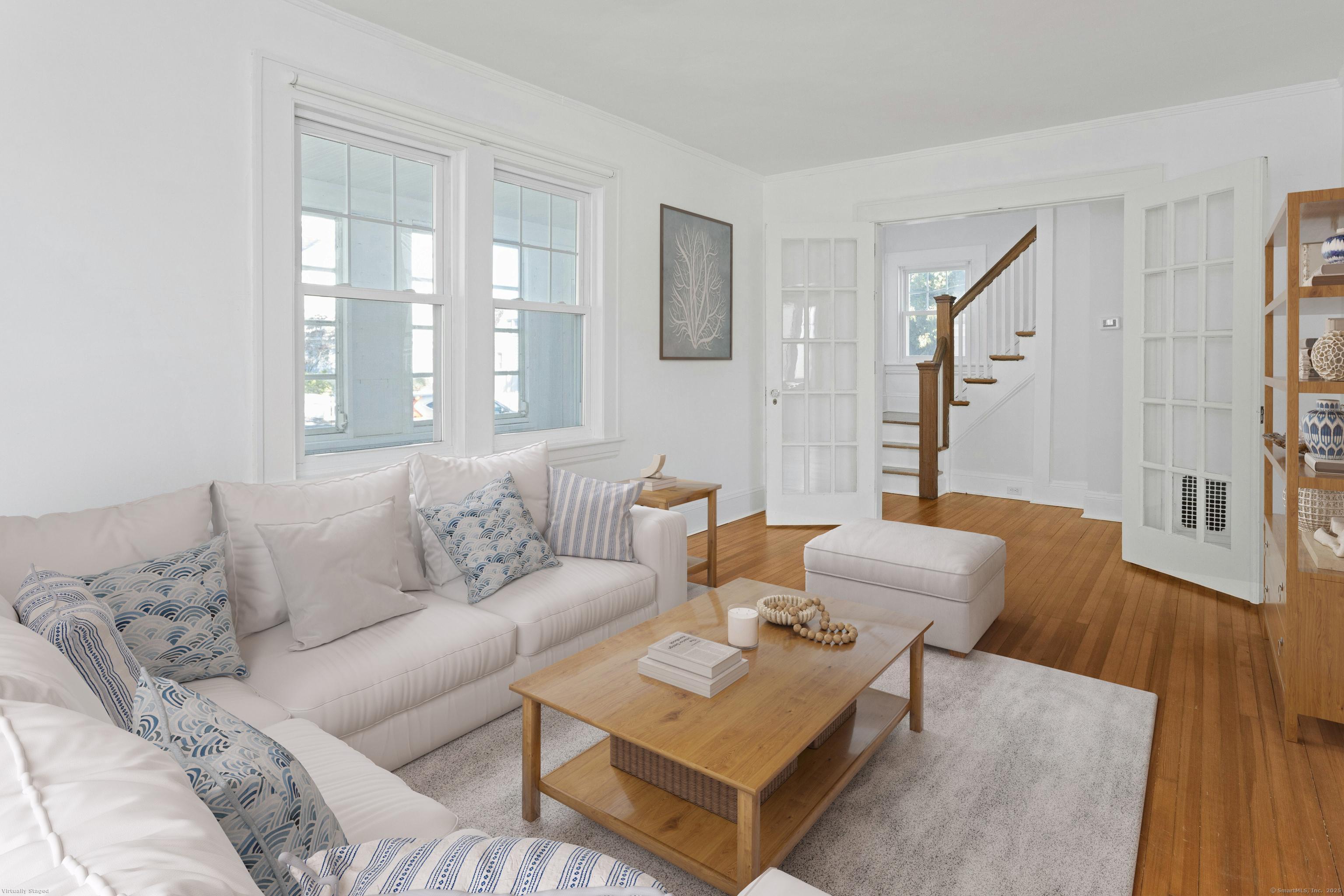 On the banks of Ash Creek with a truly breathtaking vista, it's easy to see why there have been only two owners of this charming house since its 1928 construction! Beneath the gabled roof, a delightful front porch with jalousie windows beckons entry into the inviting foyer. Well scaled main level rooms include Living Room with French doors, Dining Room with views of the water, and Eat In Kitchen, all with higher than average ceiling height and filled with bright natural light. Full bathroom w/shower and rear seasonal sun porch opening to the backyard completes the main level. Three Bedrooms, all with walk in closets (the Primary bedroom has two walk in closets) and a hall bathroom with tub and marble tiled floor complete the upstairs. The attic w/hatch entry is partially floored, the full basement w/laundry offers plenty of extra space, and the detached two car garage is oversized offering even more storage. This home has been consistently well cared for, including newer roof and mechanicals. Sunrises, tides ebbing & flowing, egrets and osprey in their natural habitat, unobstructed views where sky and land meets water- this natural setting is pure serenity. Stroll to nearby Ash Creek Park, Jennings Beach and Marina while also enjoying easy proximity to the numerous amenities and conveniences of Fairfield's vibrant town center: restaurants, shopping, library, theaters & Metronorth train.