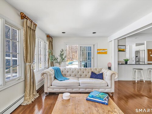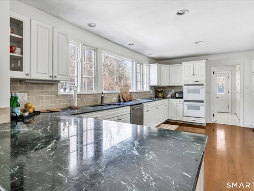 Nestled in the coveted Old Hill section of Westport, this exceptional residence offers a rare blend of space, serenity, & timeless appeal. With over 3,200 square feet, the home unfolds beautifully-beginning with a gracious entry foyer, leading into the living room with hardwood floors and anchored by a classic fireplace. The large eat-in kitchen offers double ovens, an abundance of cabinets and marble countertops and opens to both the formal dining room and a more casual dining space with adjoining great room, all unified by gleaming wood floors and bathed in abundant natural light. Designed for both everyday ease and effortless entertaining, the main level also features a thoughtfully appointed mudroom with laundry, located just off the kitchen, offering generous storage for everyone's belongings. Every detail supports comfort and functionality without sacrificing style. Upstairs, four spacious bedrooms provide peaceful retreats. The primary suite is a true sanctuary, complete with a full bath, ample closet space, and a sun-filled porch that easily doubles as a home office, studio, or quiet escape. The finished lower level adds even more flexibility, featuring an office/guest room and a full bath-ideal for today's versatile living needs. Outdoors, the property truly shines. The fabulous backyard is a private oasis, highlighted by a gunite pool with spa and surrounded by lush landscaping-perfect for relaxation and summer gatherings.